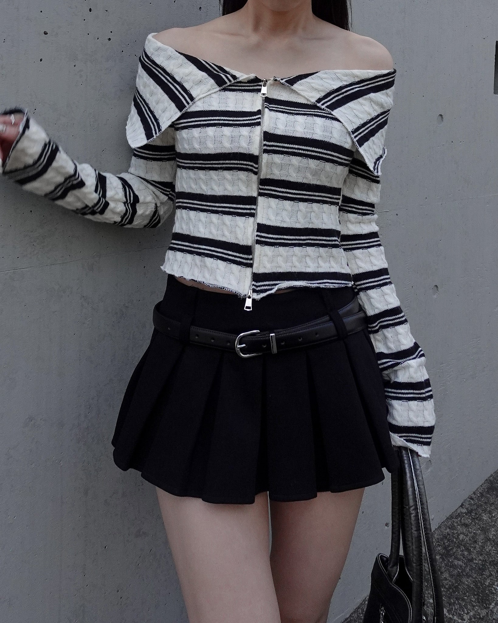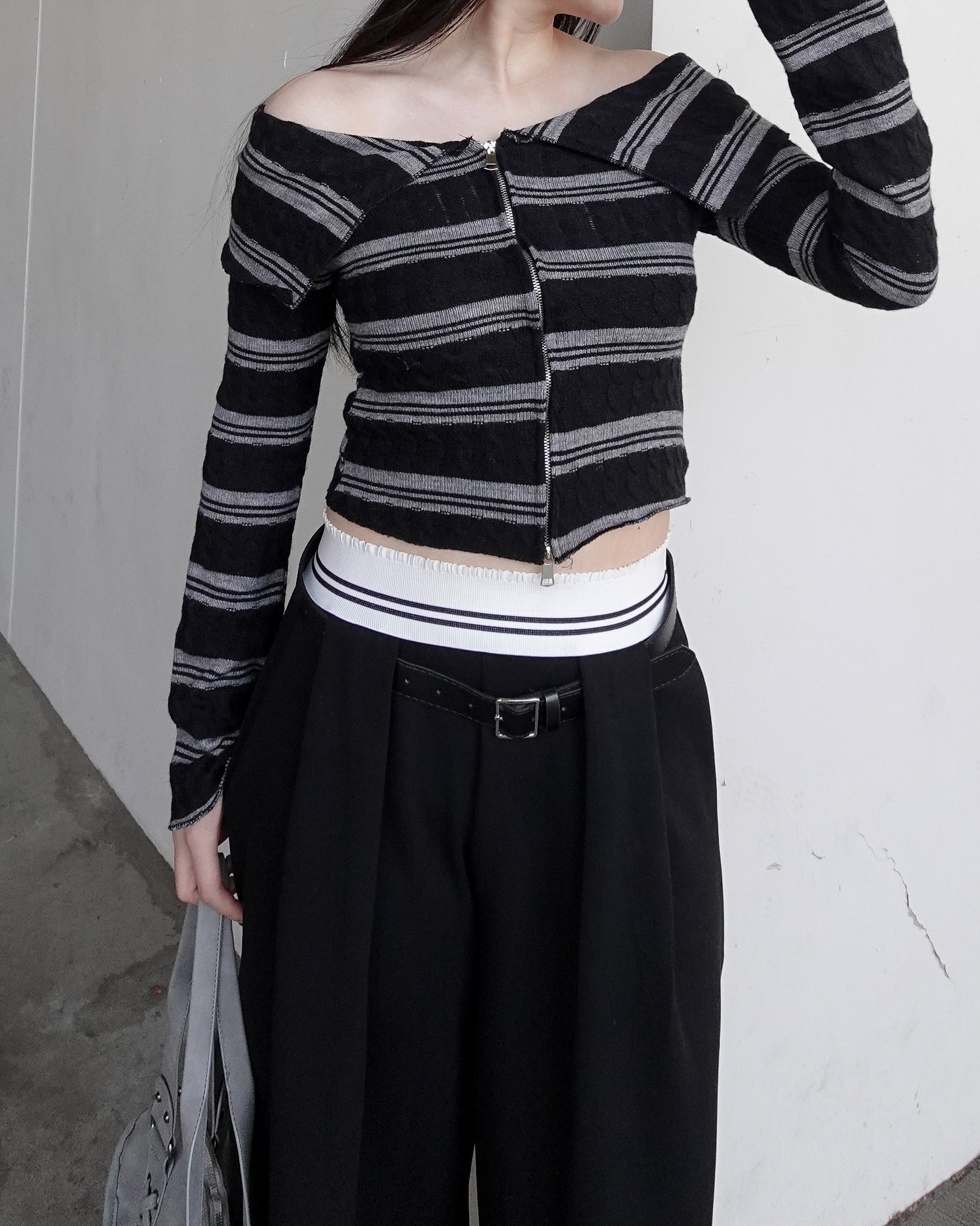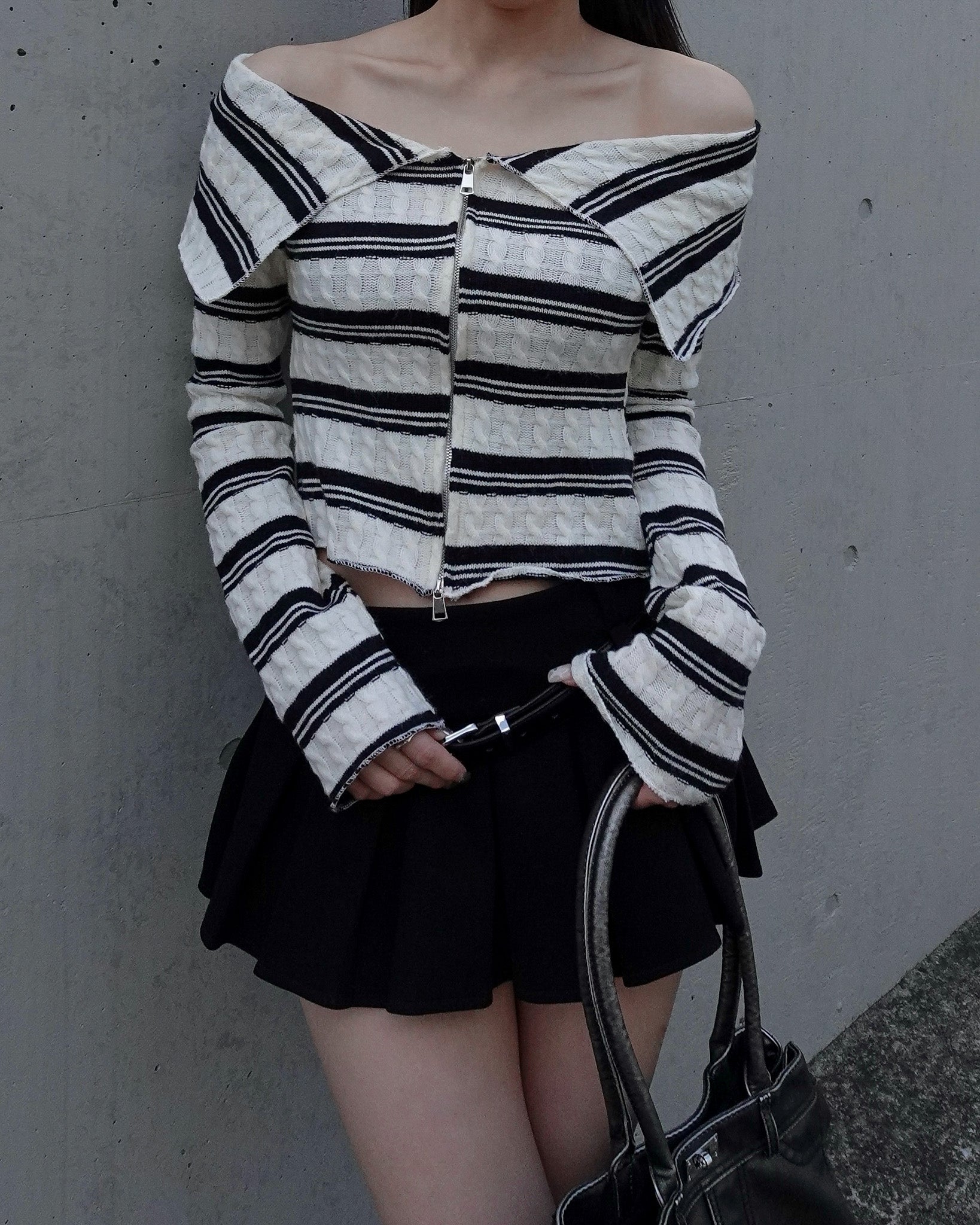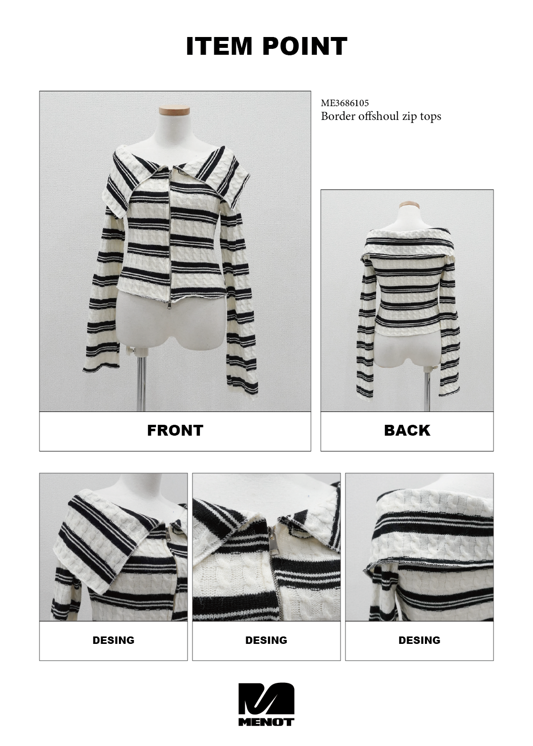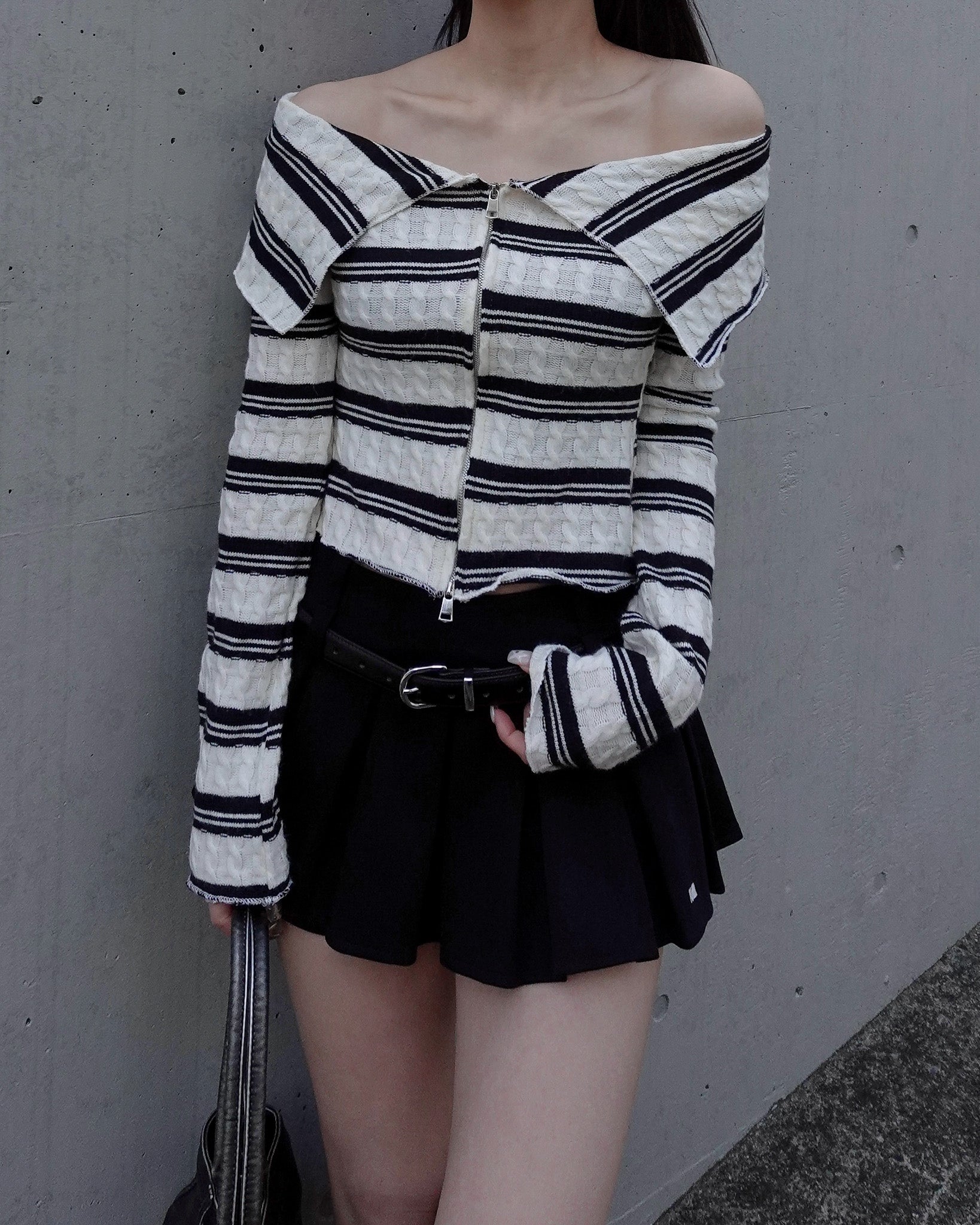 【 Border offshoul zip tops 】