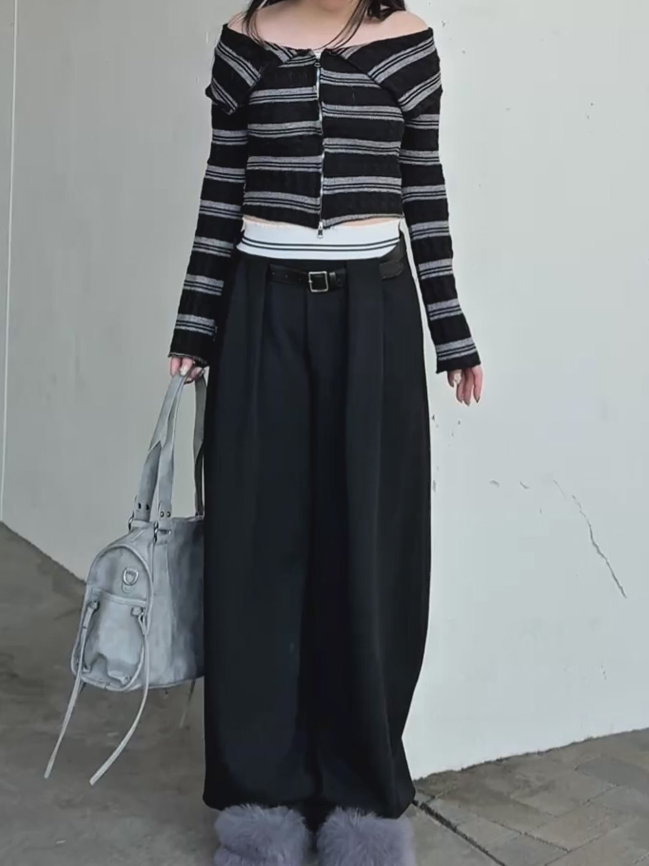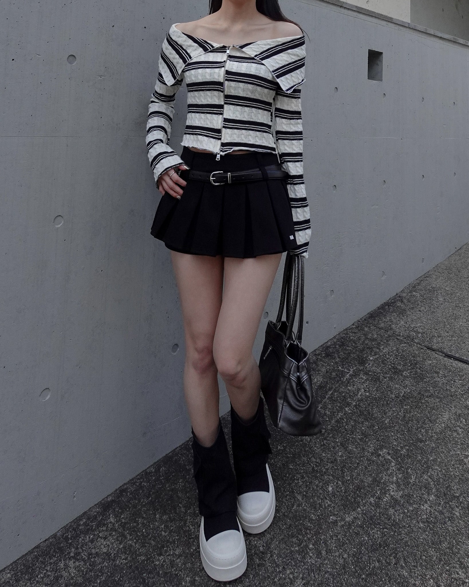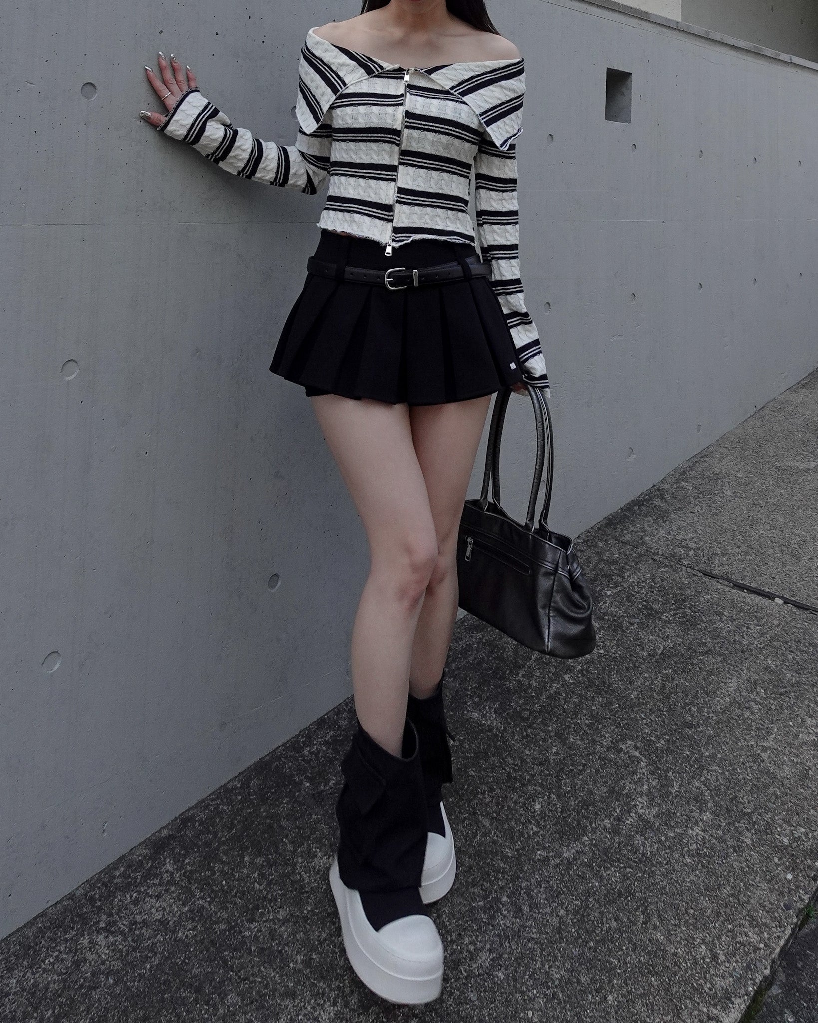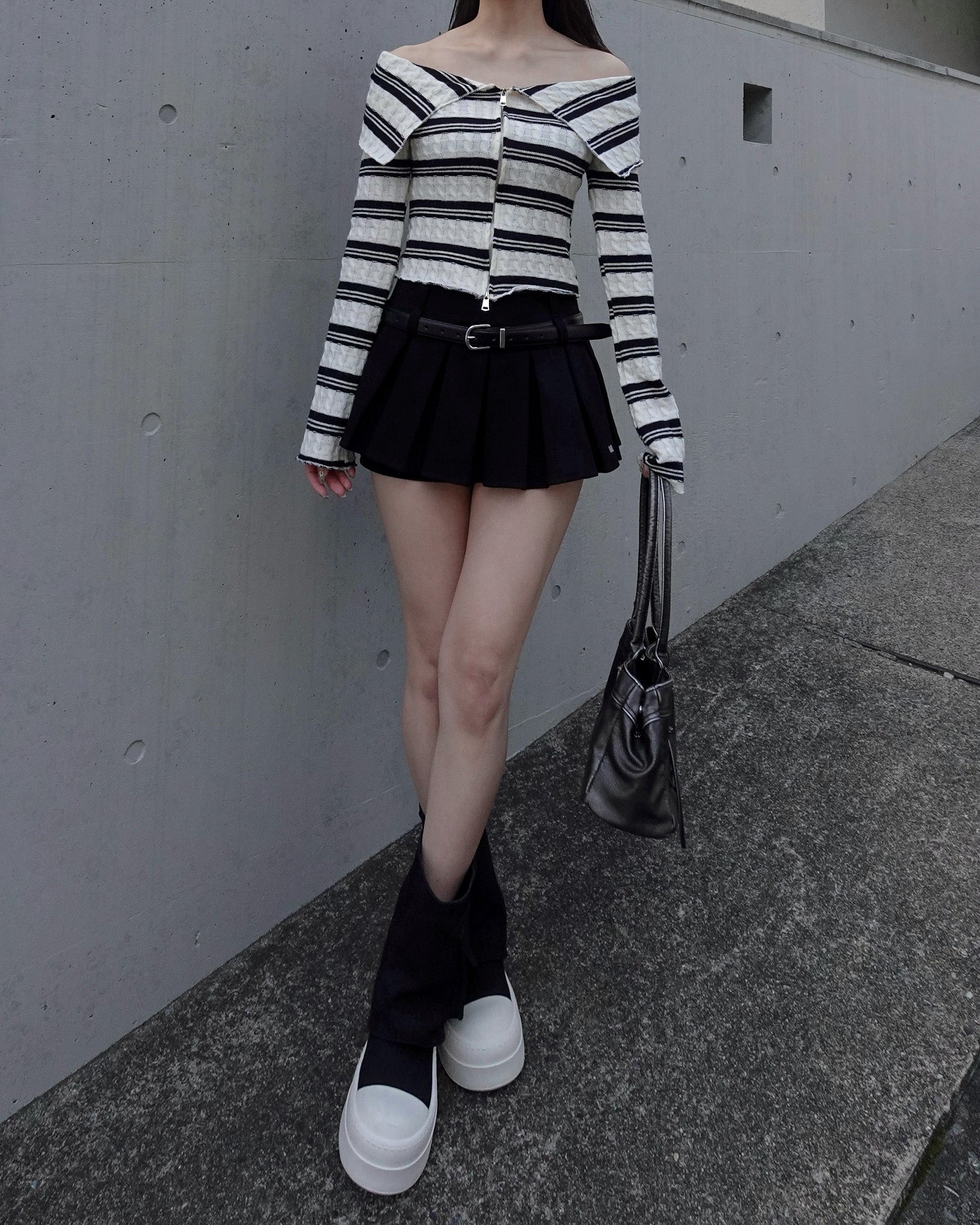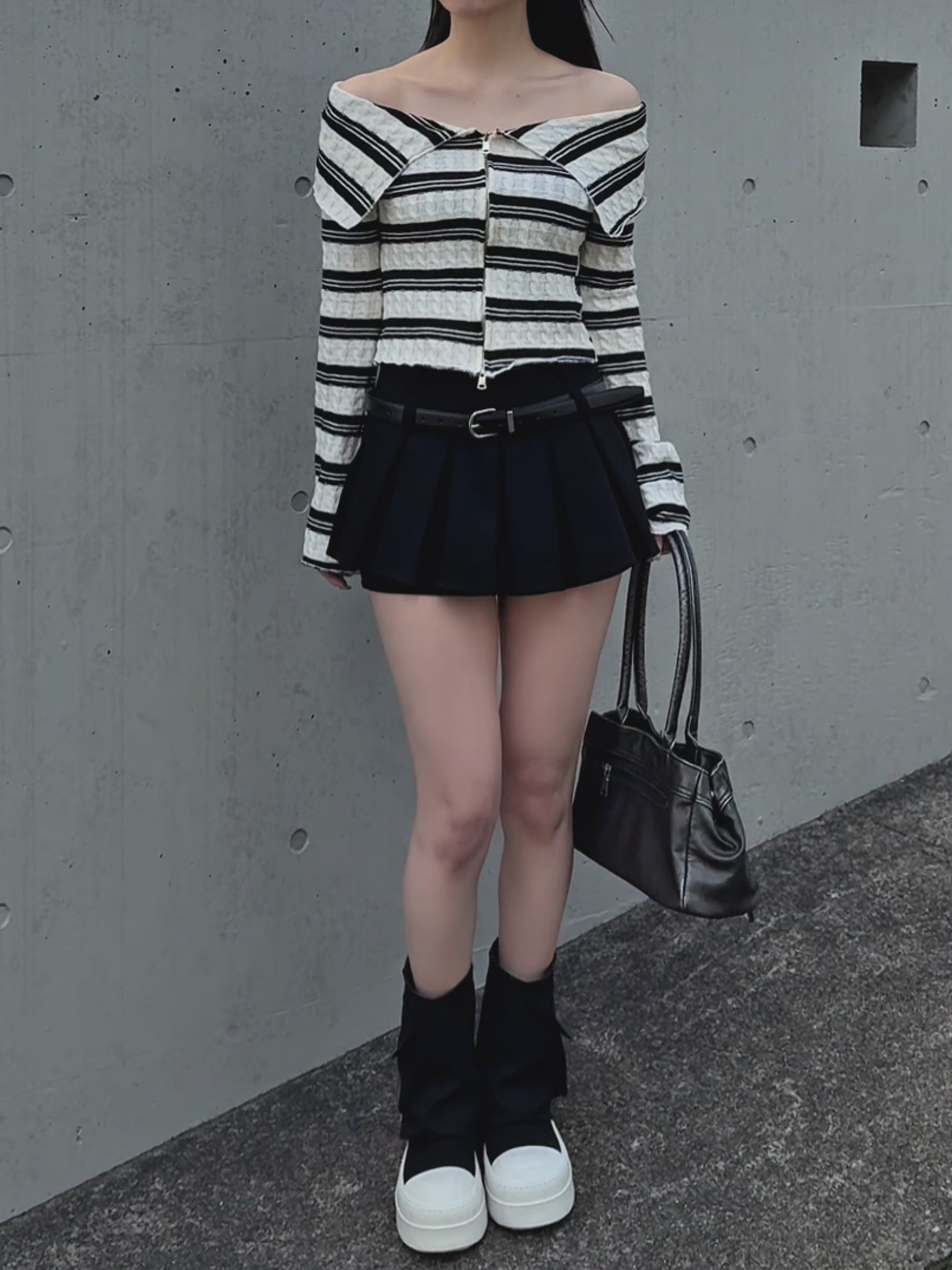 【 Border offshoul zip tops 】