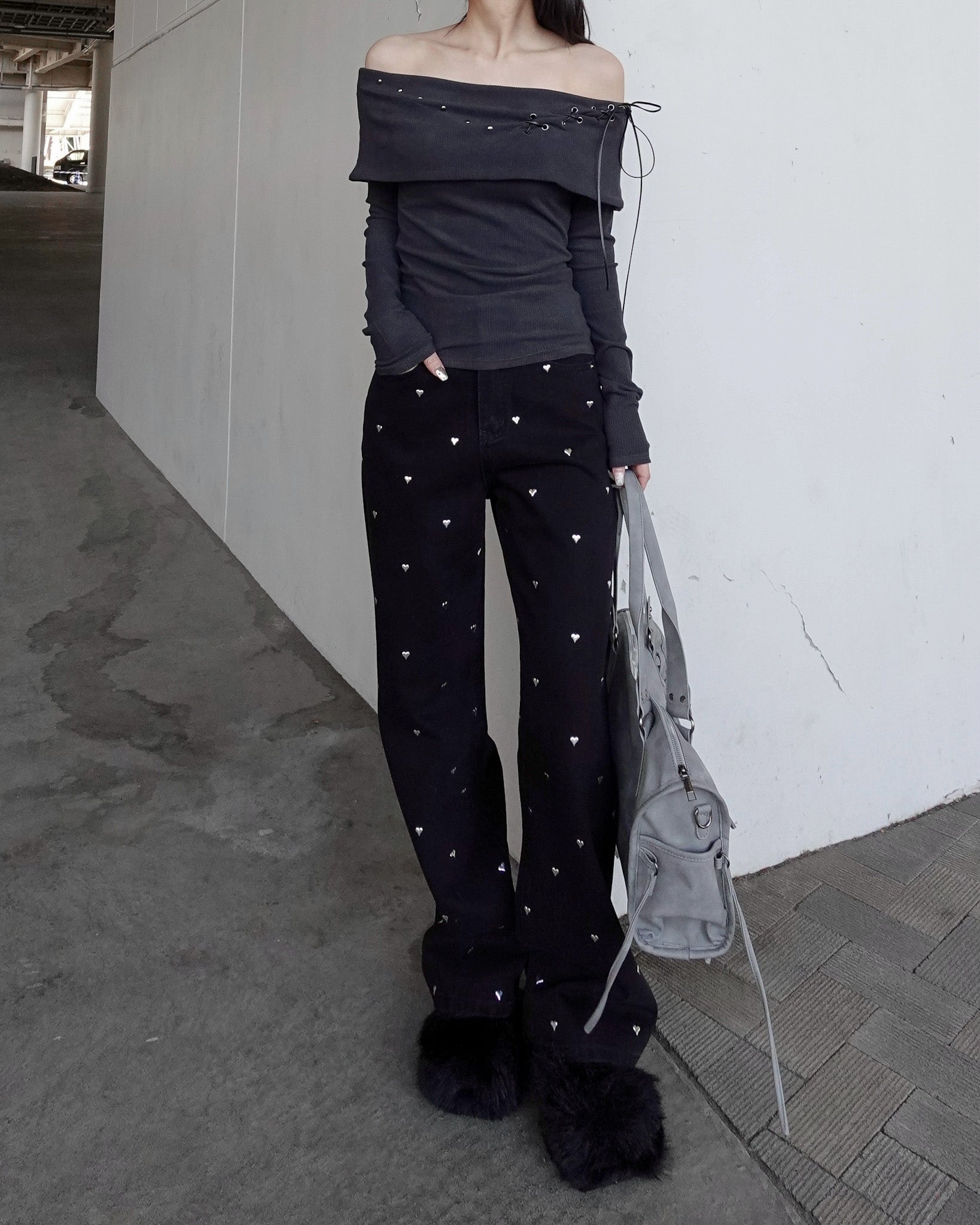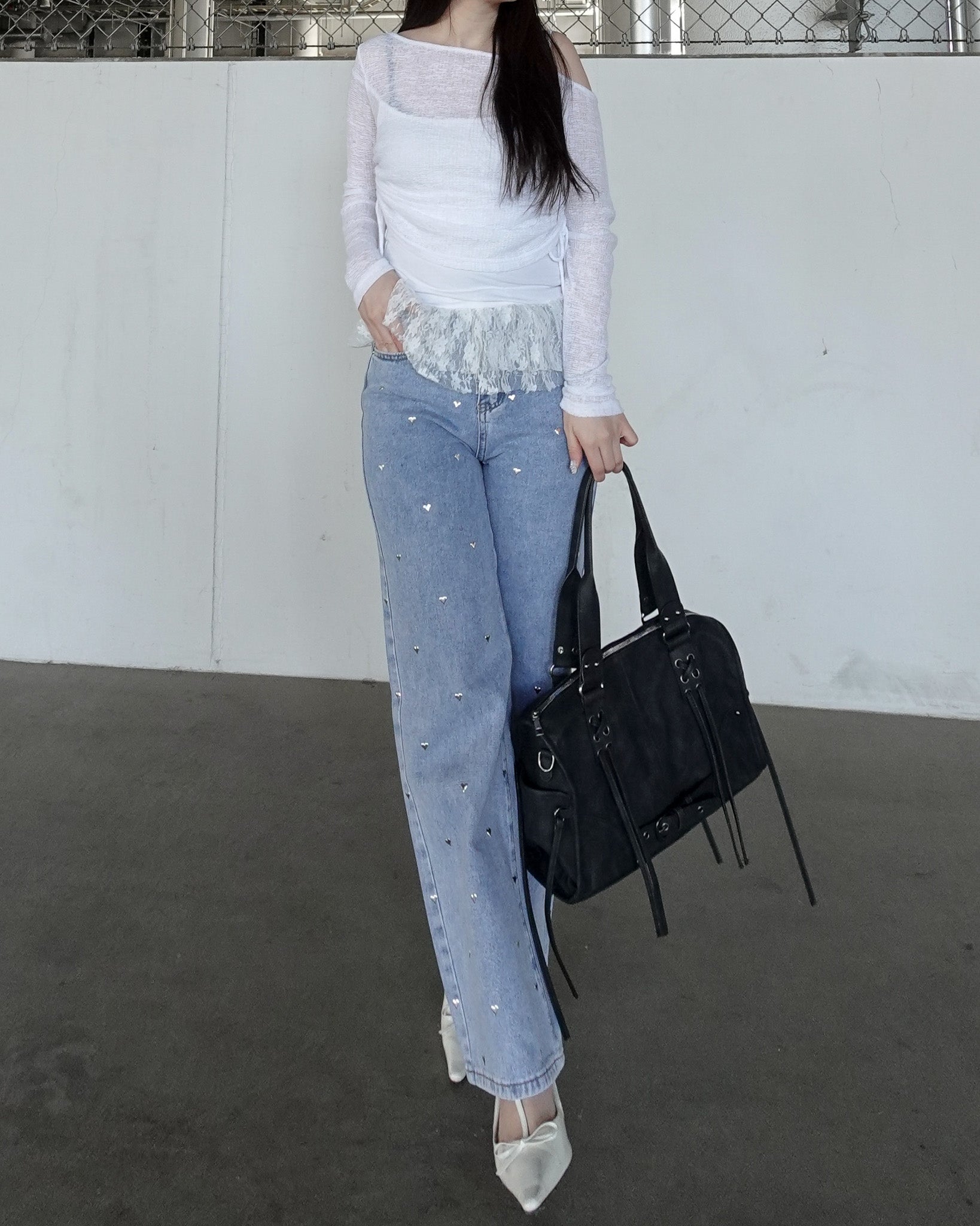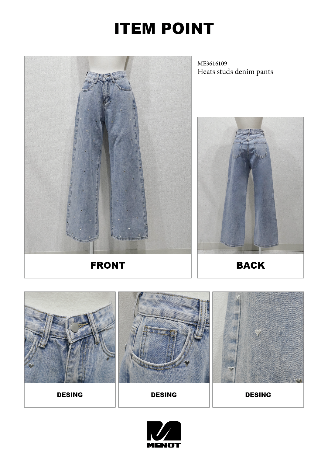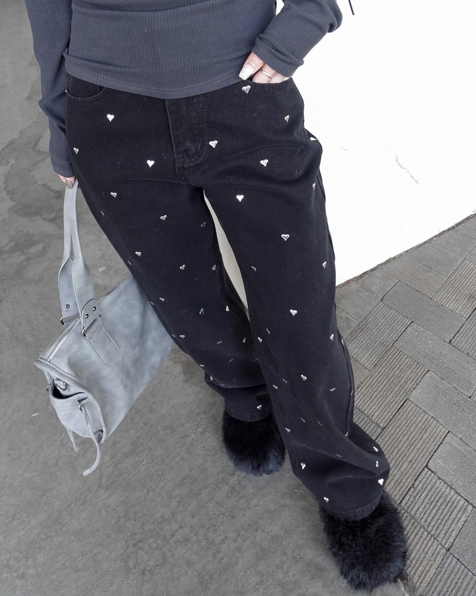 【 Heart studs denim pants 】