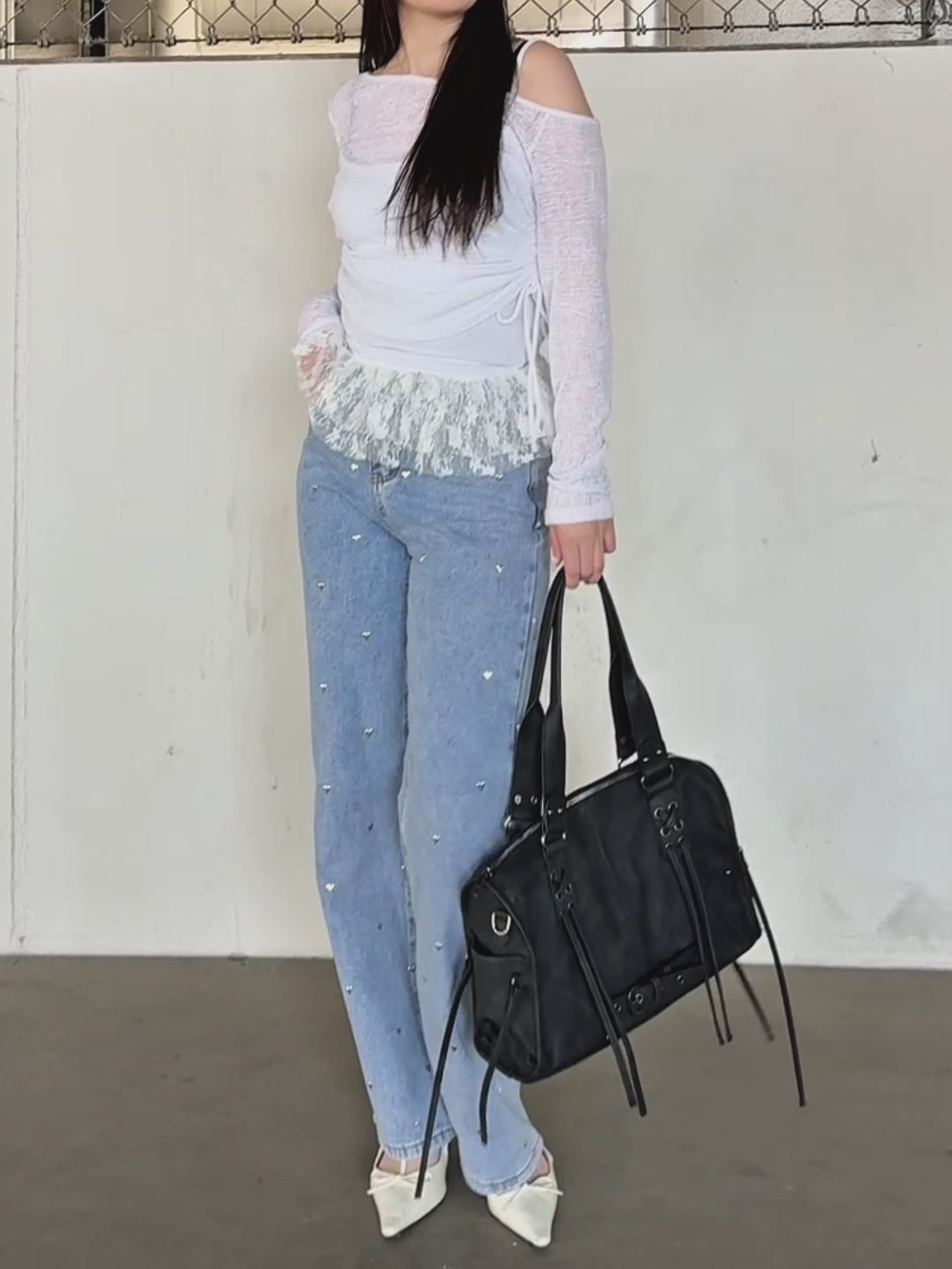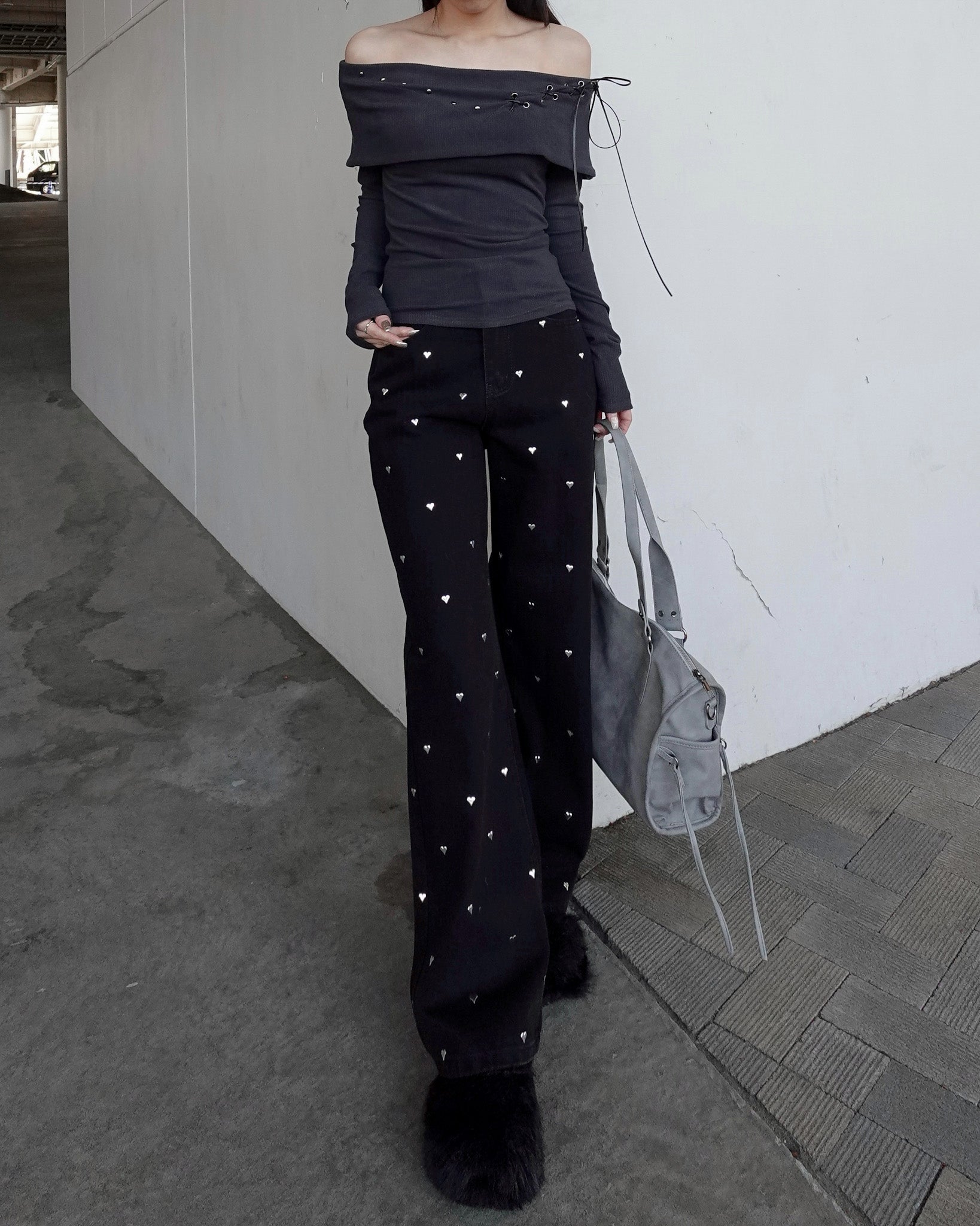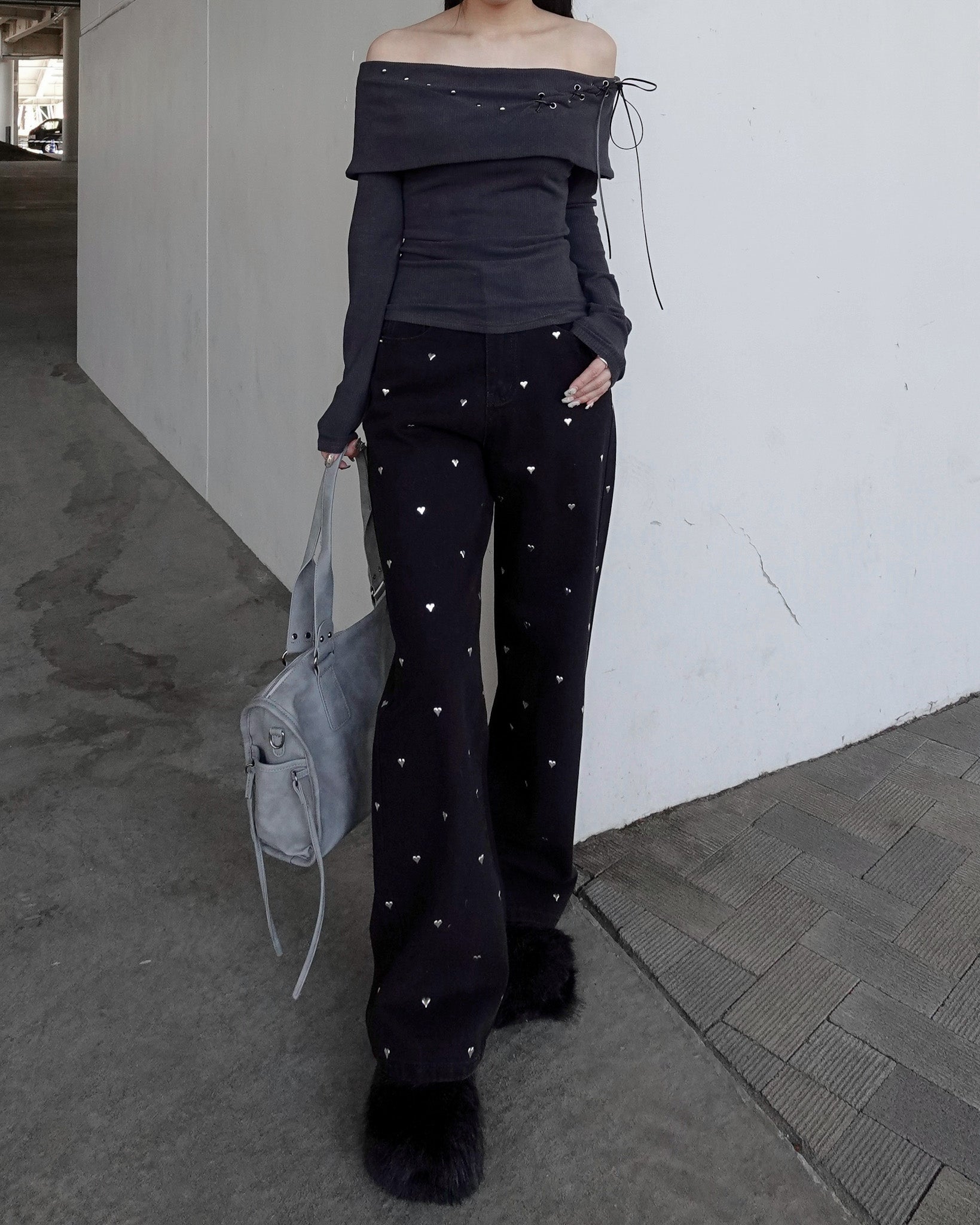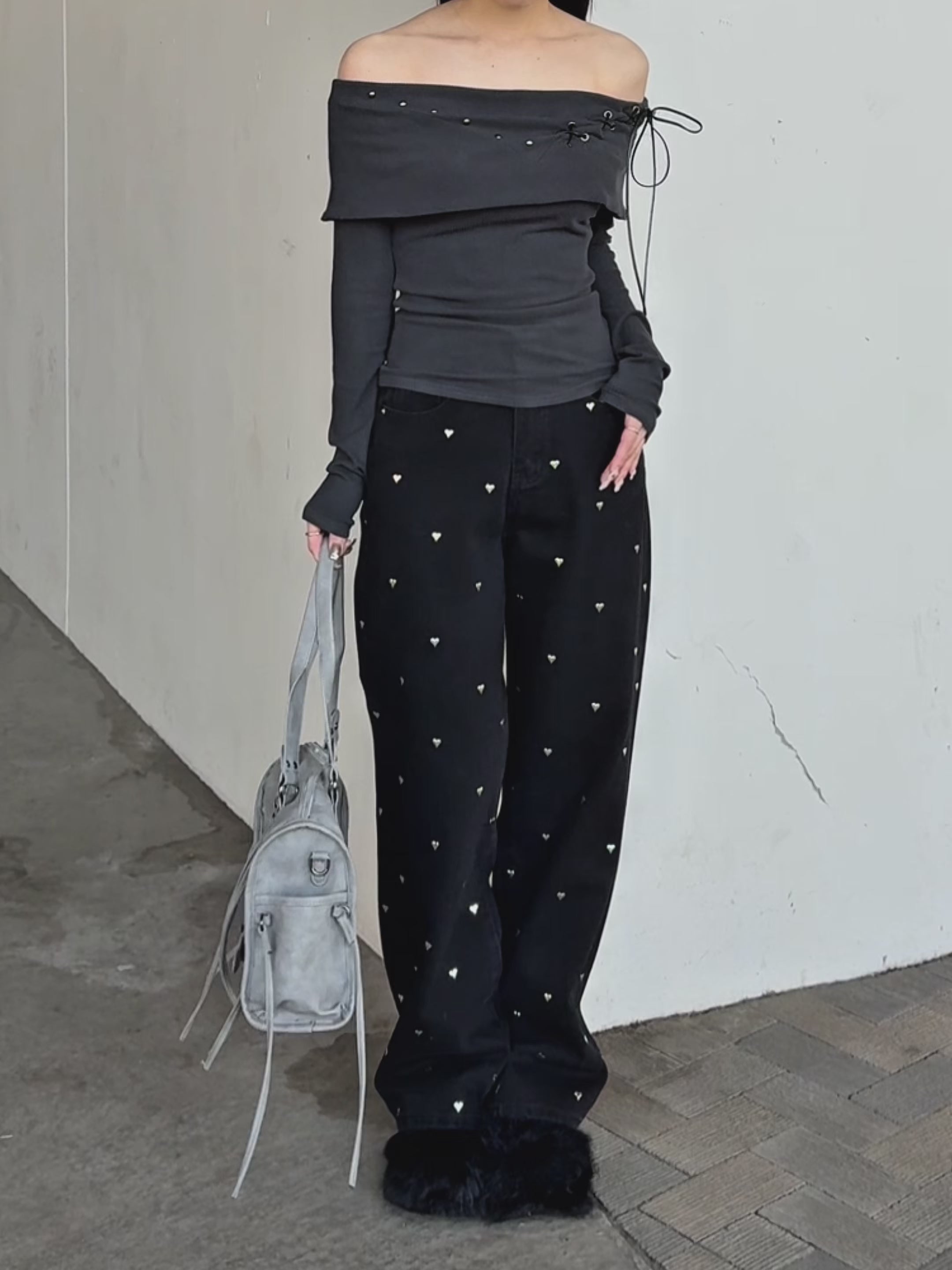 【 Heart studs denim pants 】