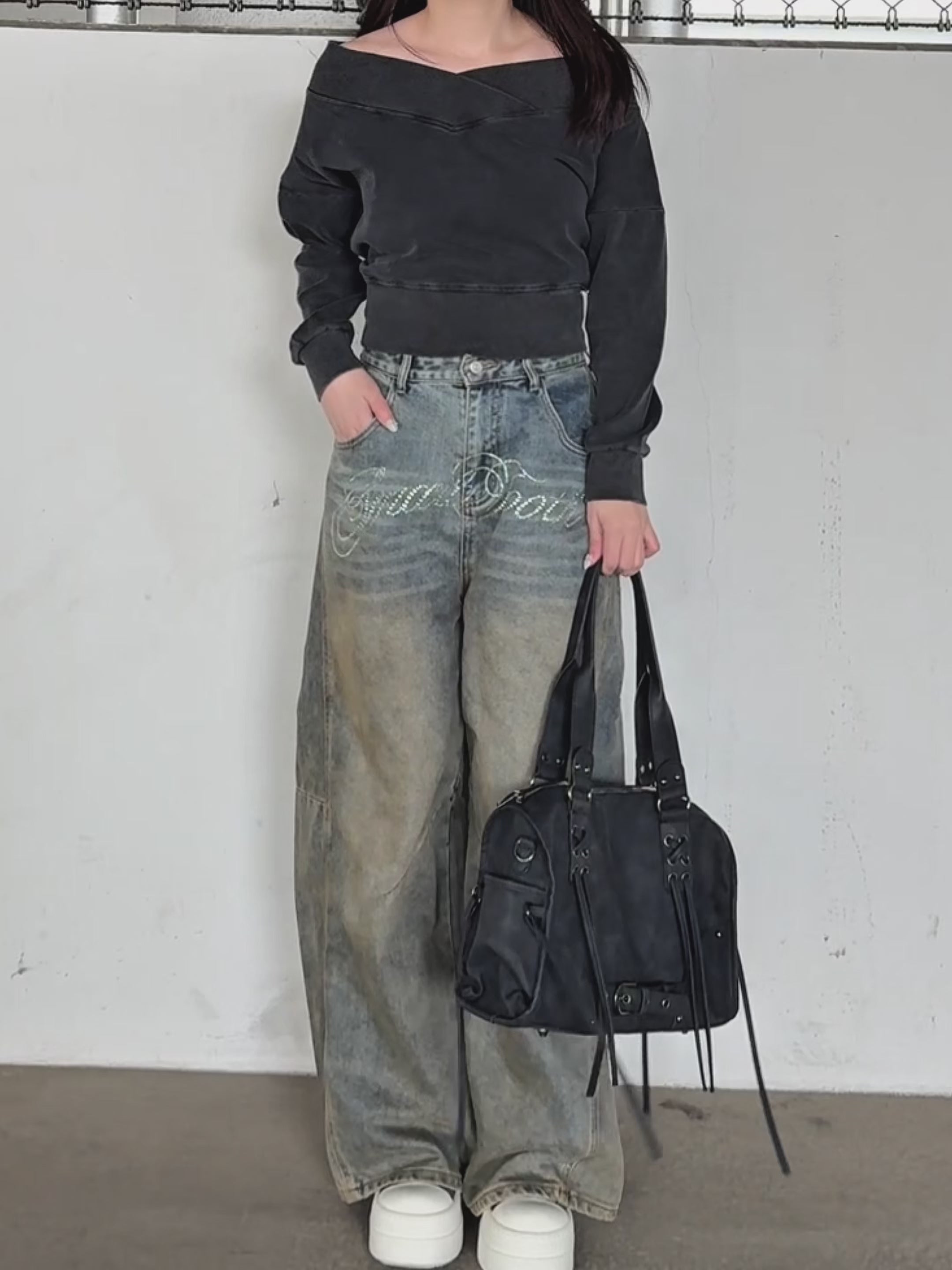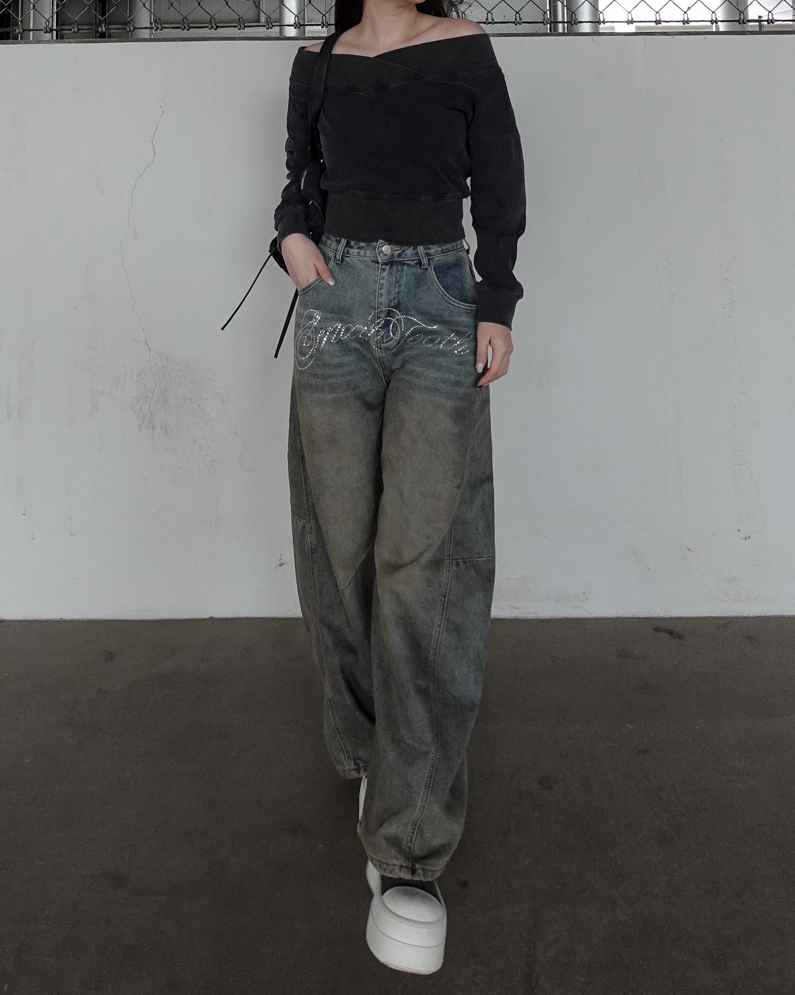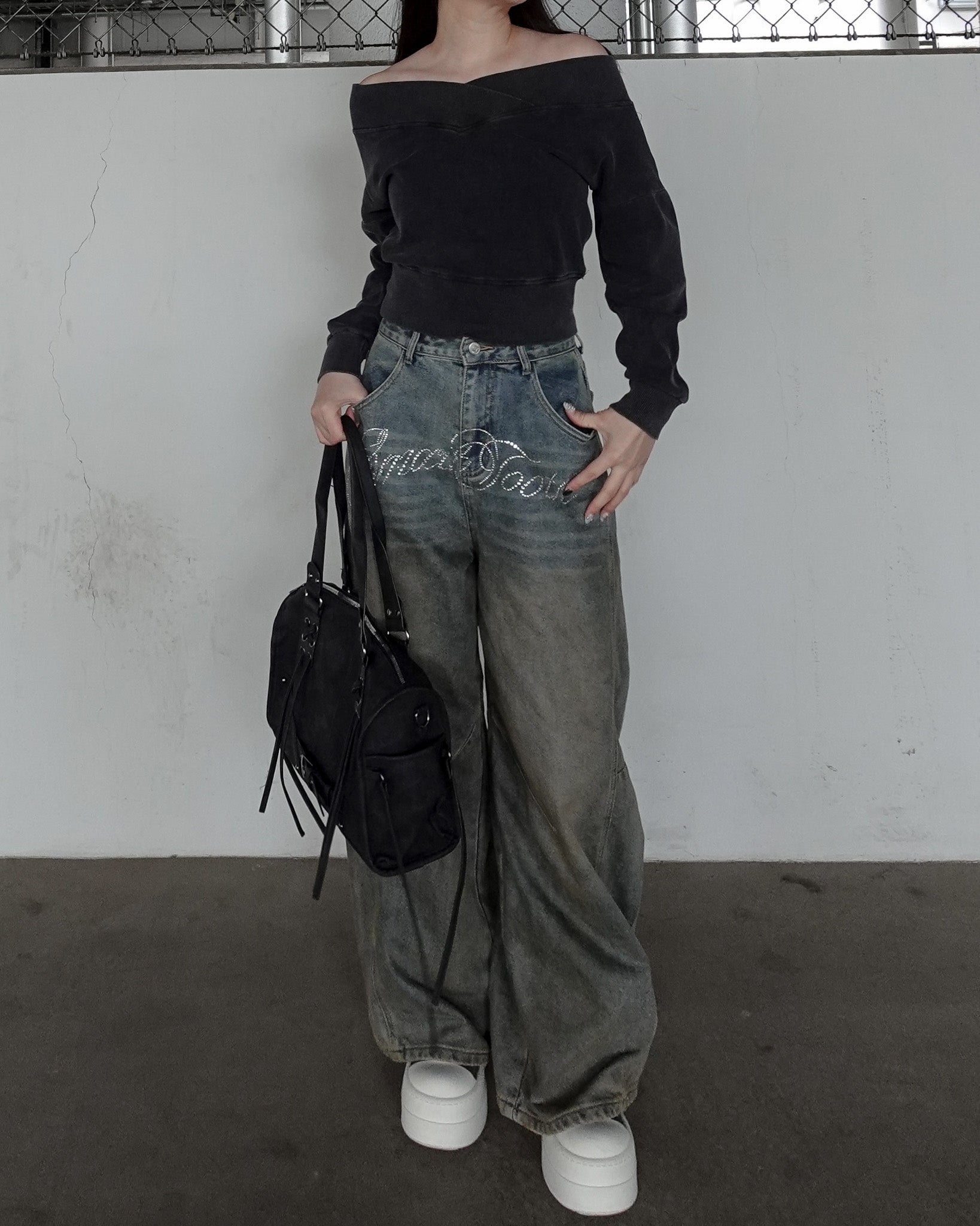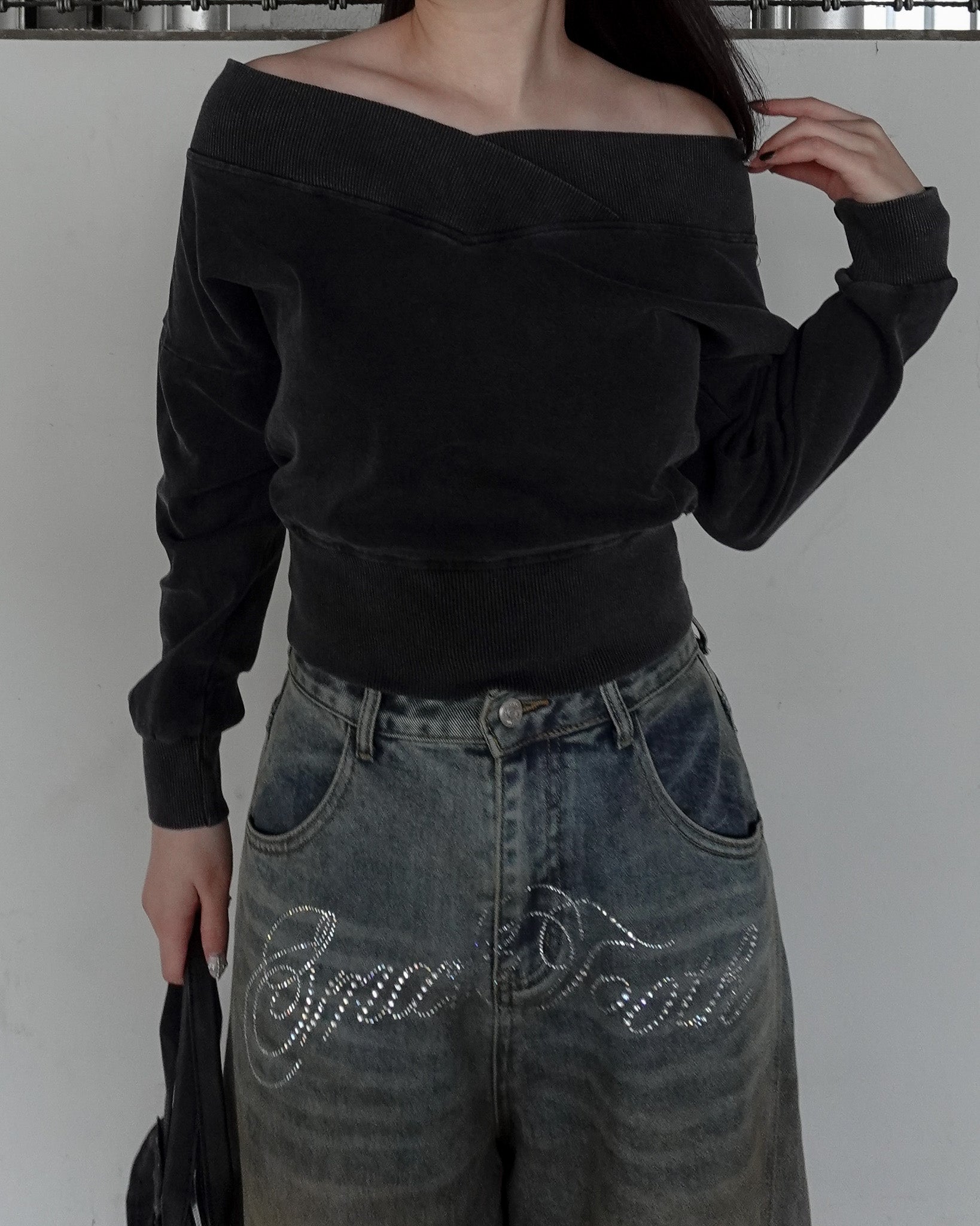【 Wash design offshoul tops 】