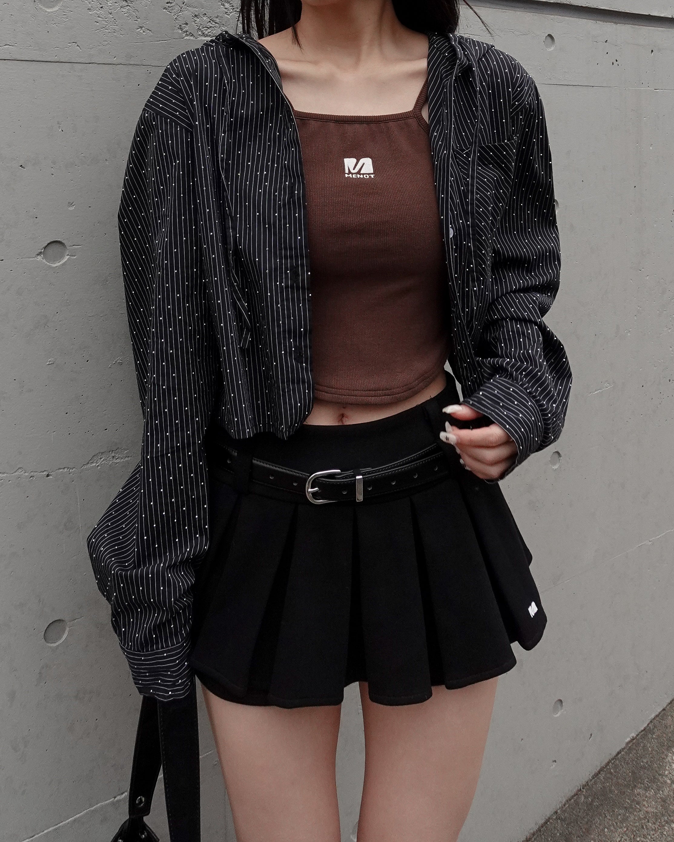 コーディネートの主役になるラインストーンシャツ。