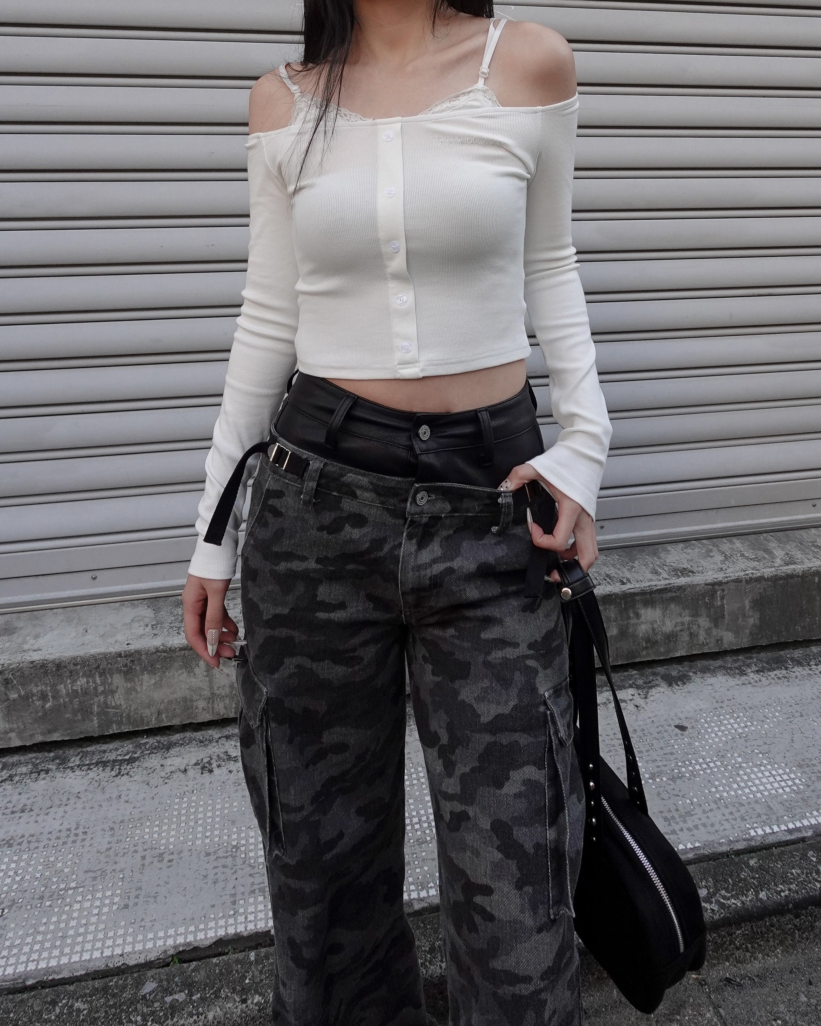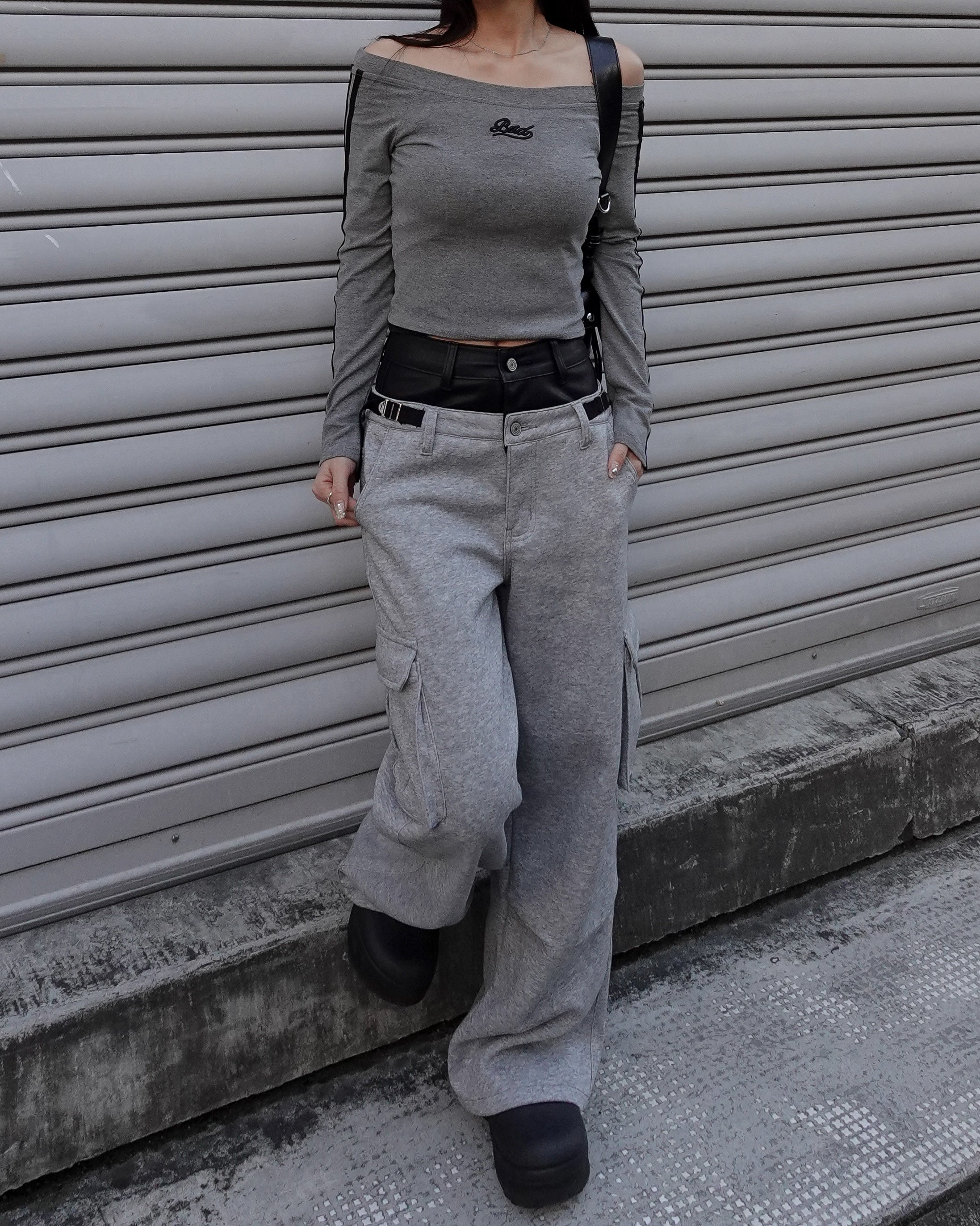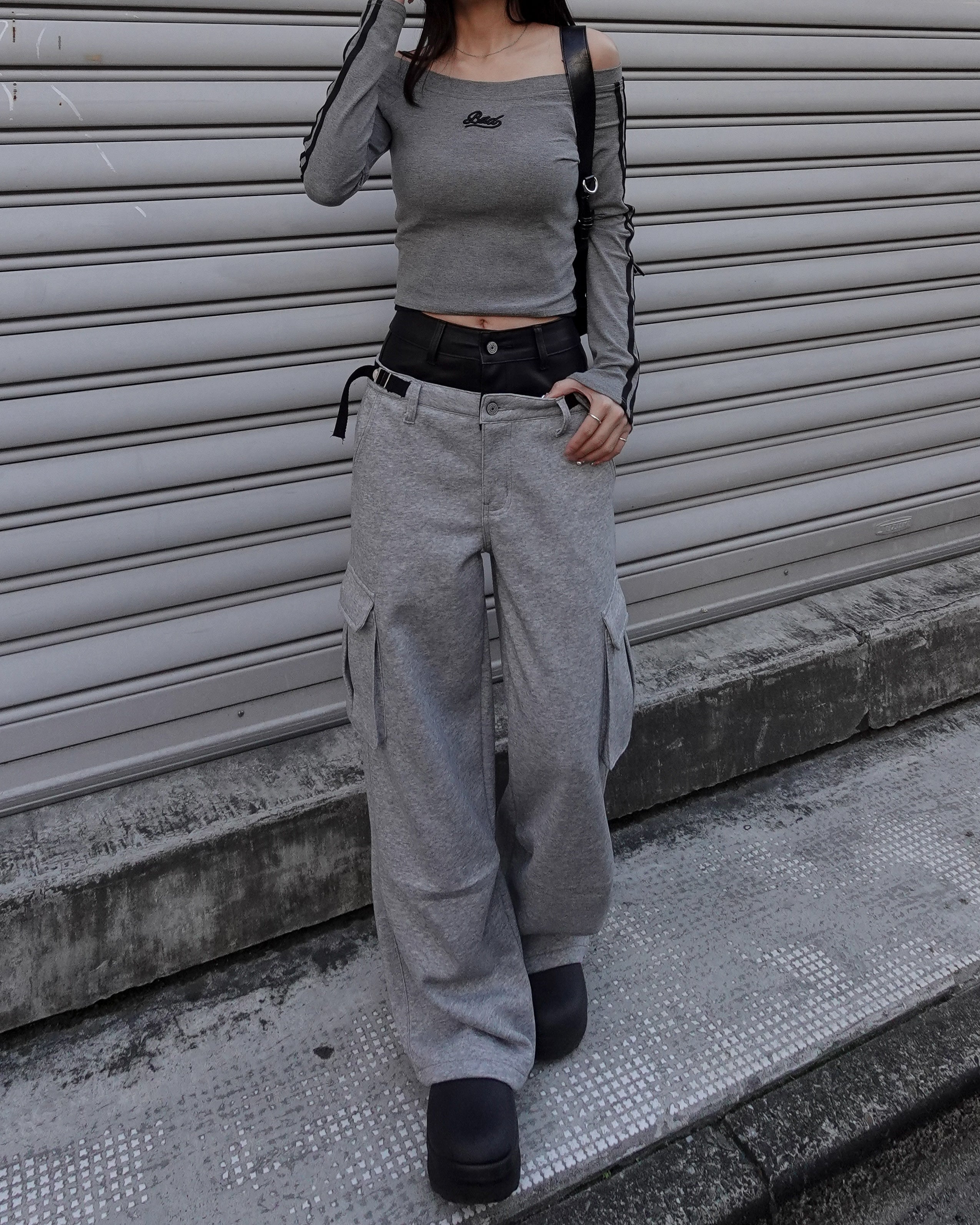 デニムやスウェットパンツに合わせてカジュアルにシャツやジャケットのインナーにしてレイヤードしてトレンド感のある着こなしに。