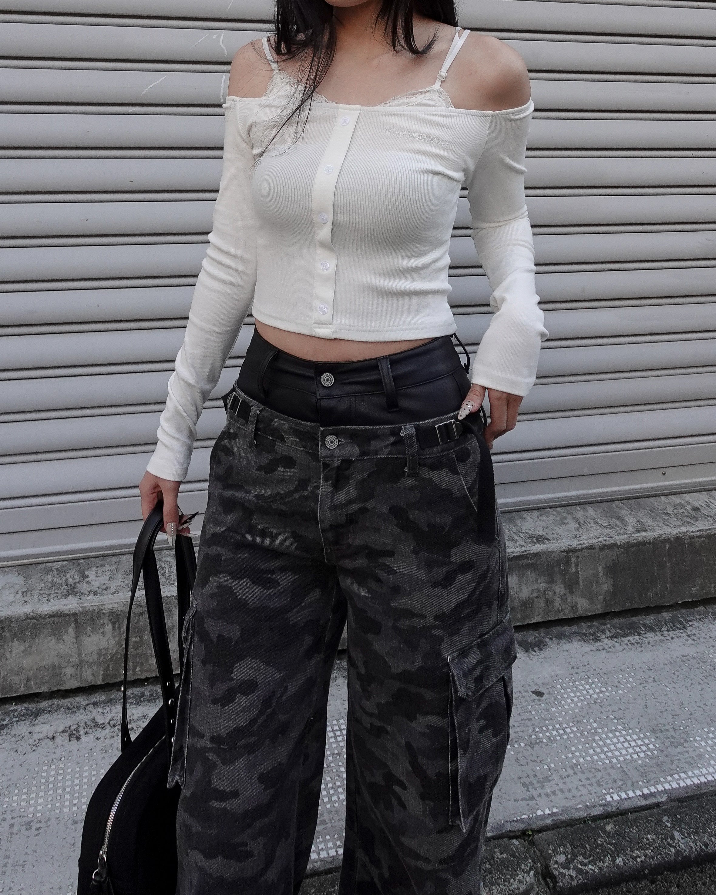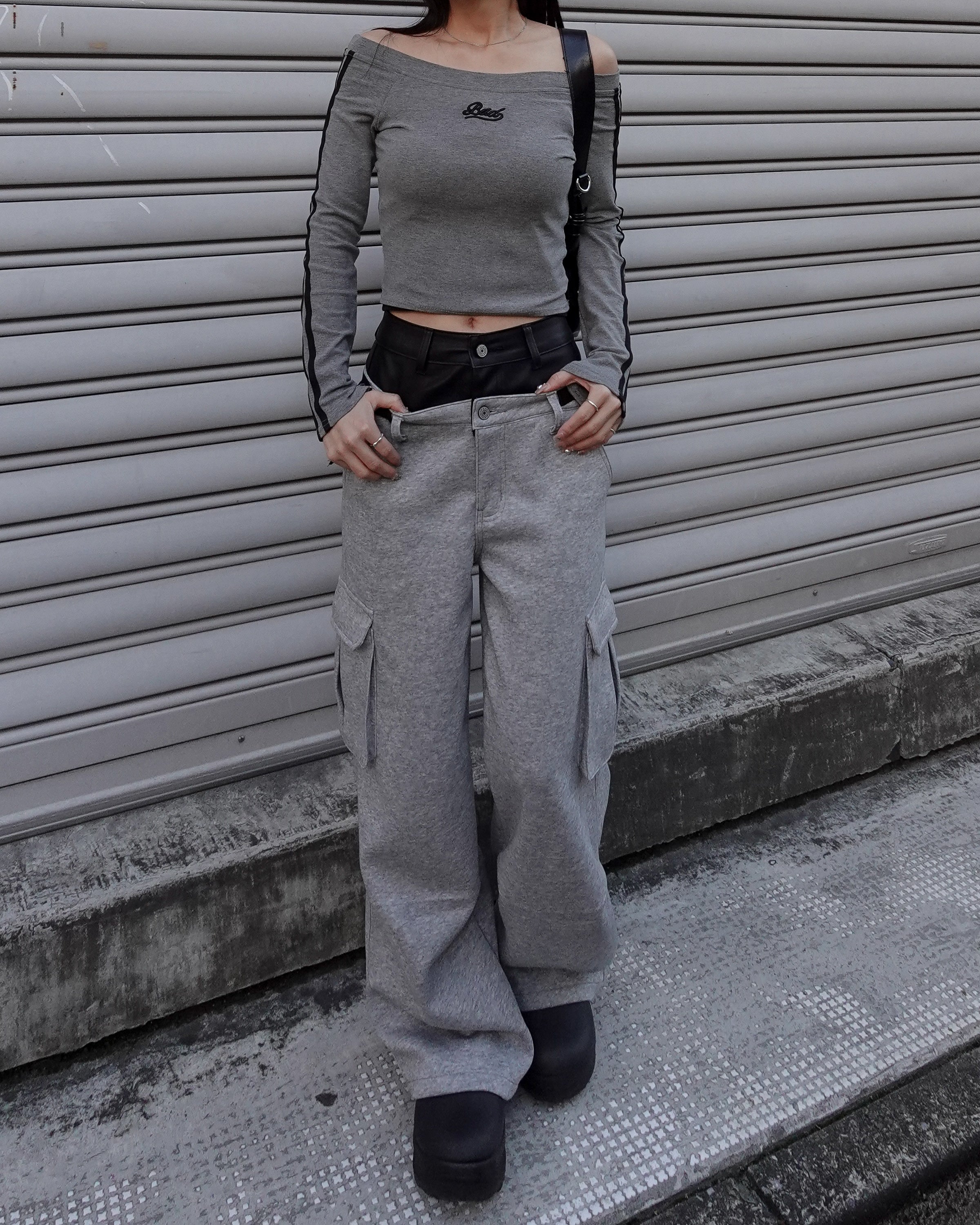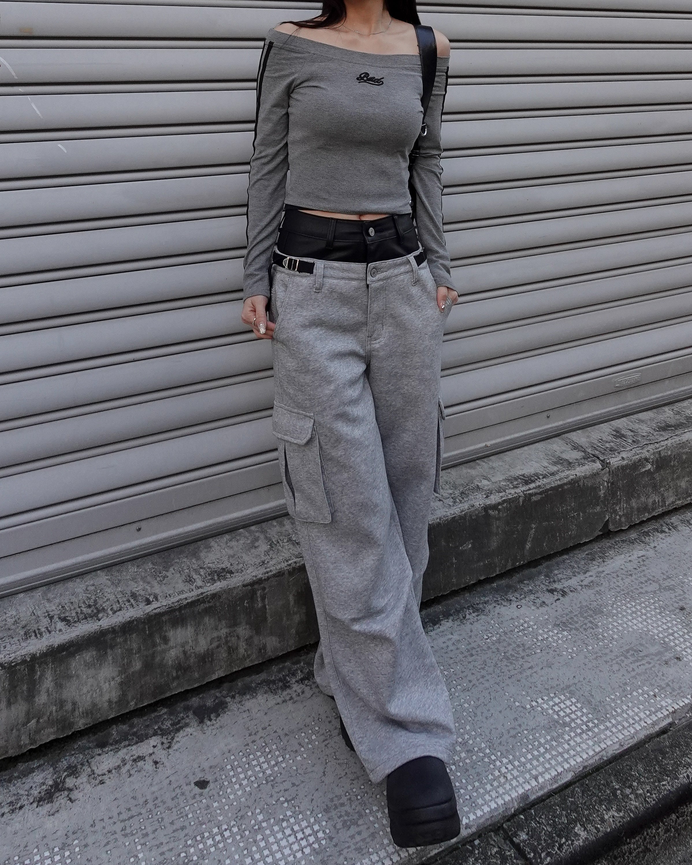 デニムやスウェットパンツに合わせてカジュアルにシャツやジャケットのインナーにしてレイヤードしてトレンド感のある着こなしに。