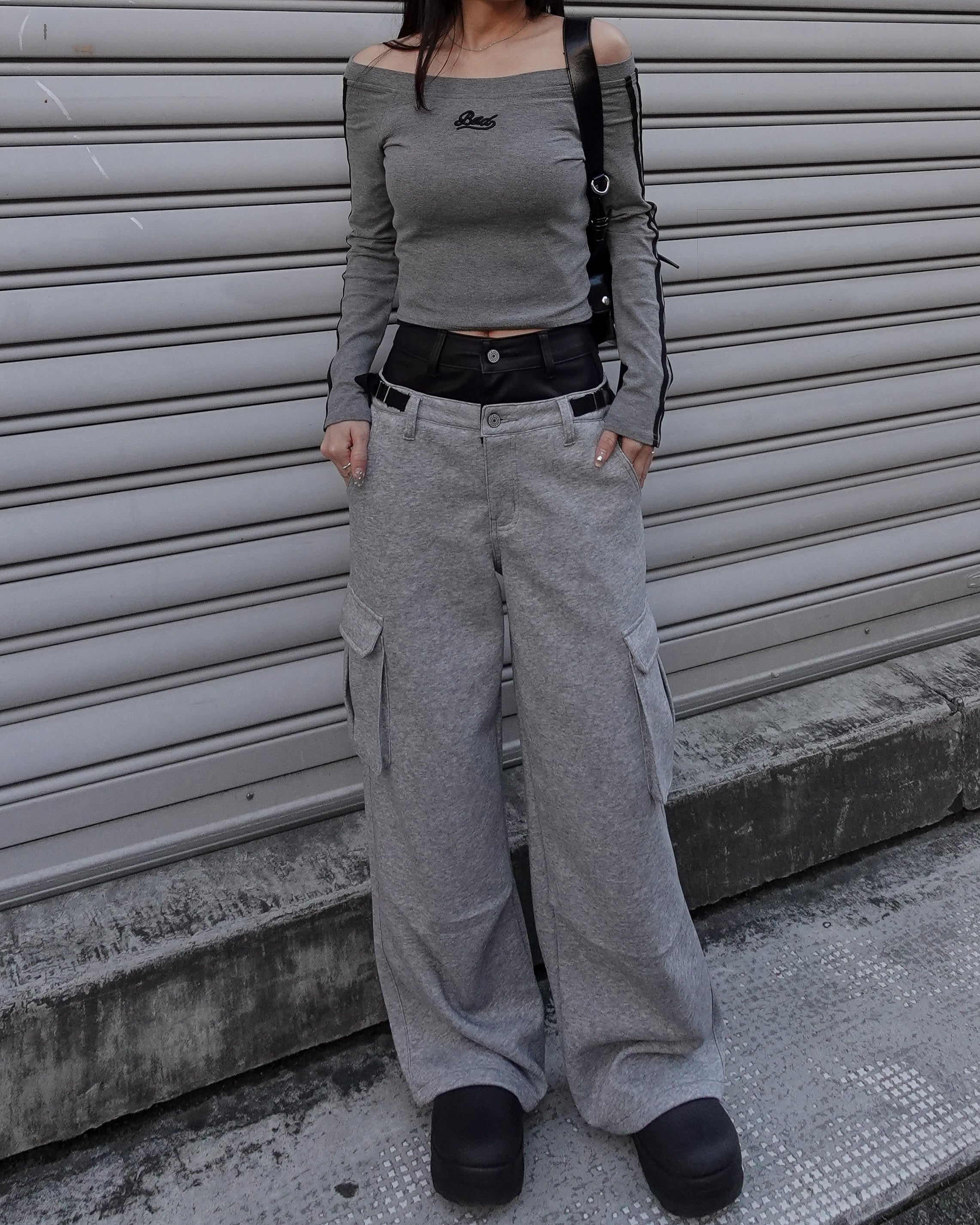 一番のポイントは、フェイクレザーをあしらったダブルウエストデザイン。