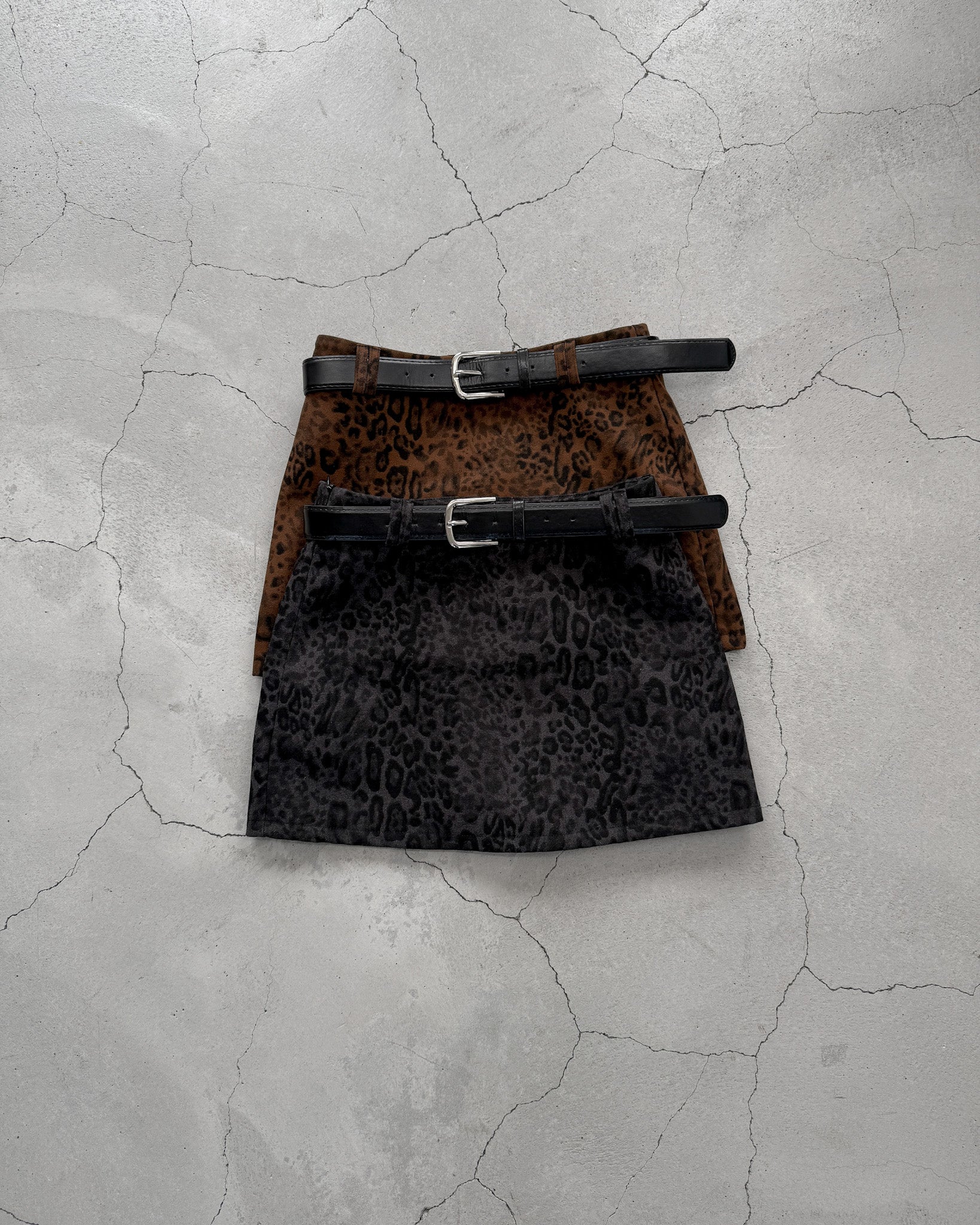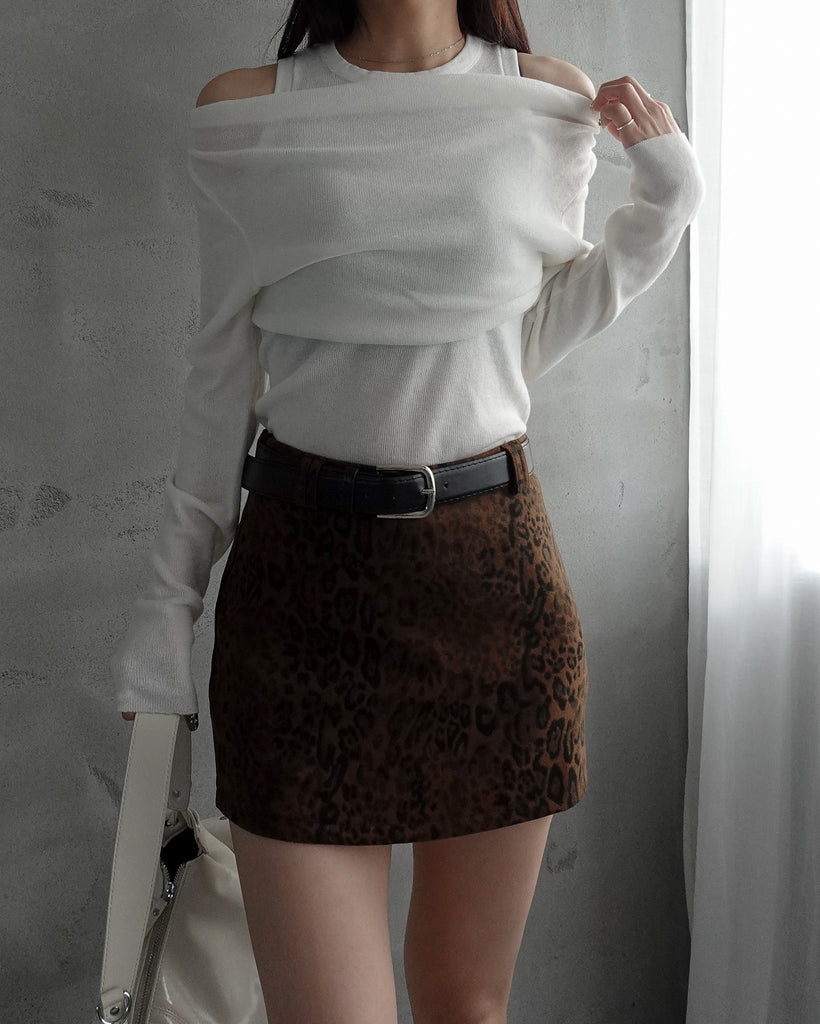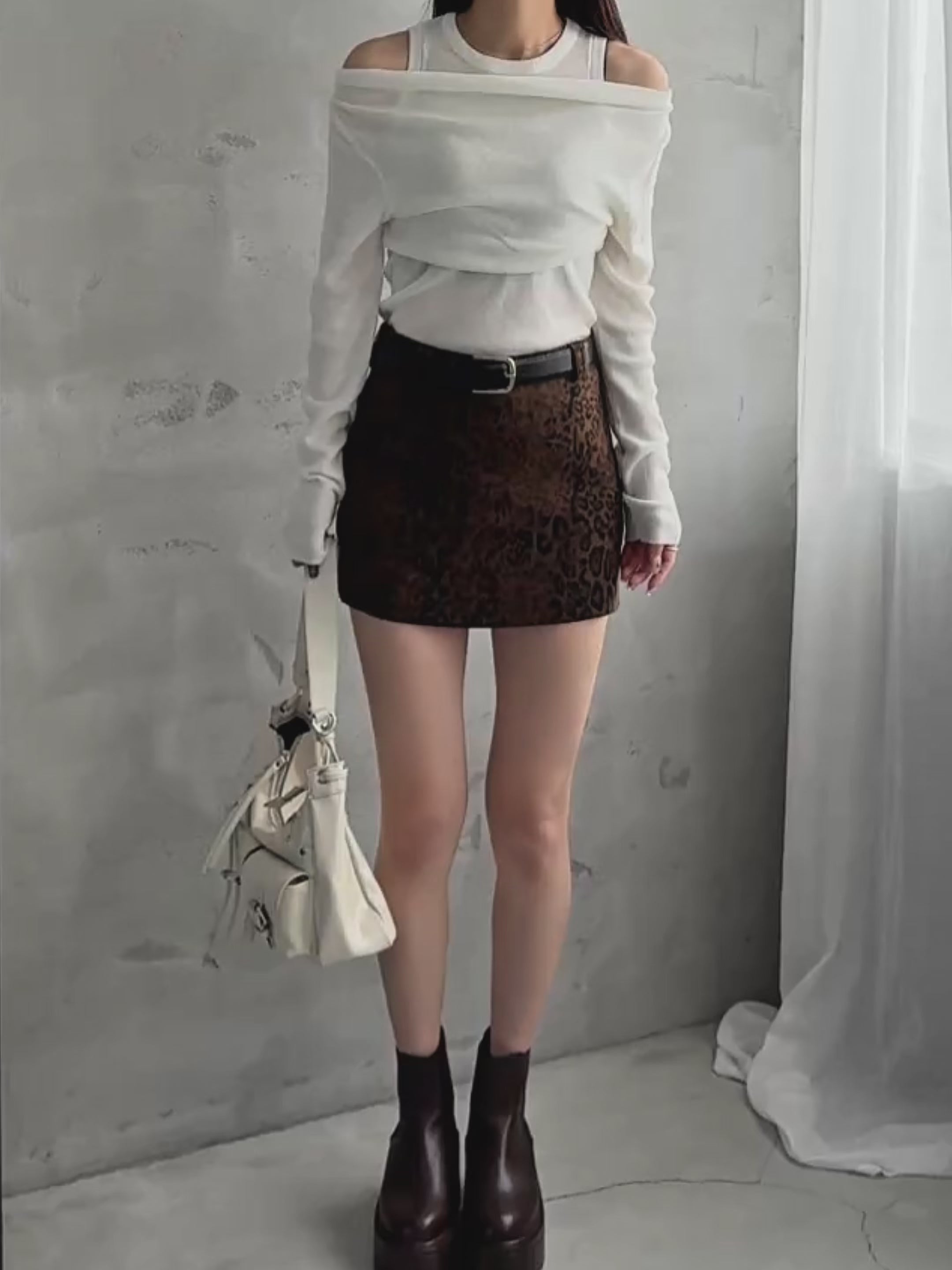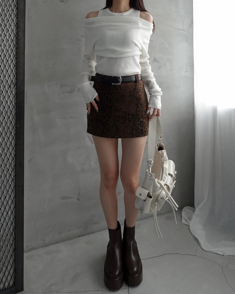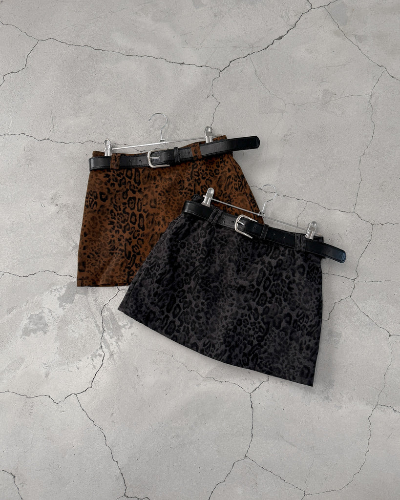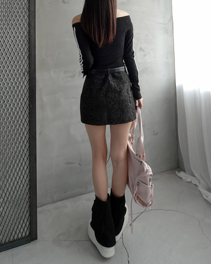レオパード柄のミニスカート。