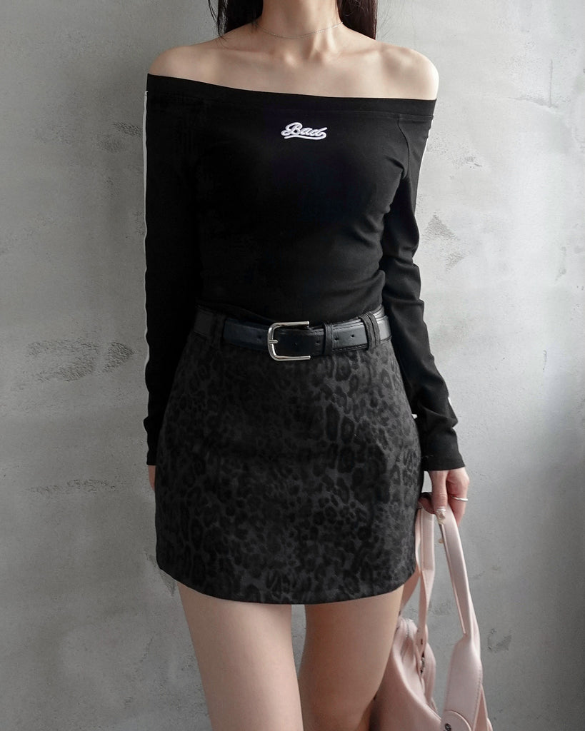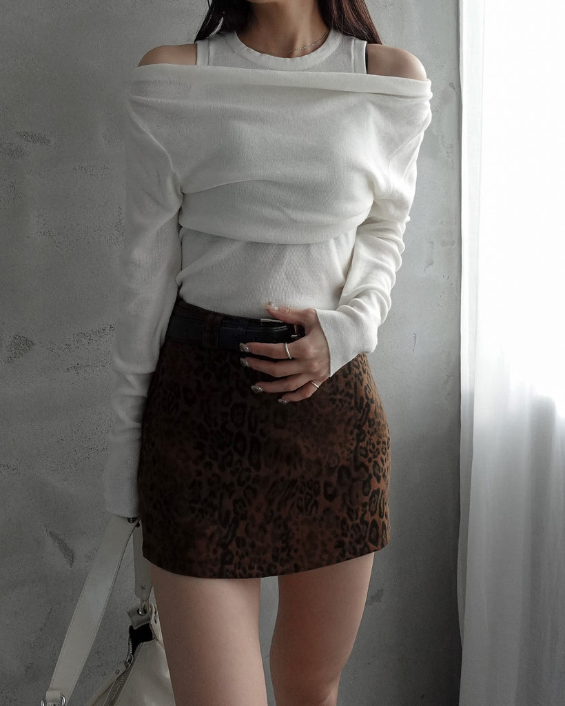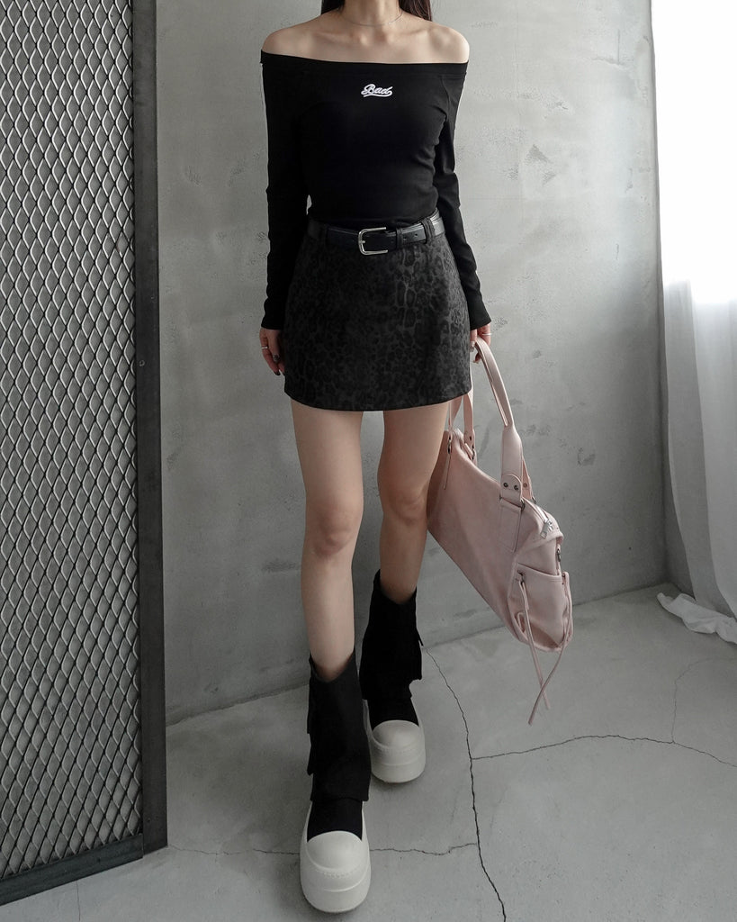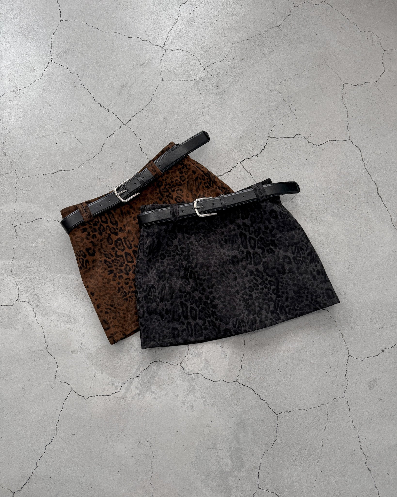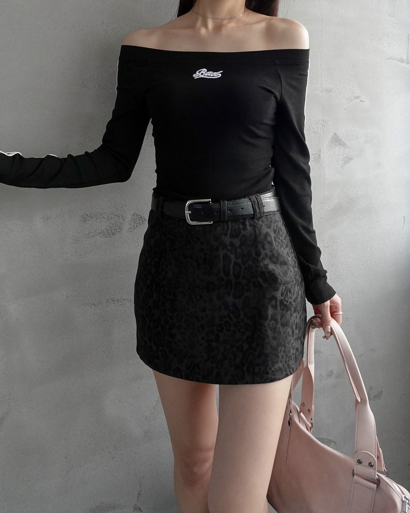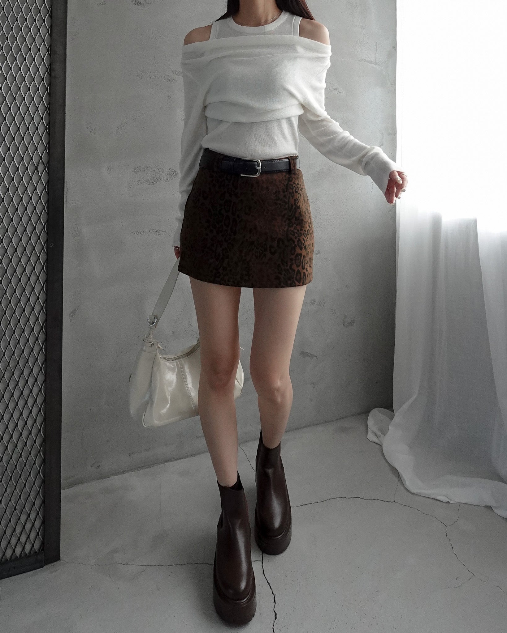 レオパード柄のミニスカート。