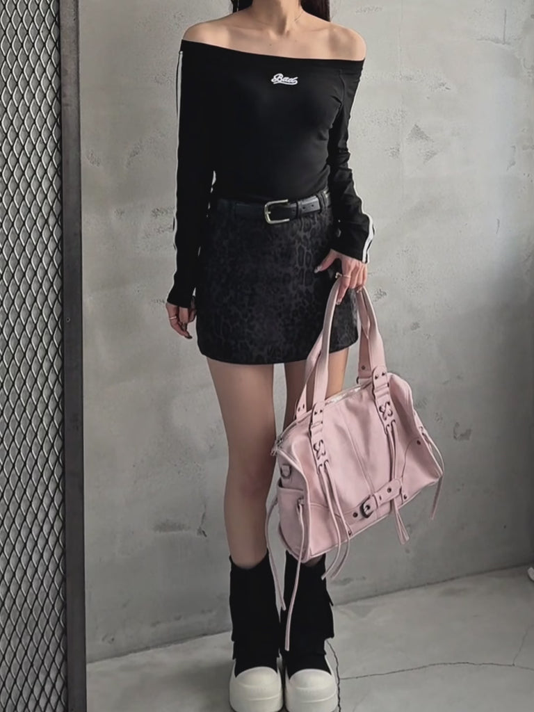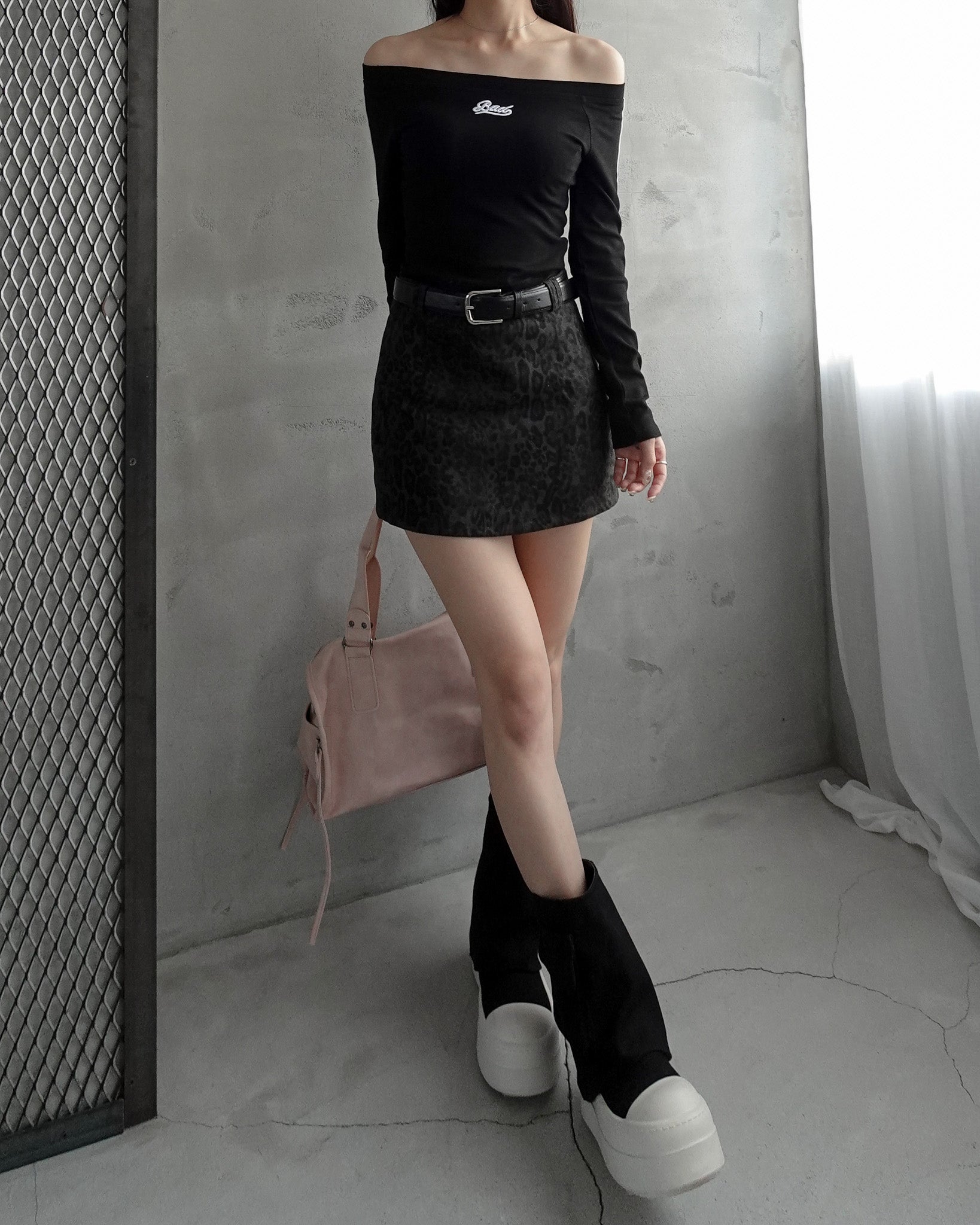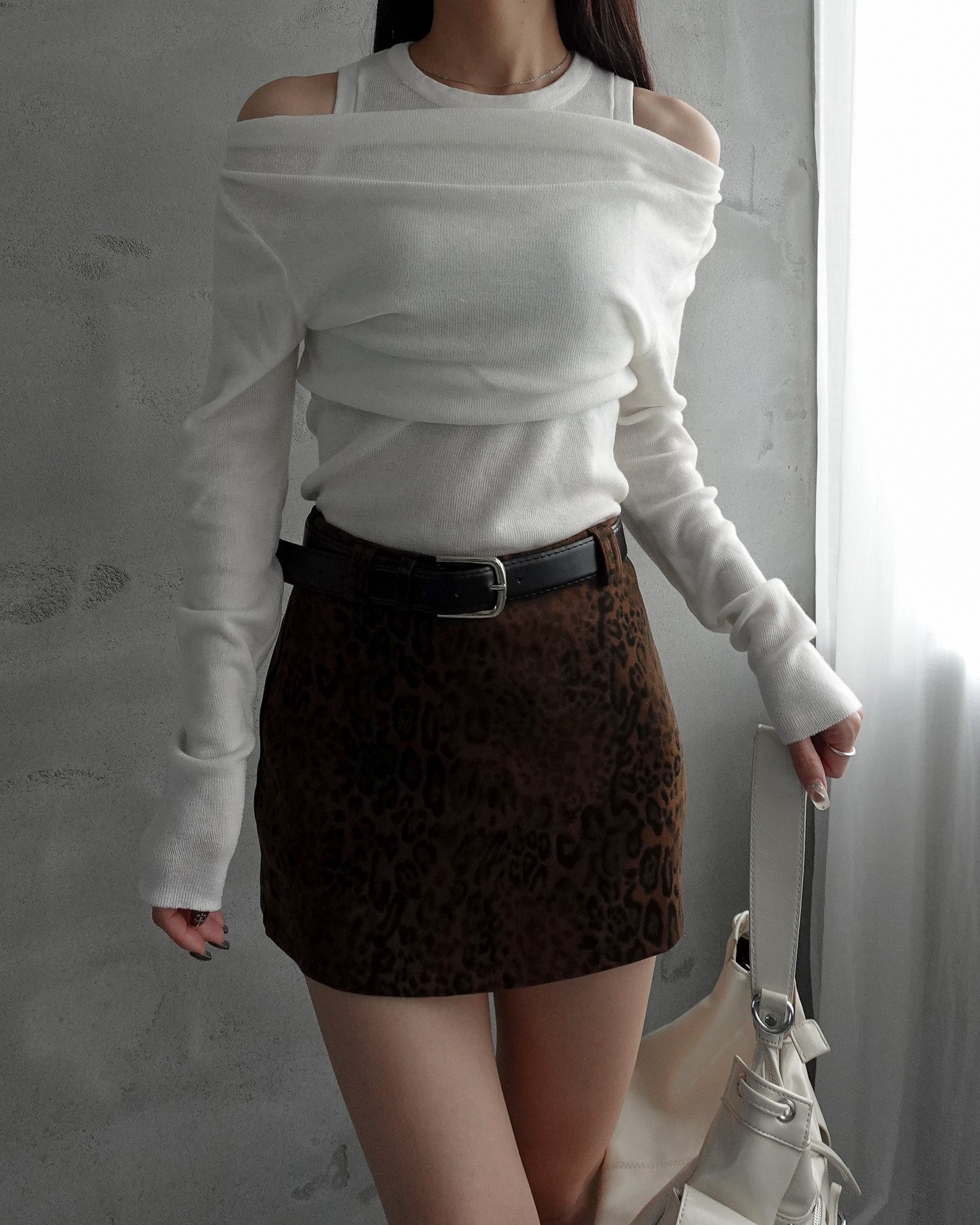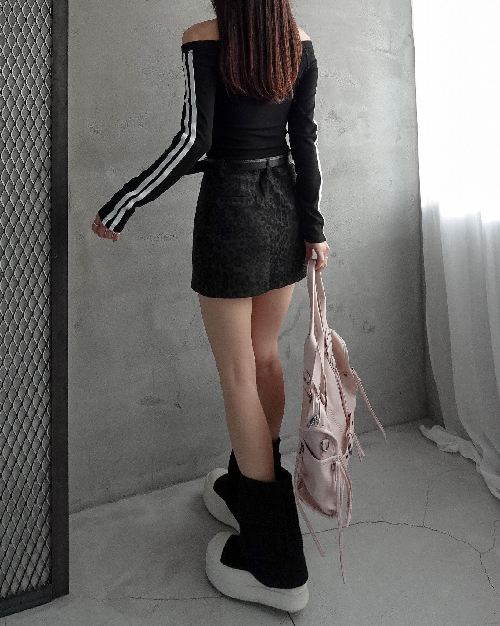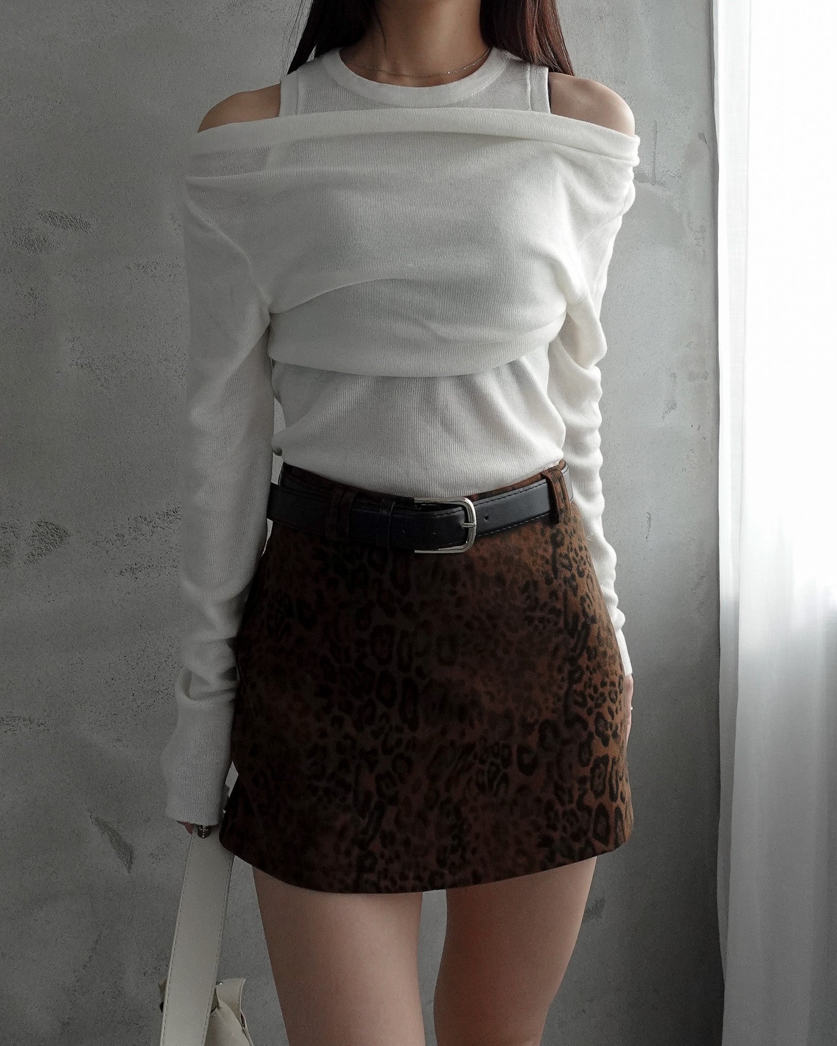 レオパード柄のミニスカート。
