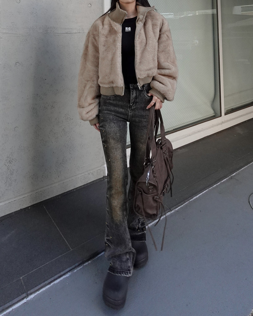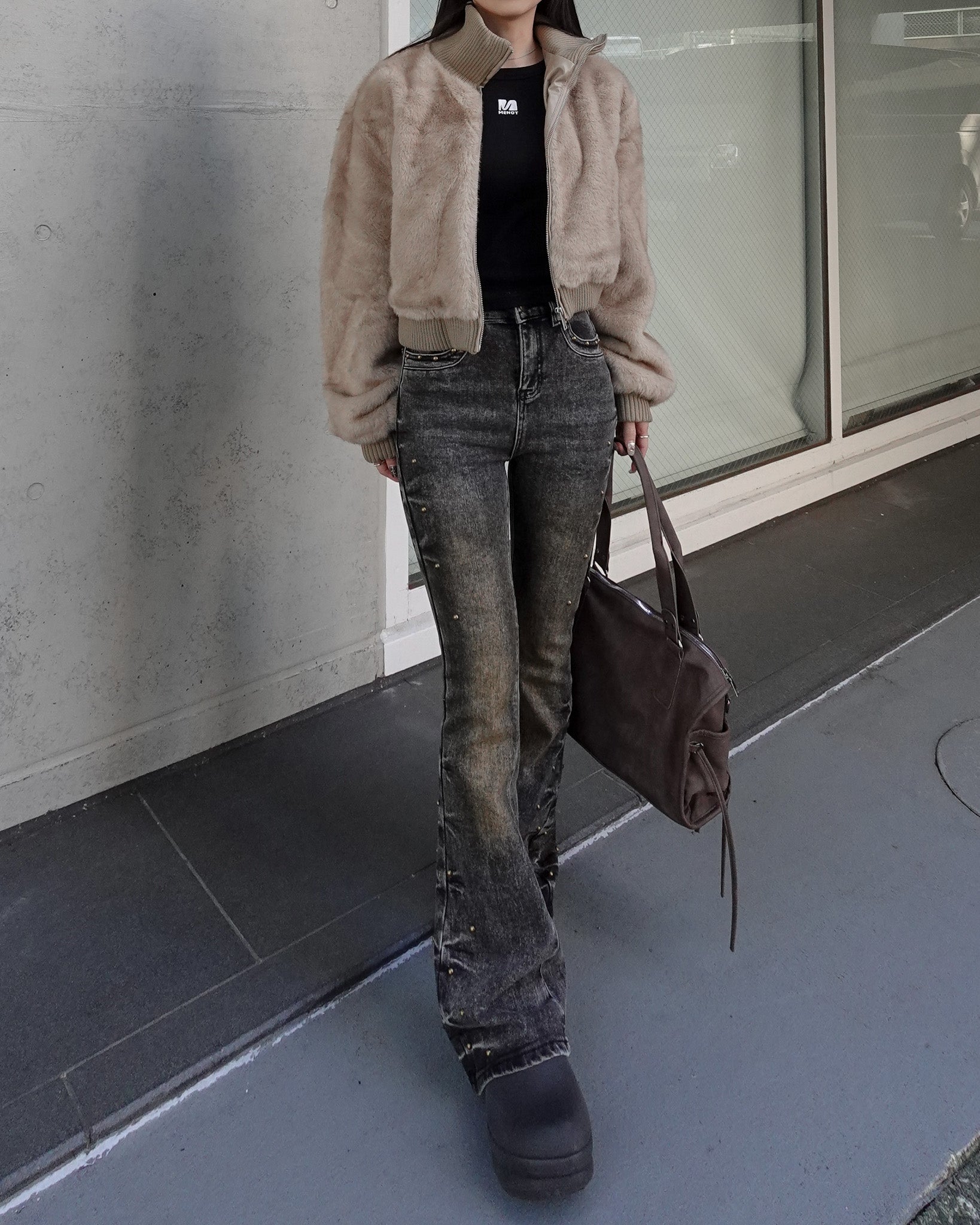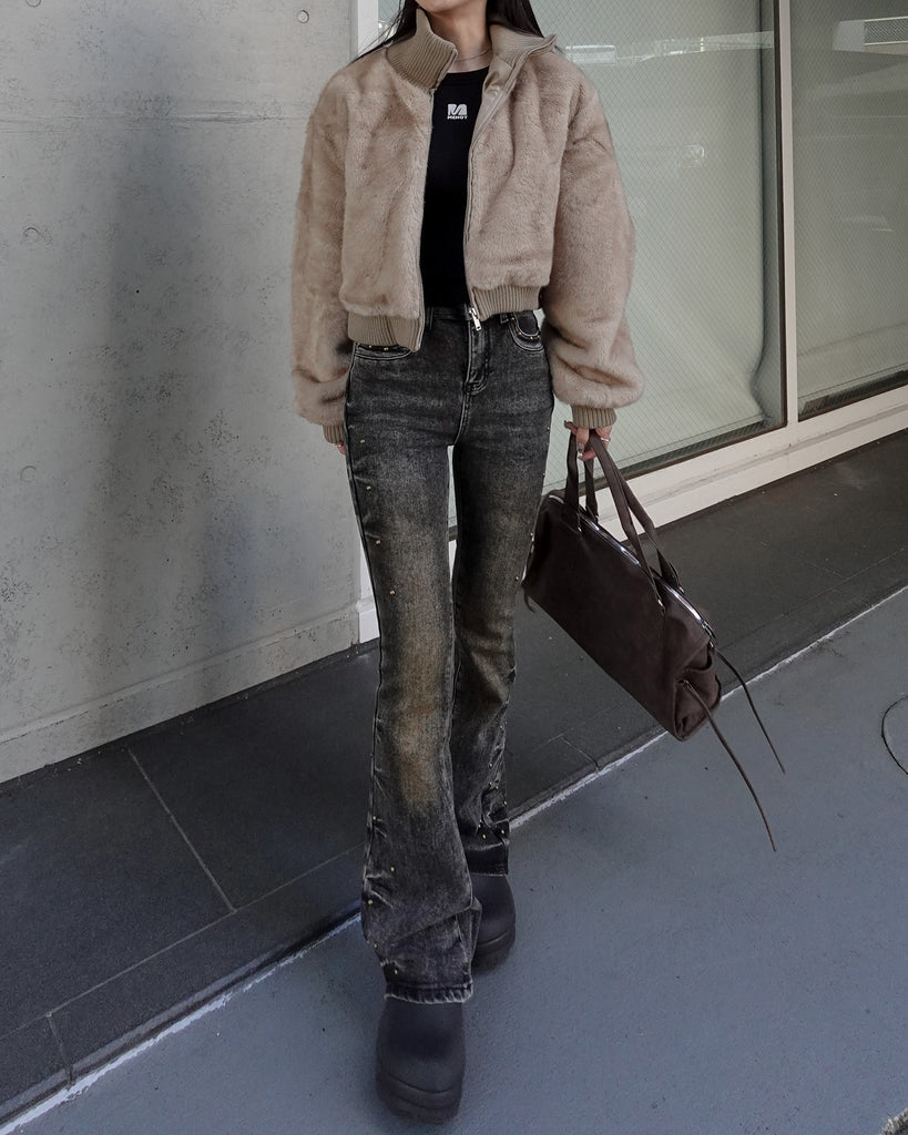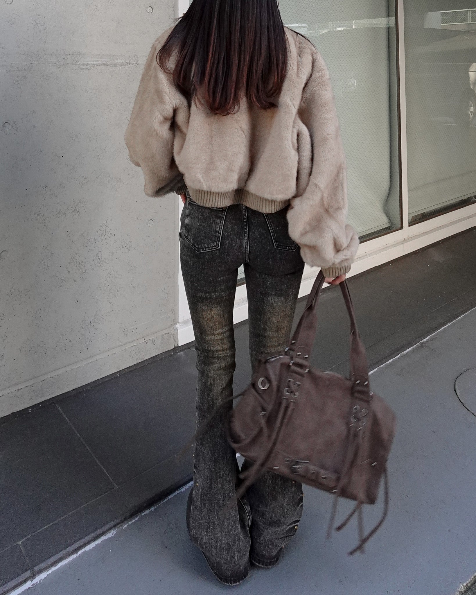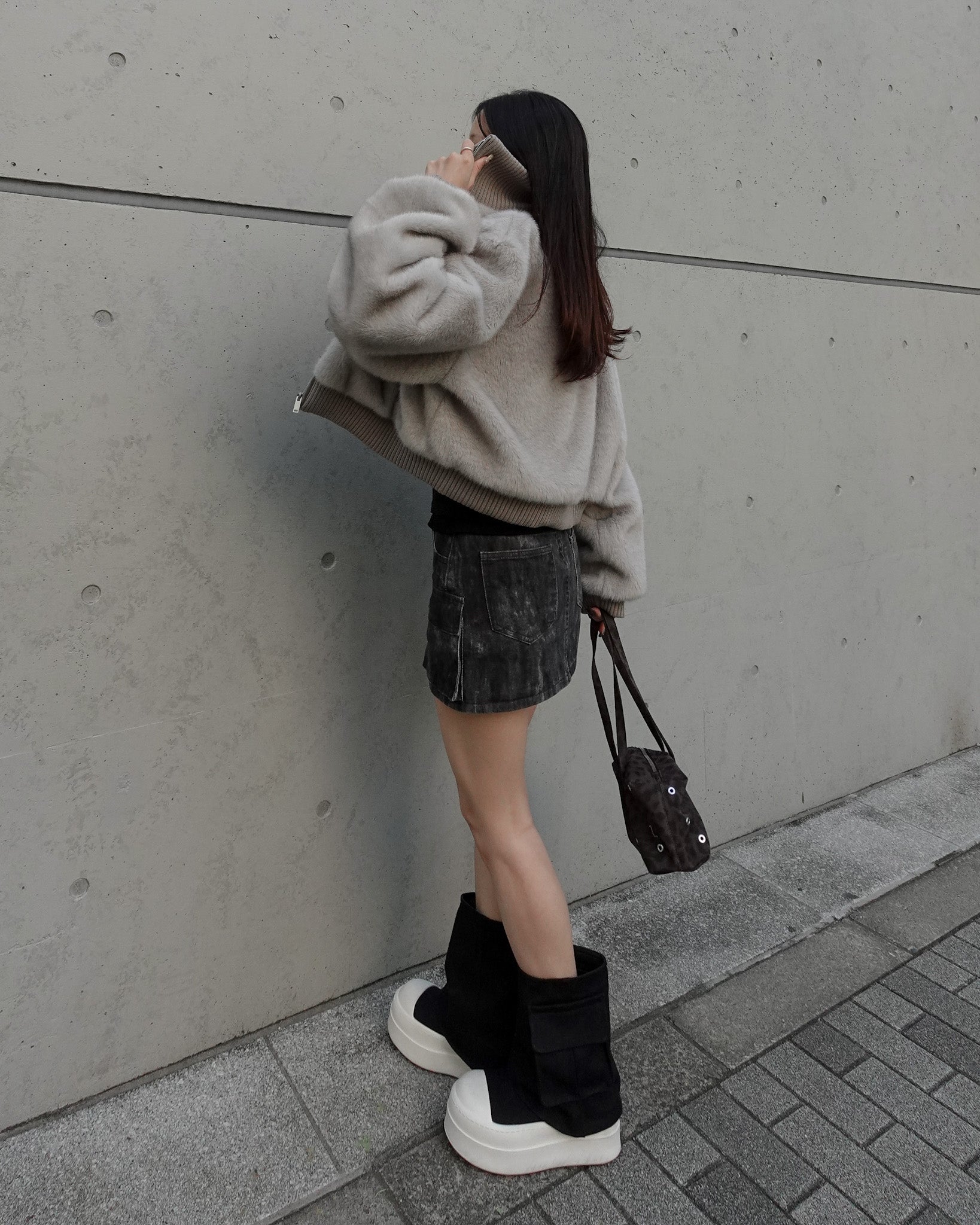 デニムやスウェットパンツでもファーの上品さでカジュアルを格上げしてくれます!