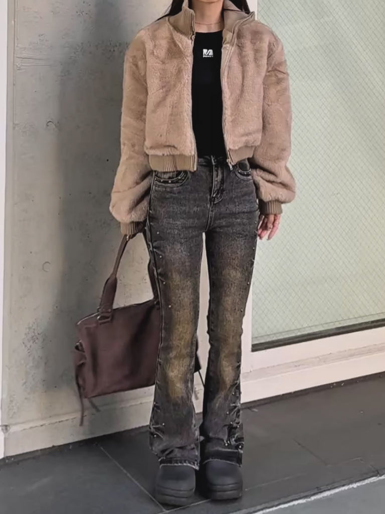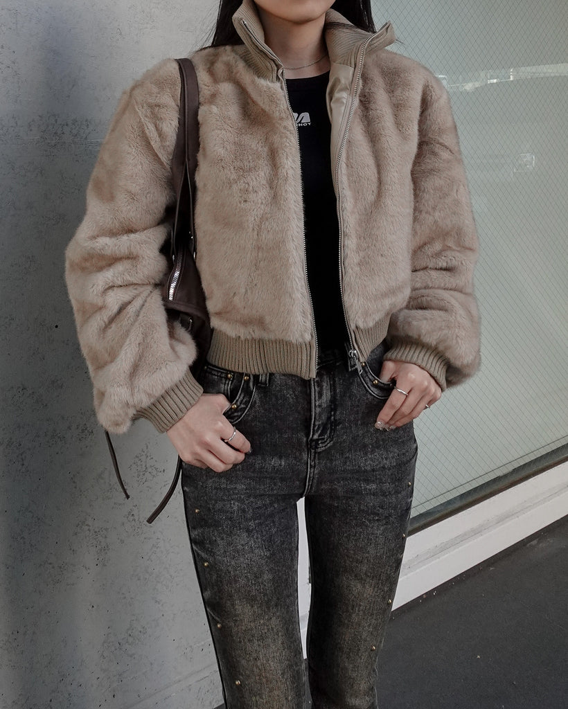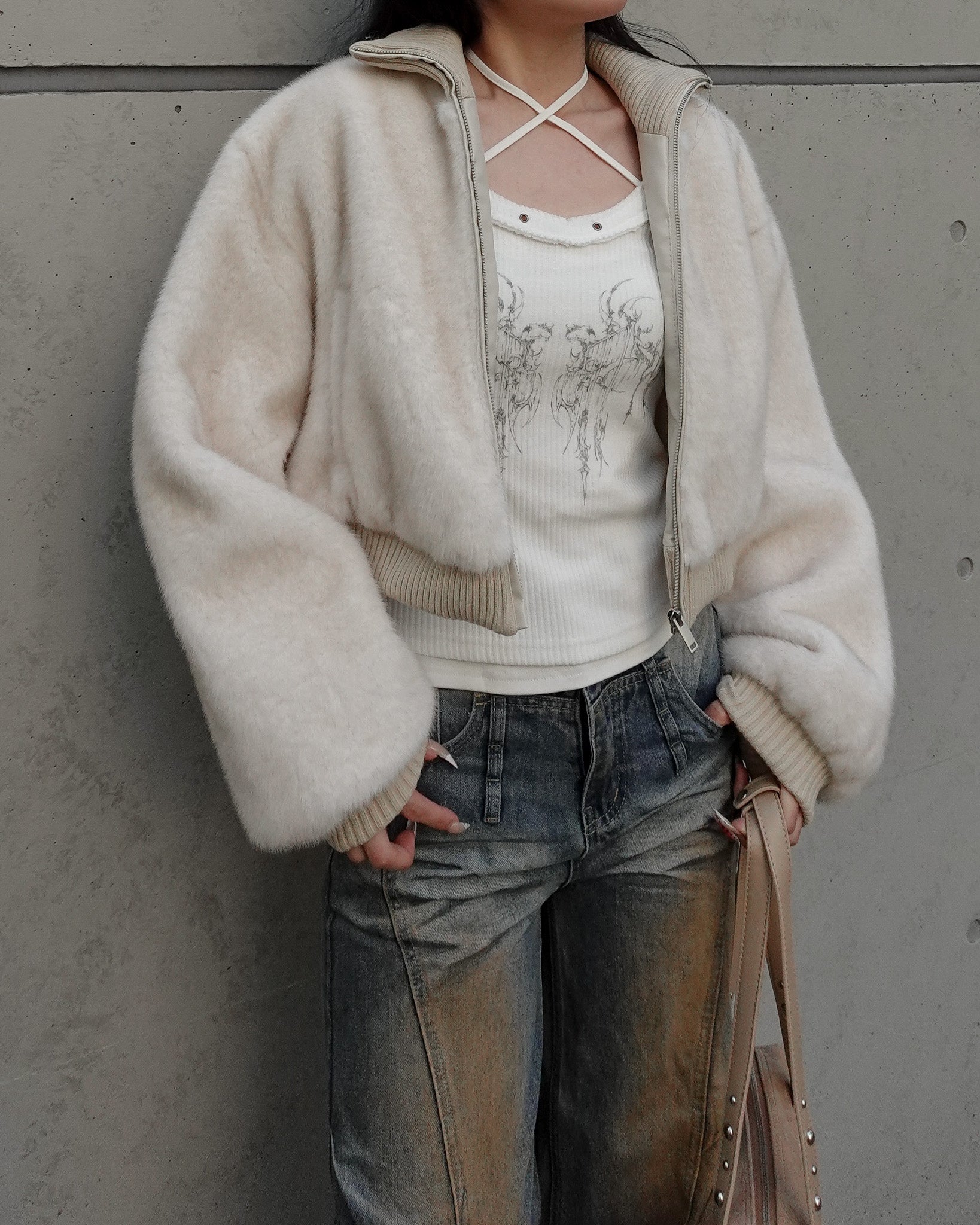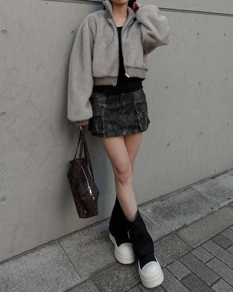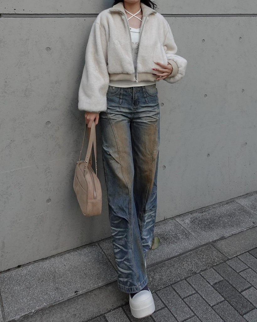 デニムやスウェットパンツでもファーの上品さでカジュアルを格上げしてくれます!