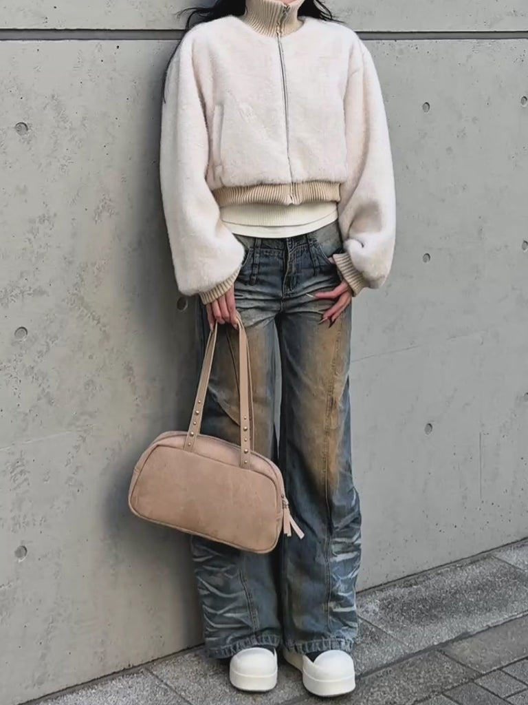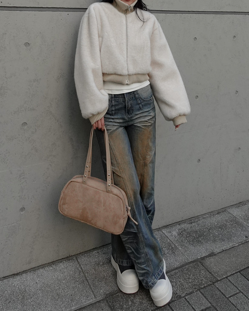 秋冬コーデを楽しめるように少し毛足のある温かみのある素材を使っています。