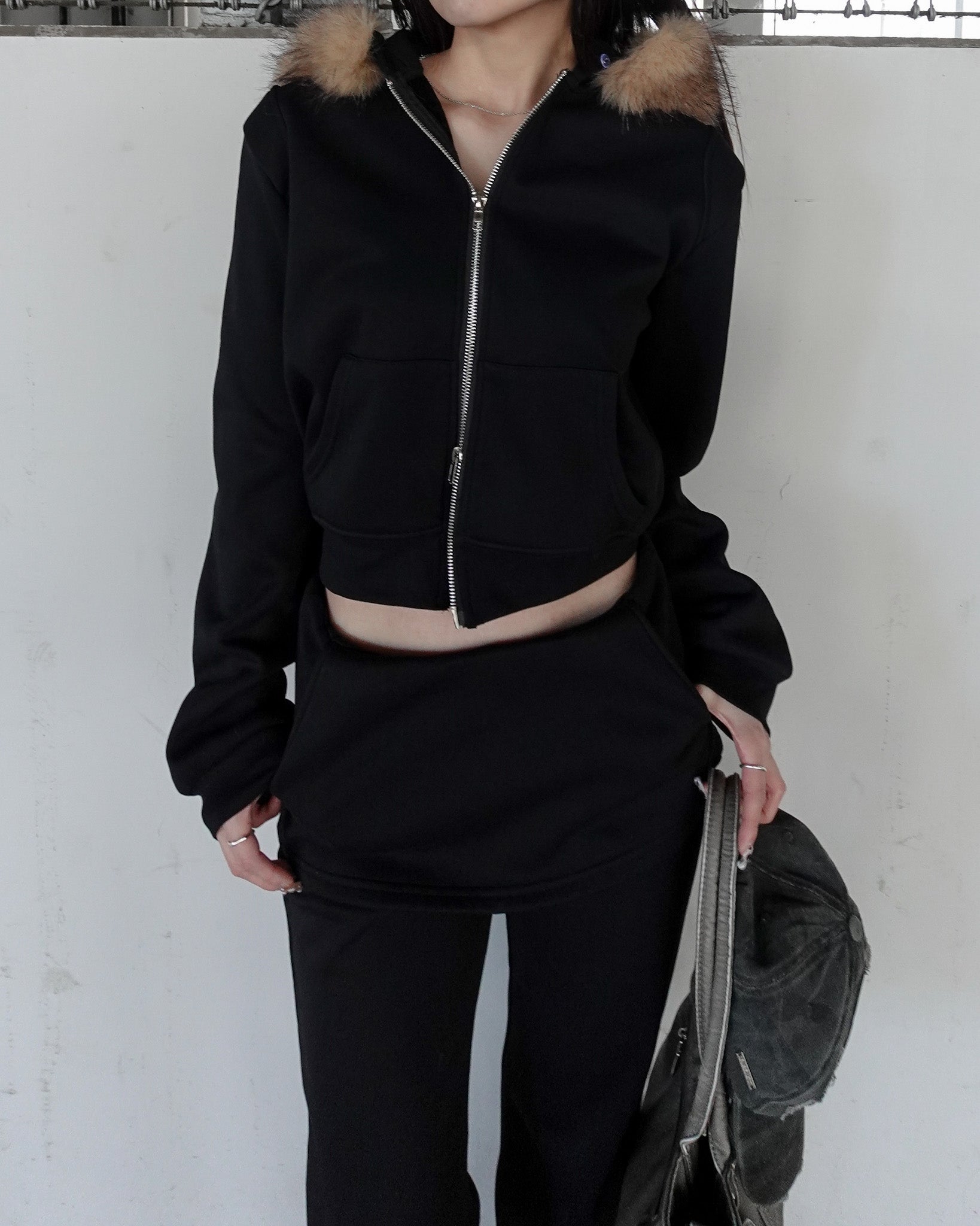 クロップドジップフーディトップスとセットでも着ていただけるように