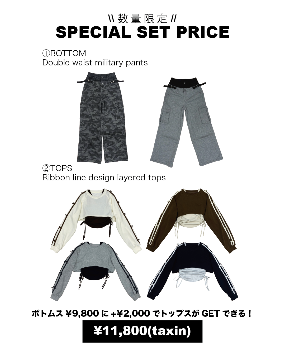 ダブルウエストミリタリーパンツ¥9,800に+¥2,000でトップスが付いてくる!