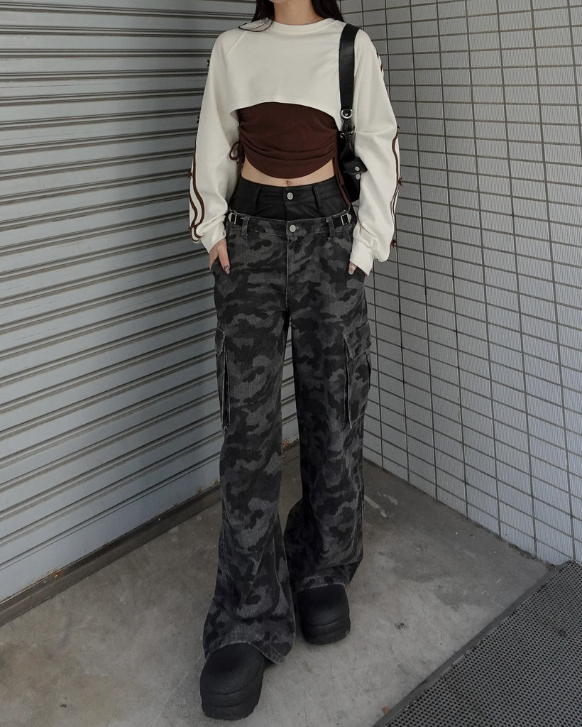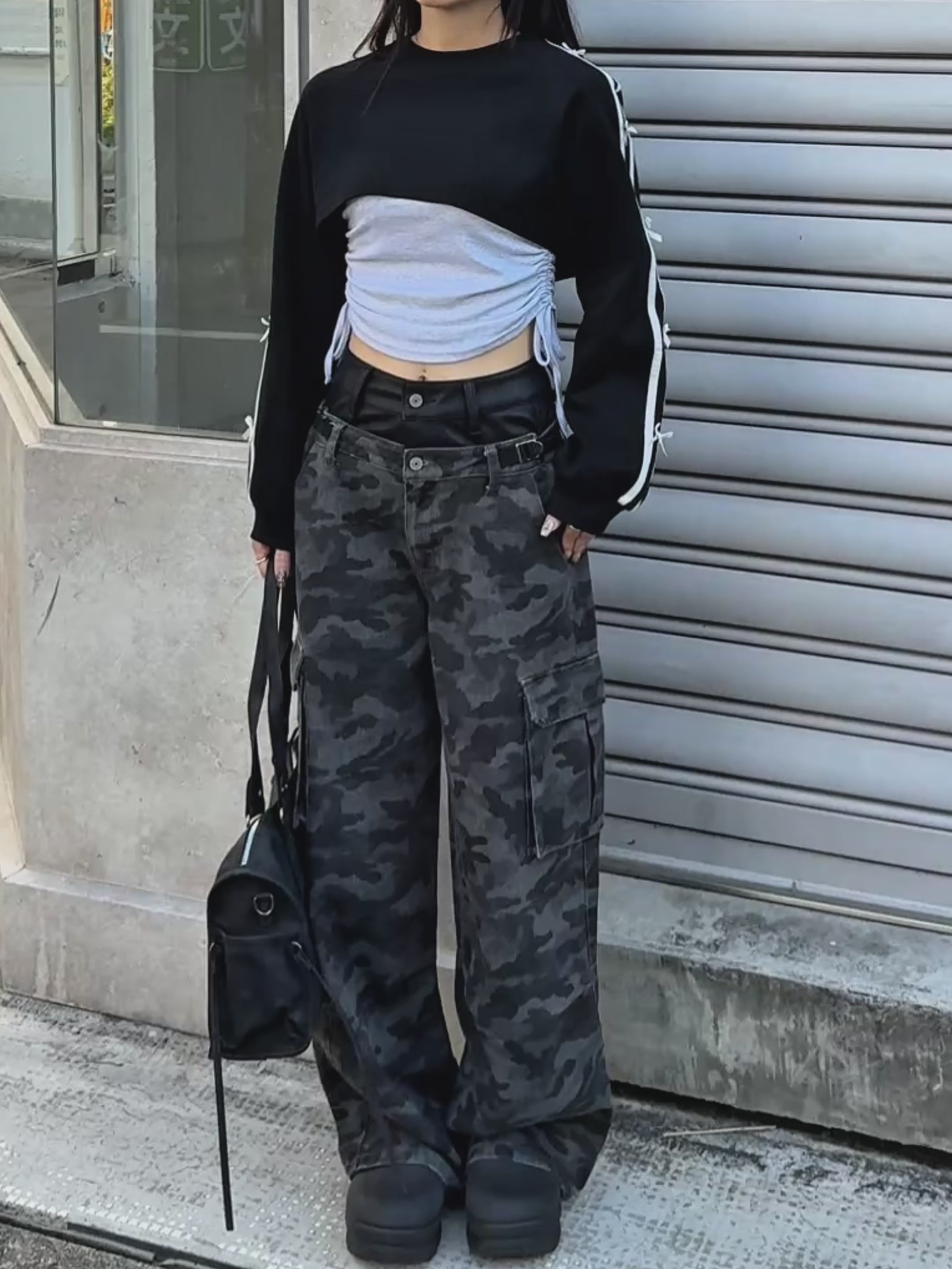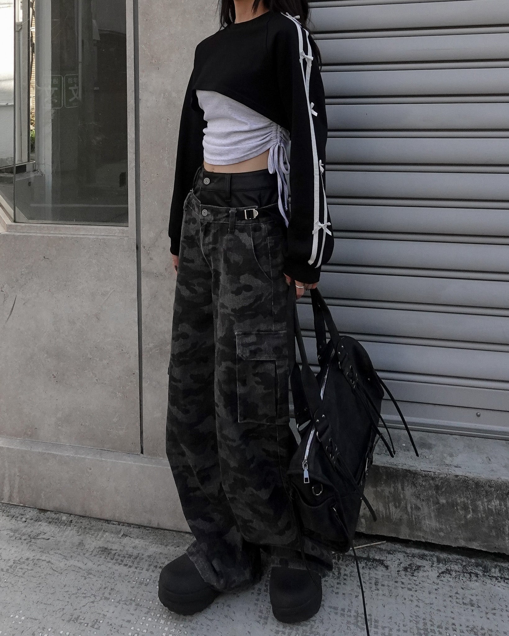 【プラス2,000円でトップスがGETできる!】ダブルウエストミリタリーパンツ×トップスセット