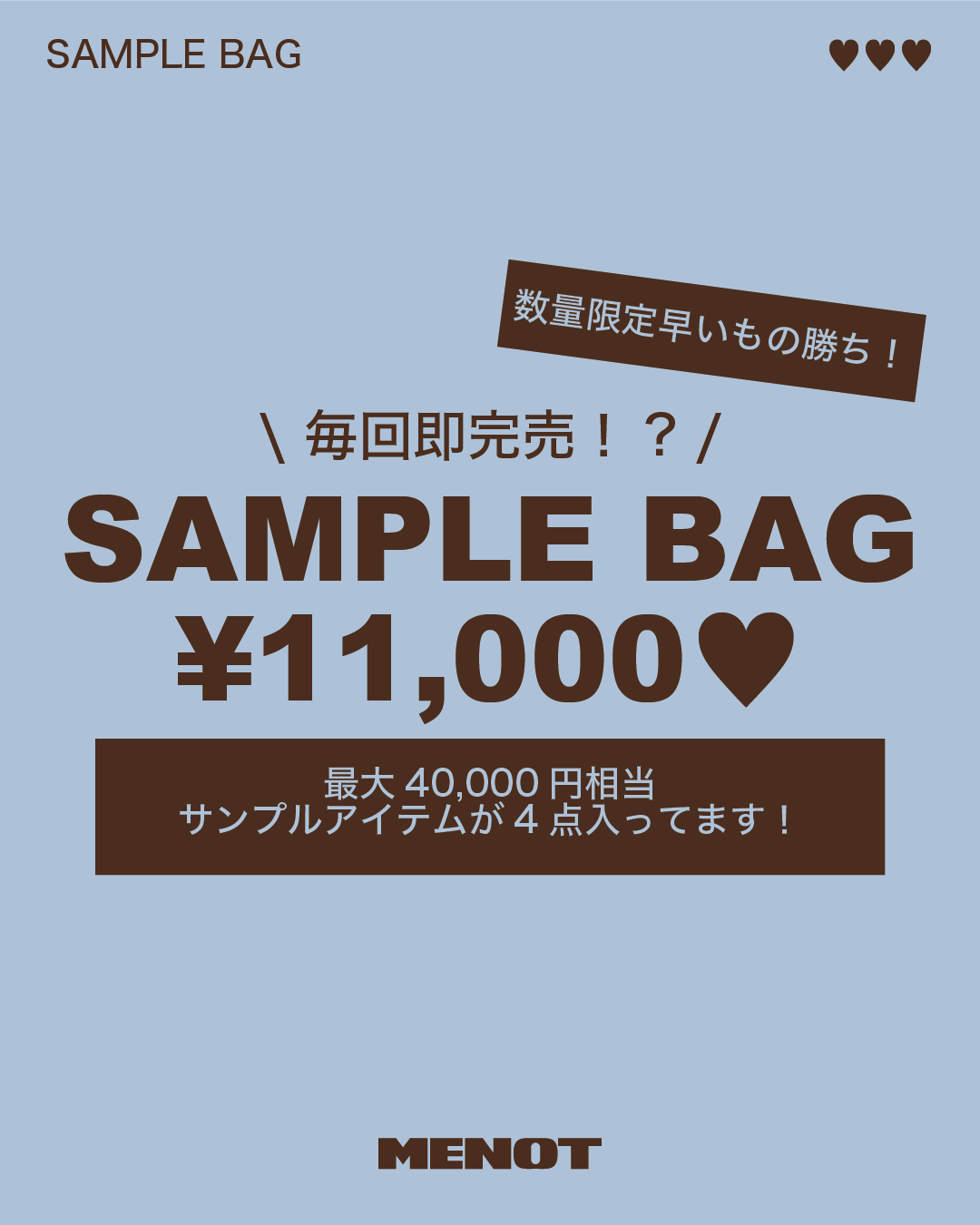 最大¥40,000相当、サンプルアイテムが4点入って【¥11,000】と超お買い得🛒💨