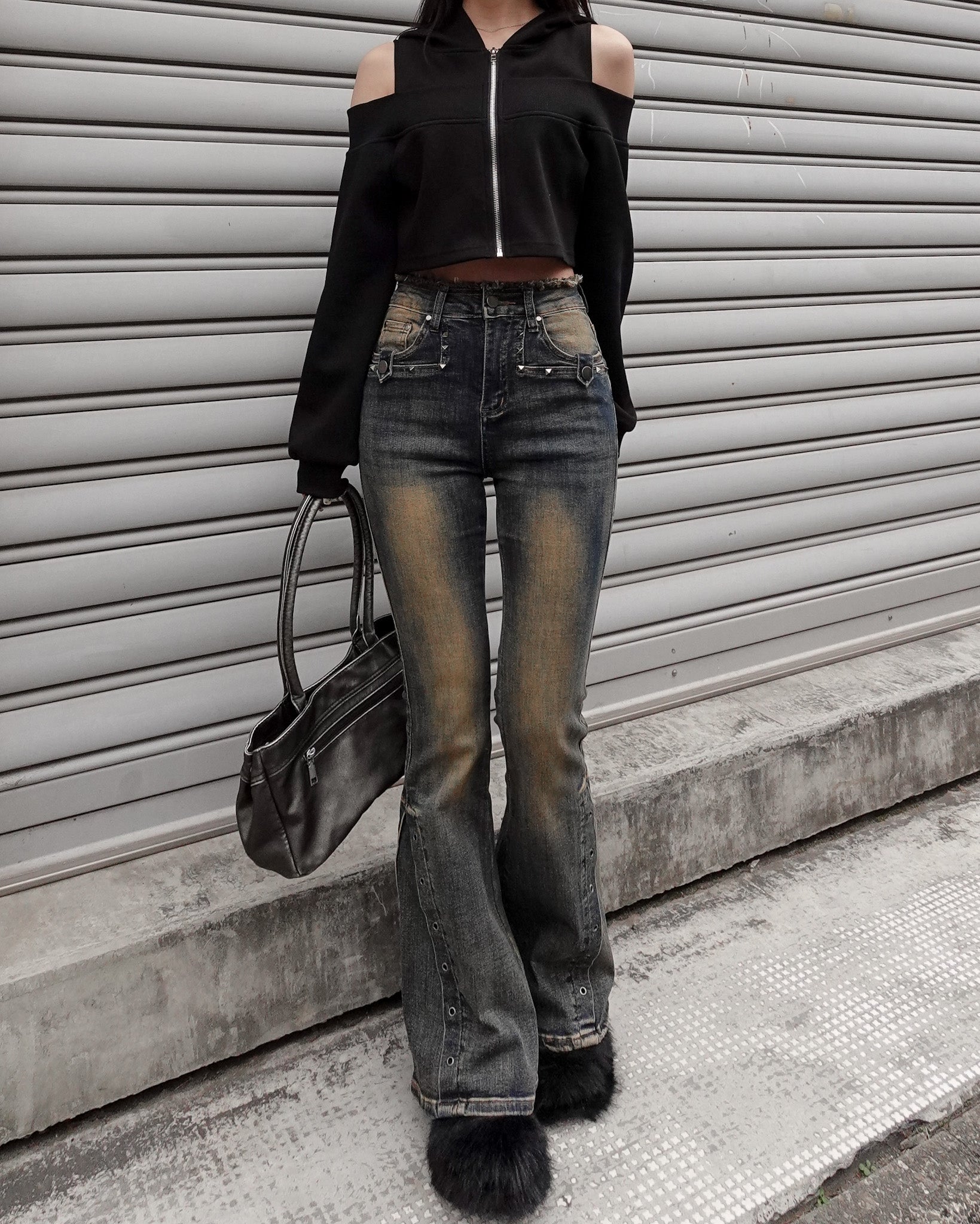 素材により、摩擦や汗、雨などで濡れた時に他の衣類や下着、バッグなどの小物類に色移りする場合がありますので十分ご注意ください。