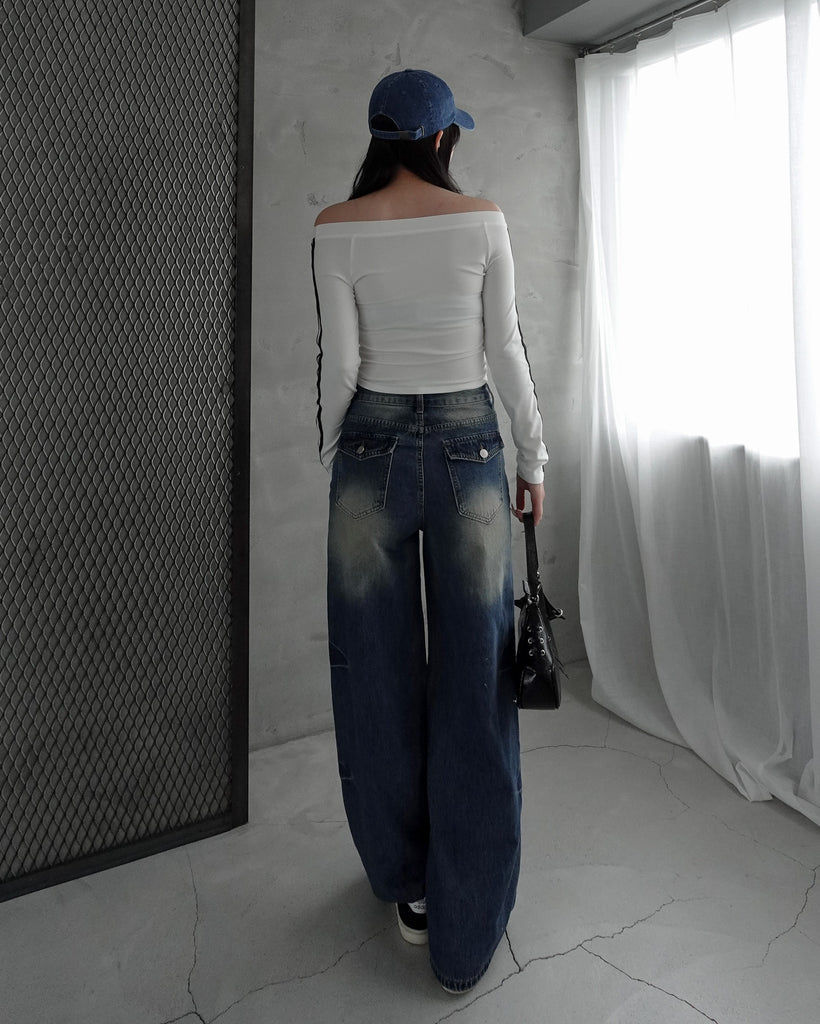エッジの効いた加工ながら、デニムというカジュアルな素材なので着回し力も抜群。