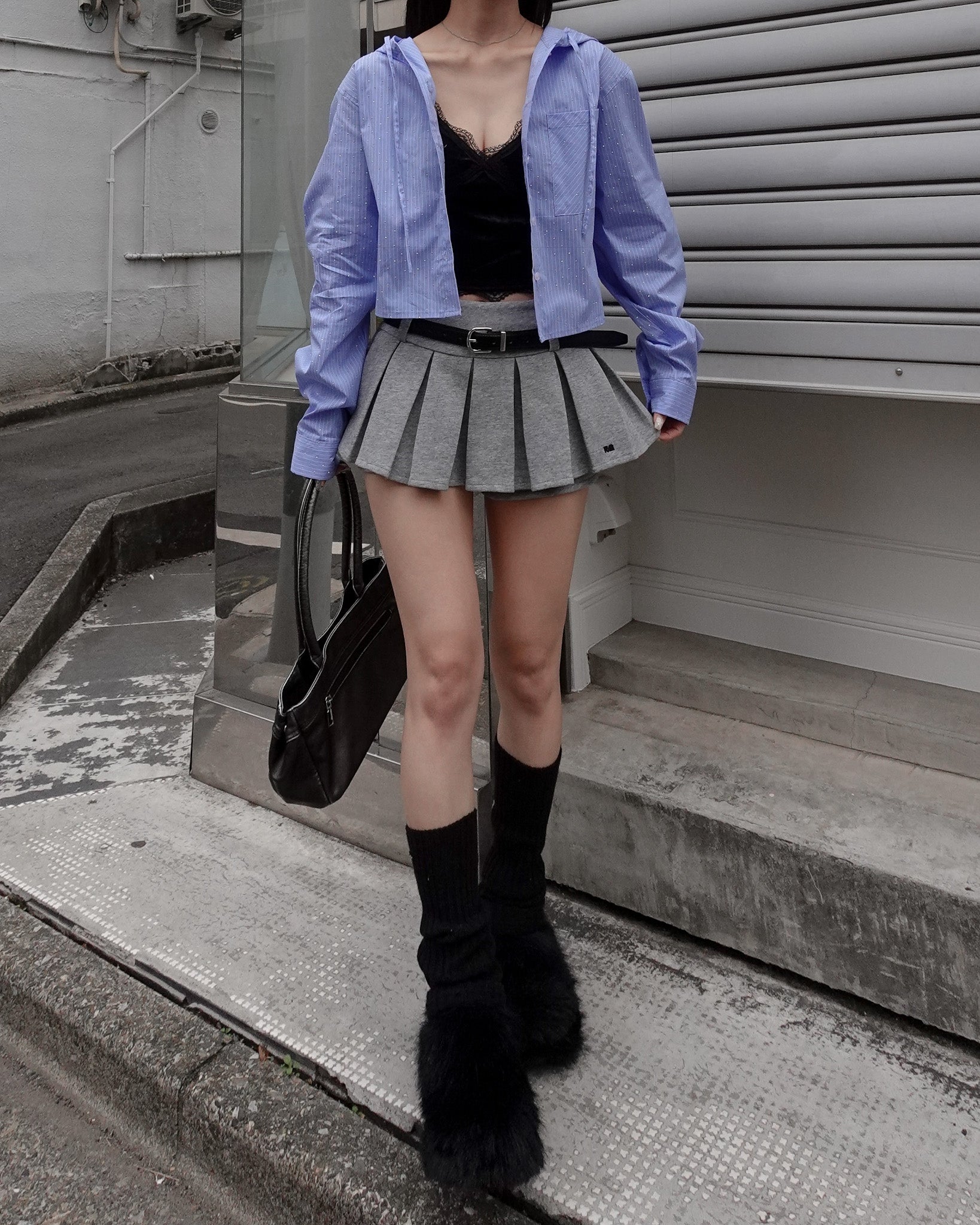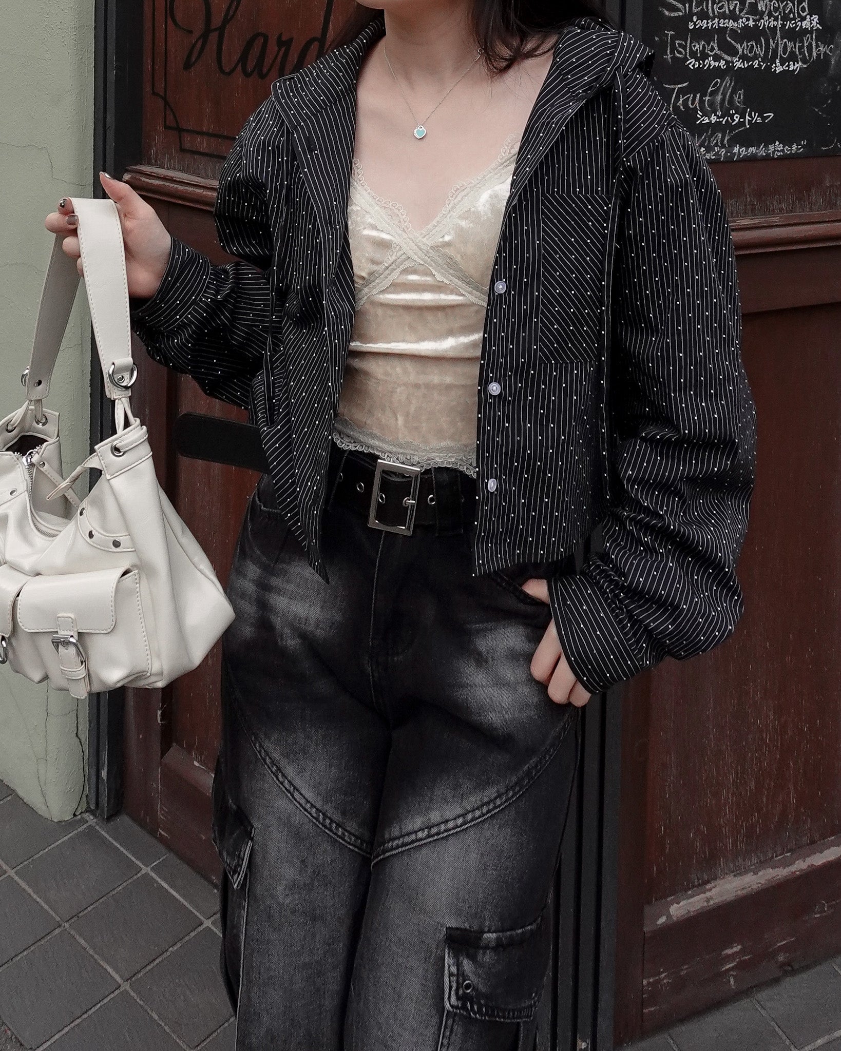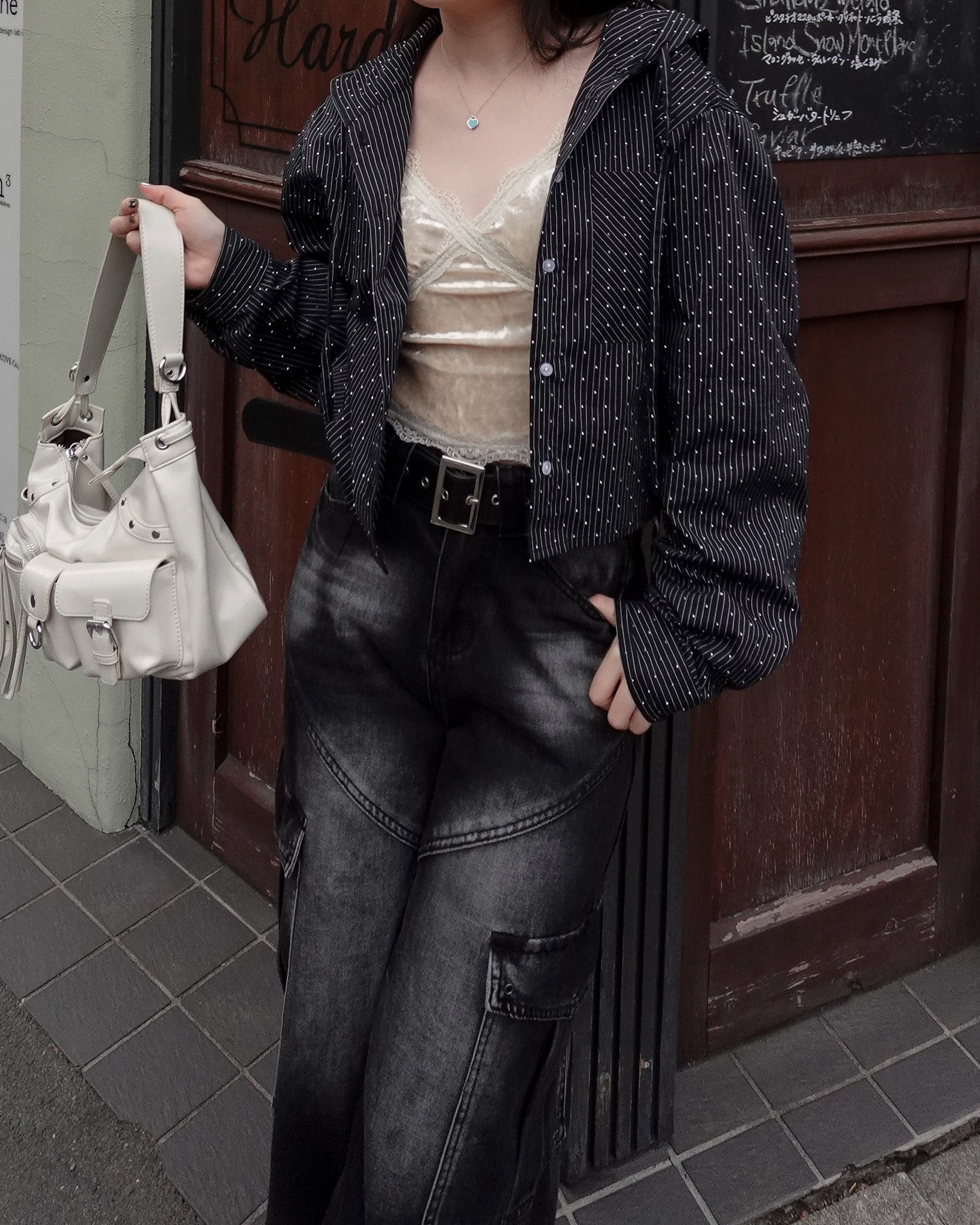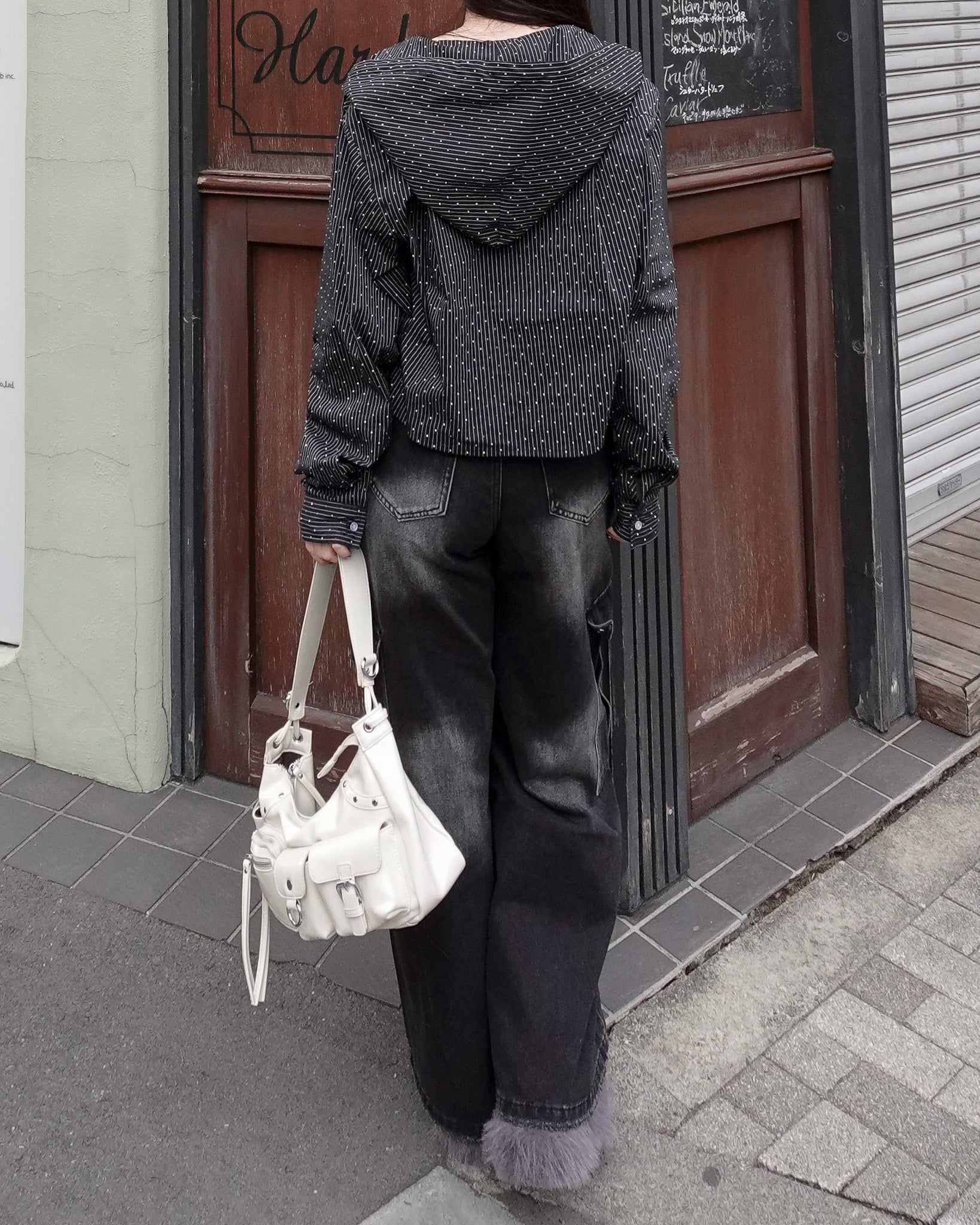 パーカーの下にきてチラッとキラキラのラインストーンを見せるのもおすすめです◎