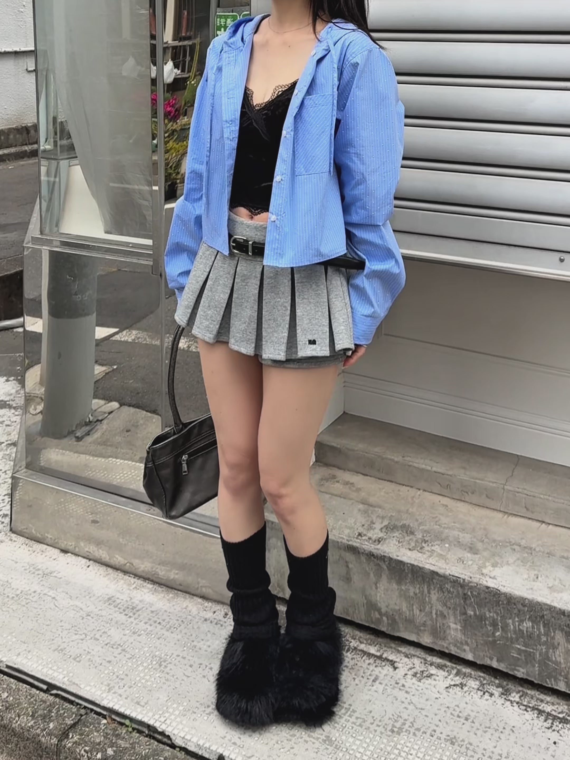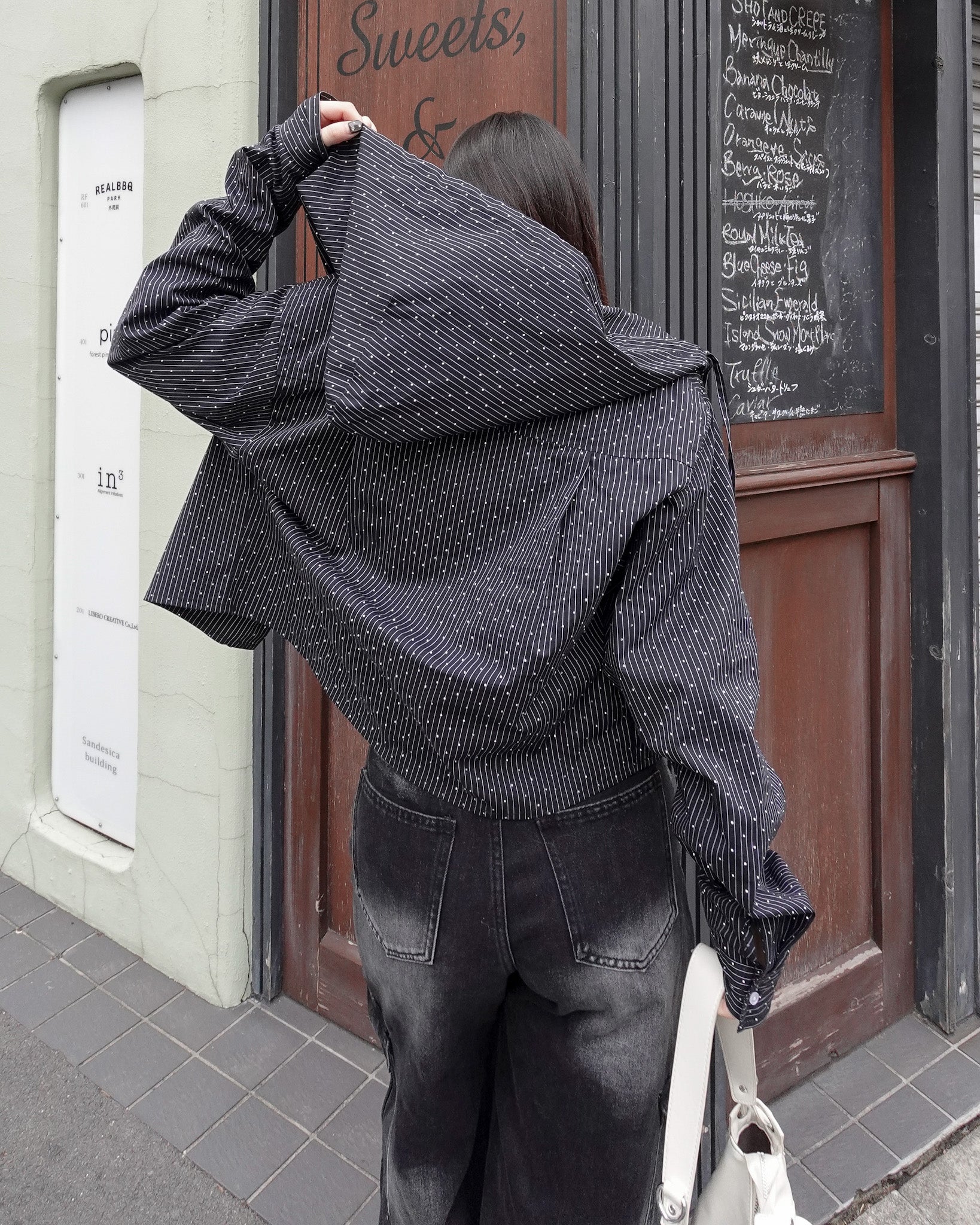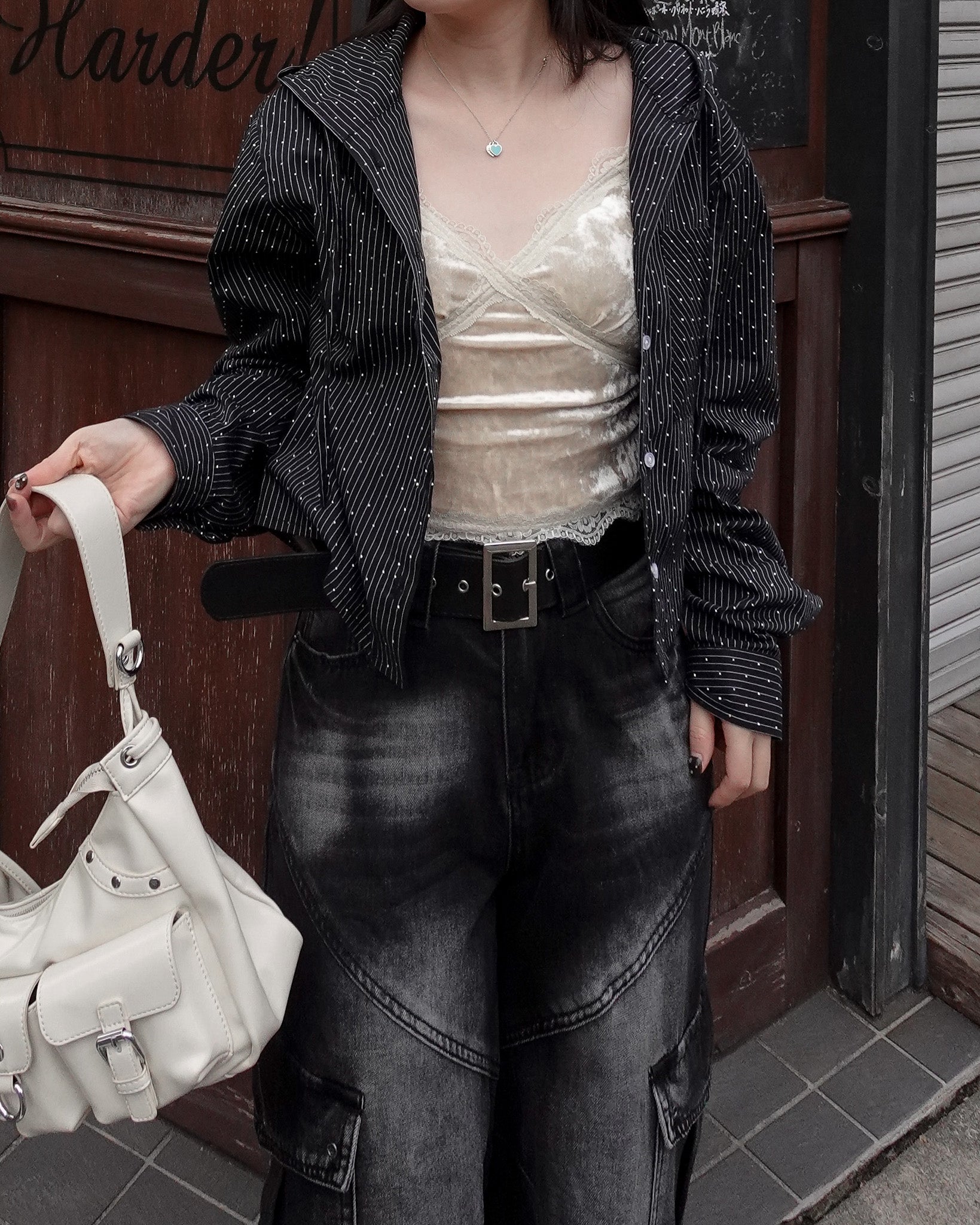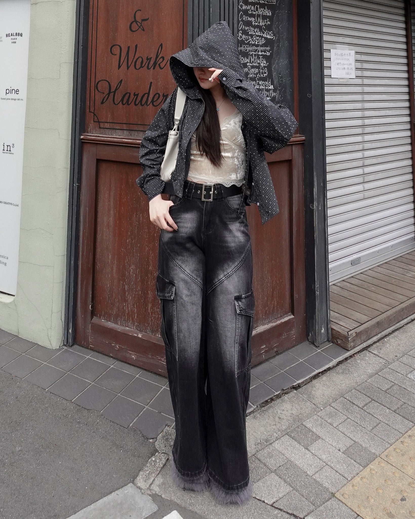 パーカーの下にきてチラッとキラキラのラインストーンを見せるのもおすすめです◎