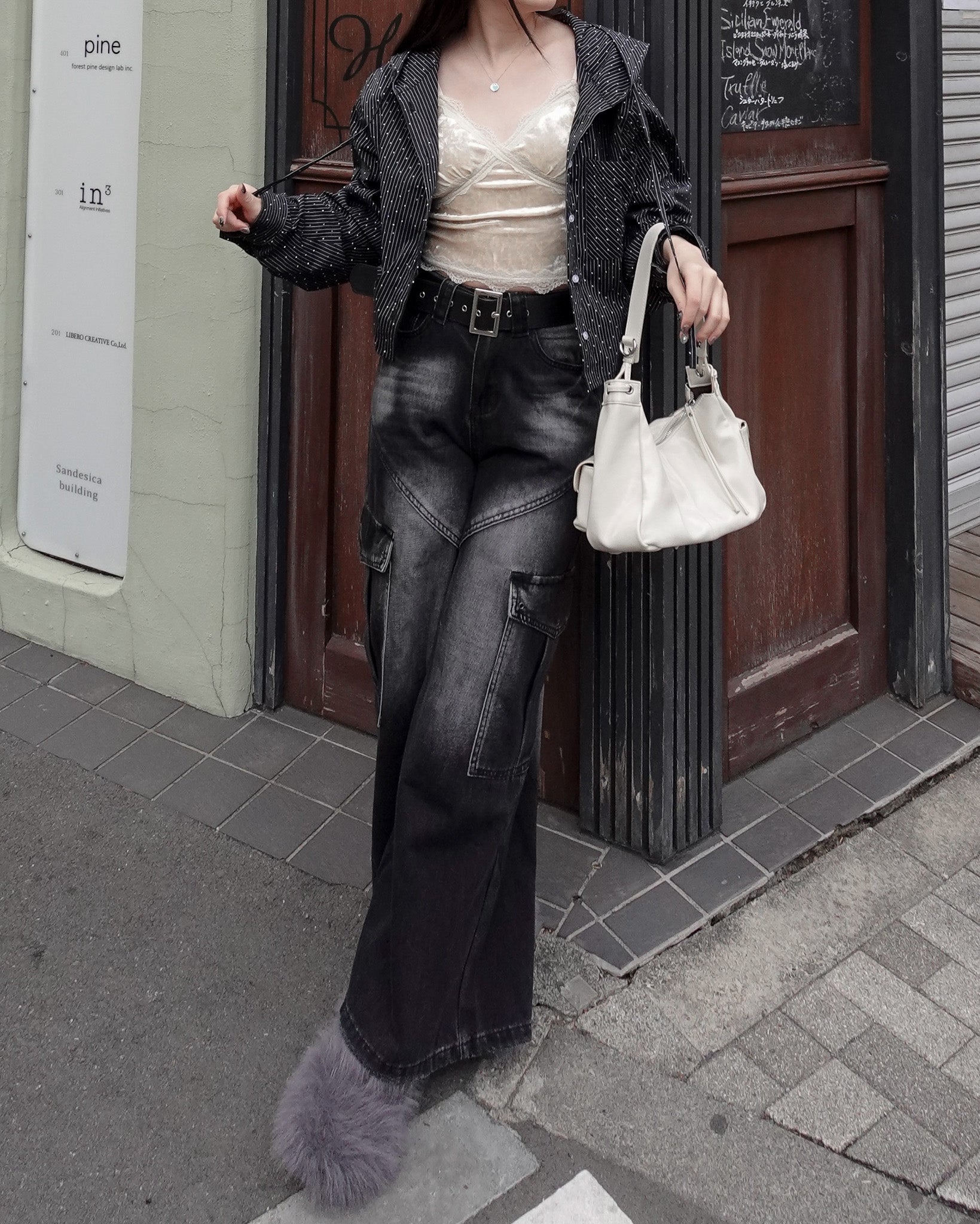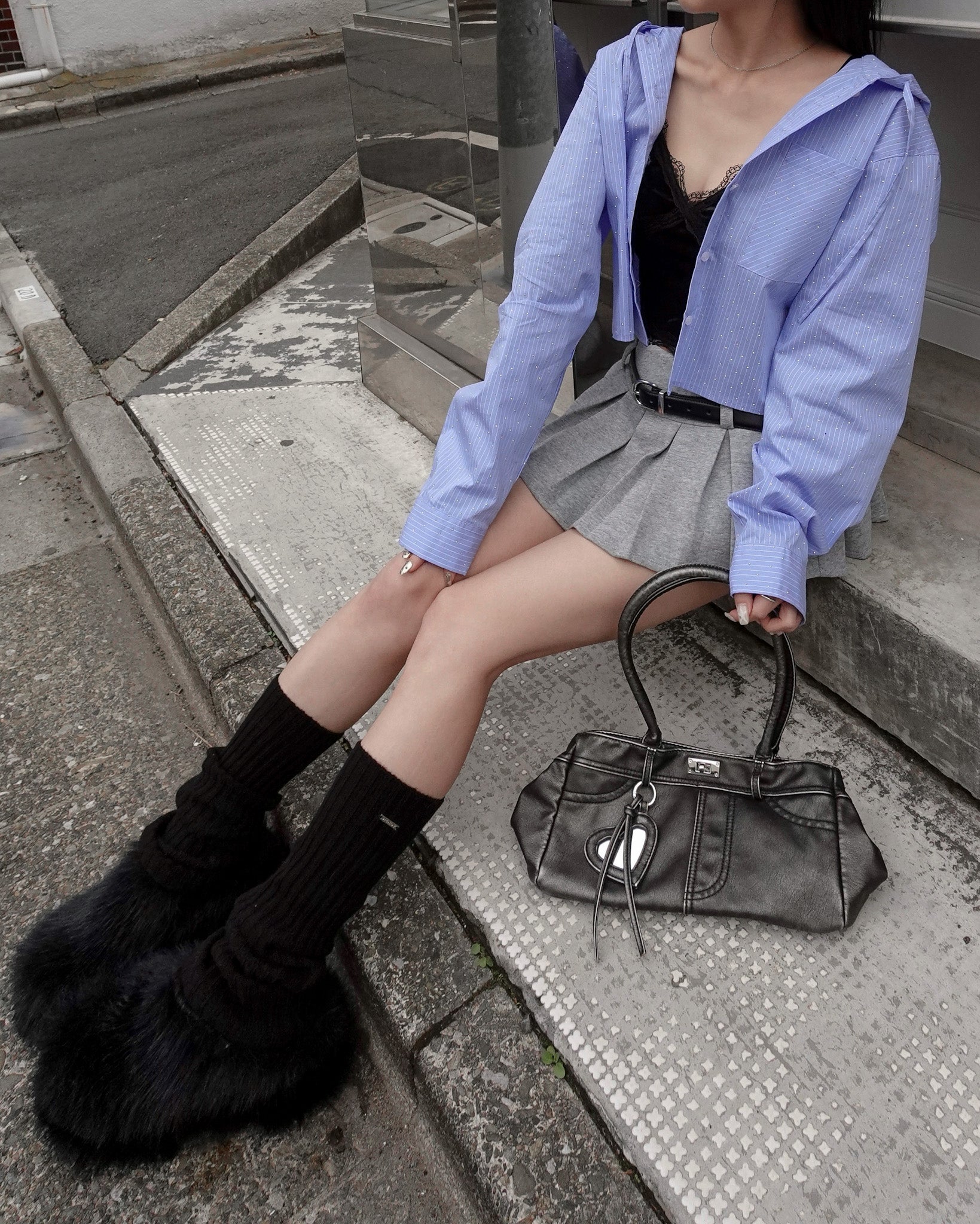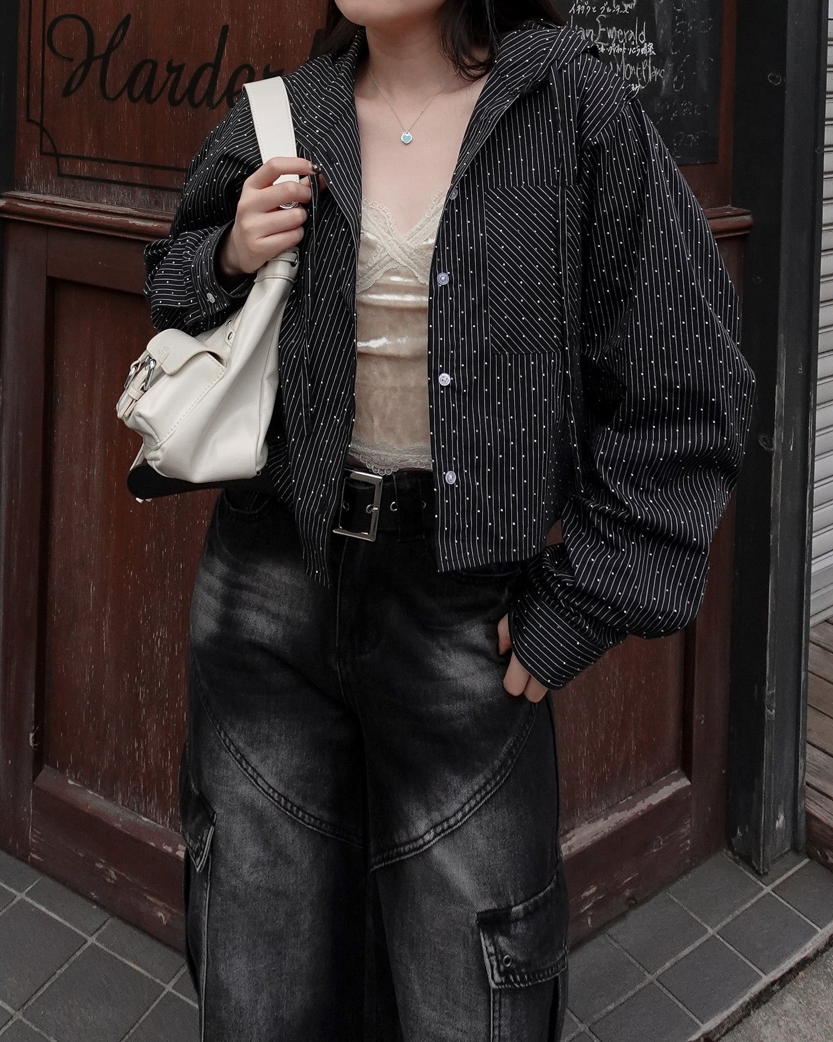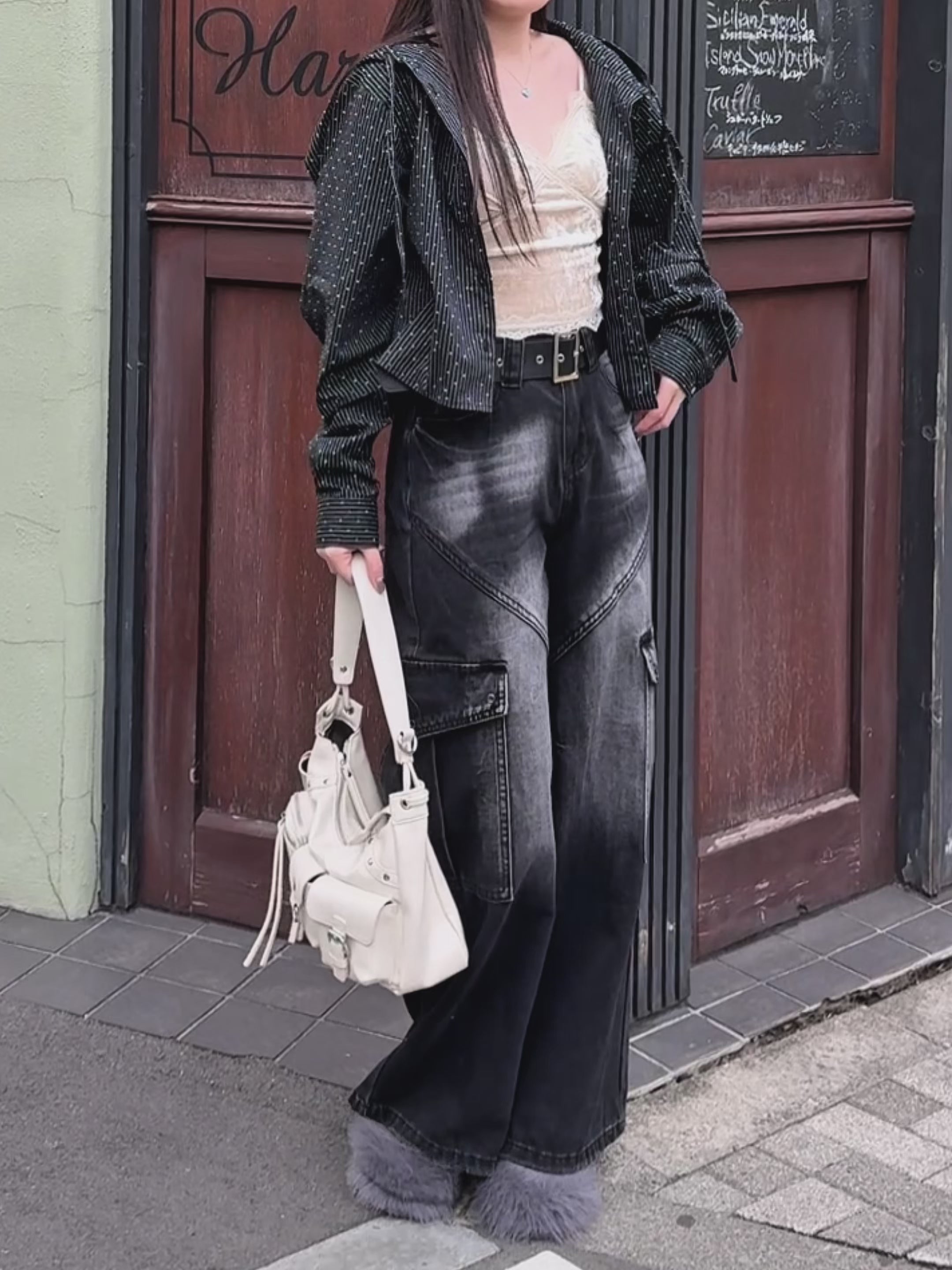 パーカーの下にきてチラッとキラキラのラインストーンを見せるのもおすすめです◎