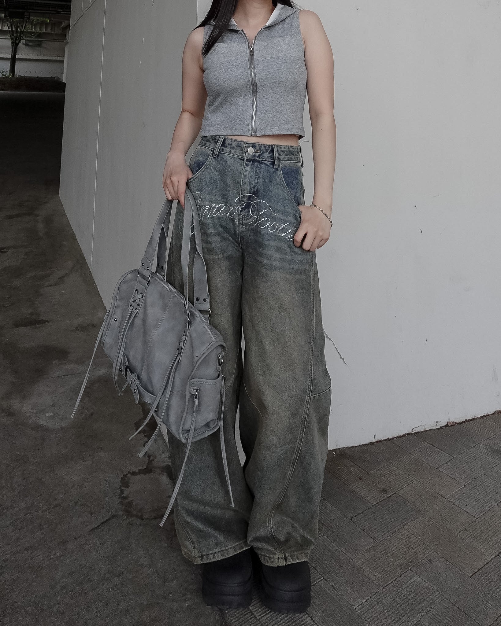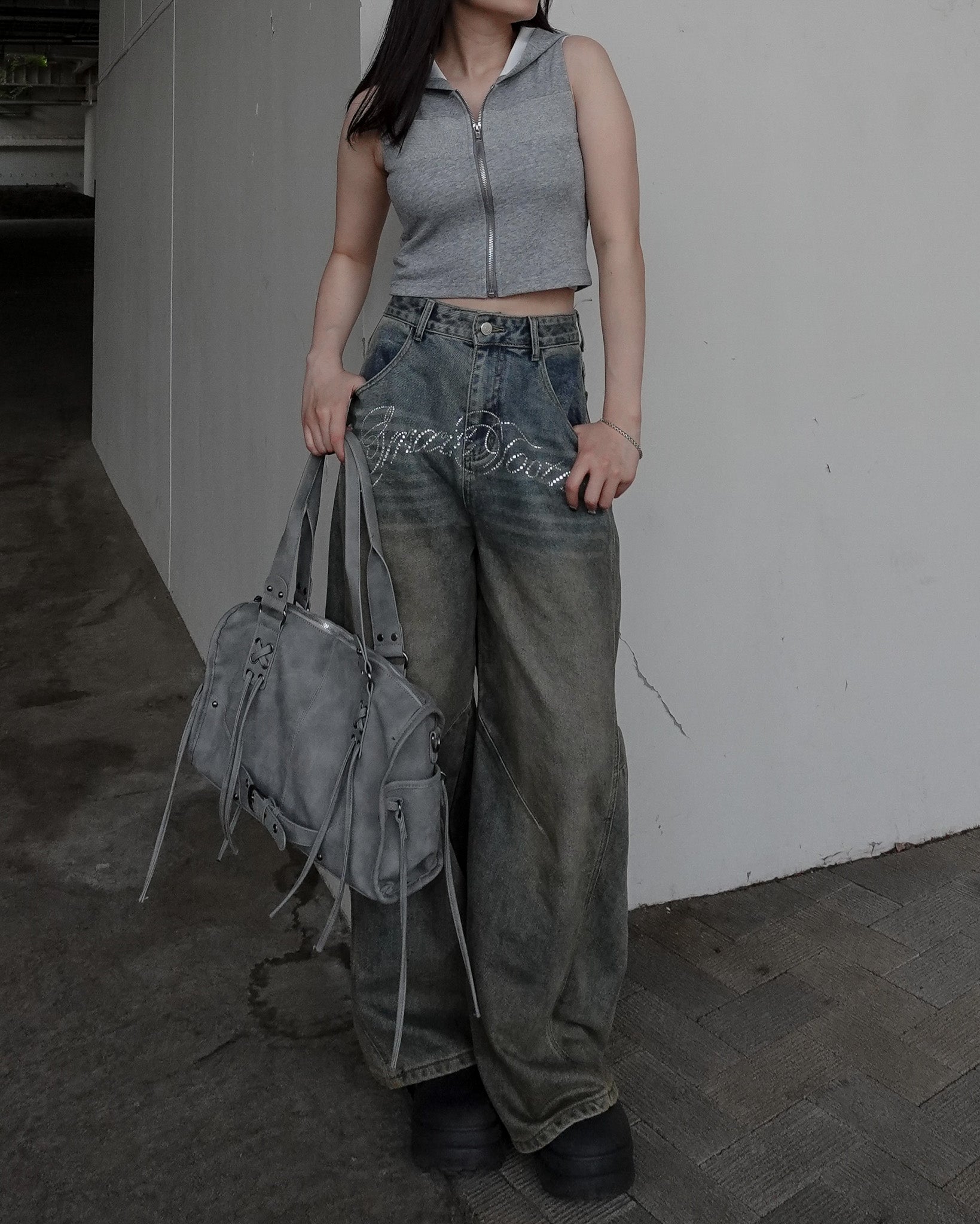 フロントジップがスタイリングのアクセントになり、