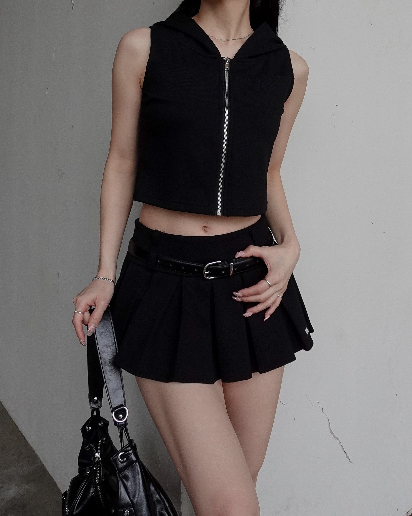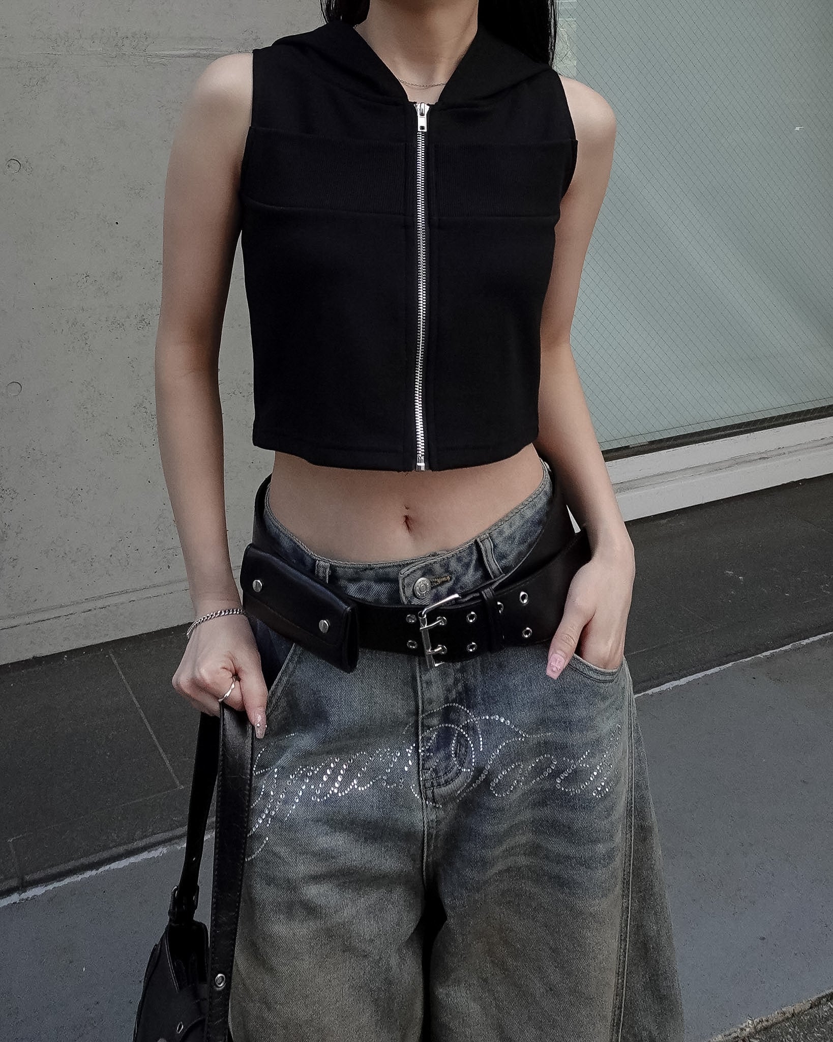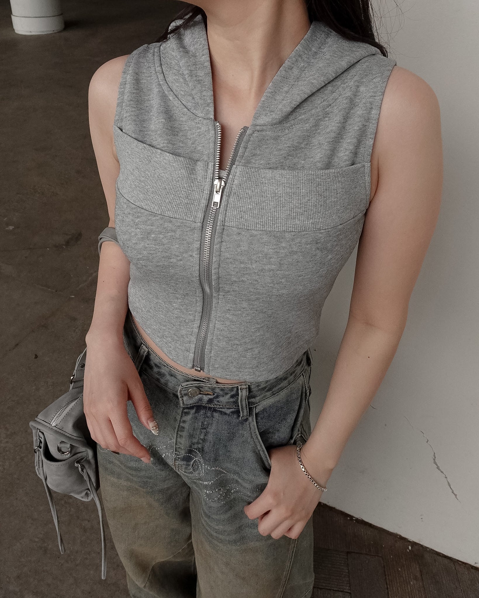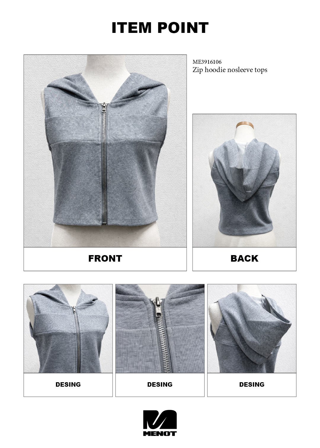 人気だったクロップドジップフーディトップスのノースリーブバージョンが登場。