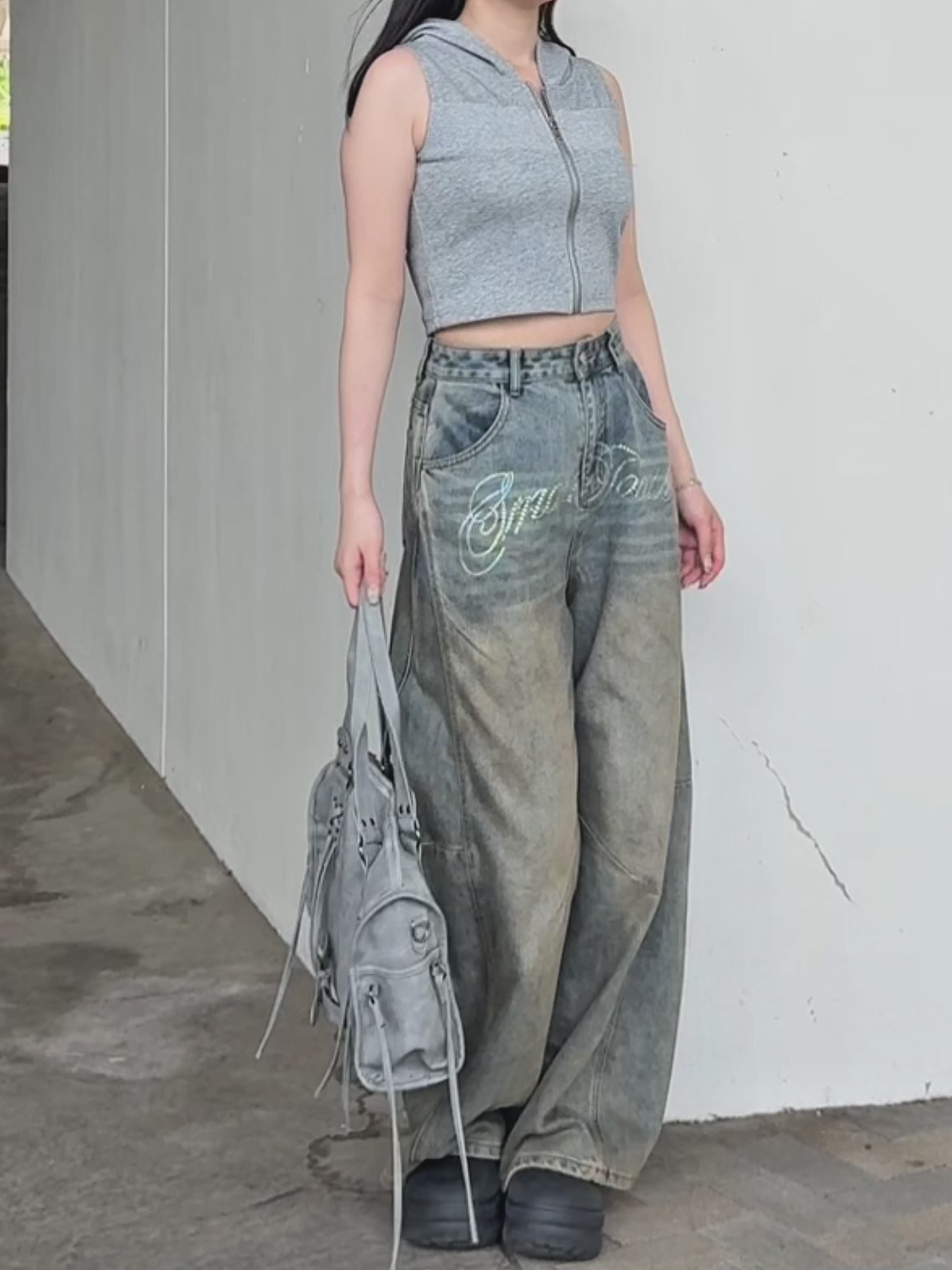 ウエスト部分がくびれて見えるクロップド丈に調整し