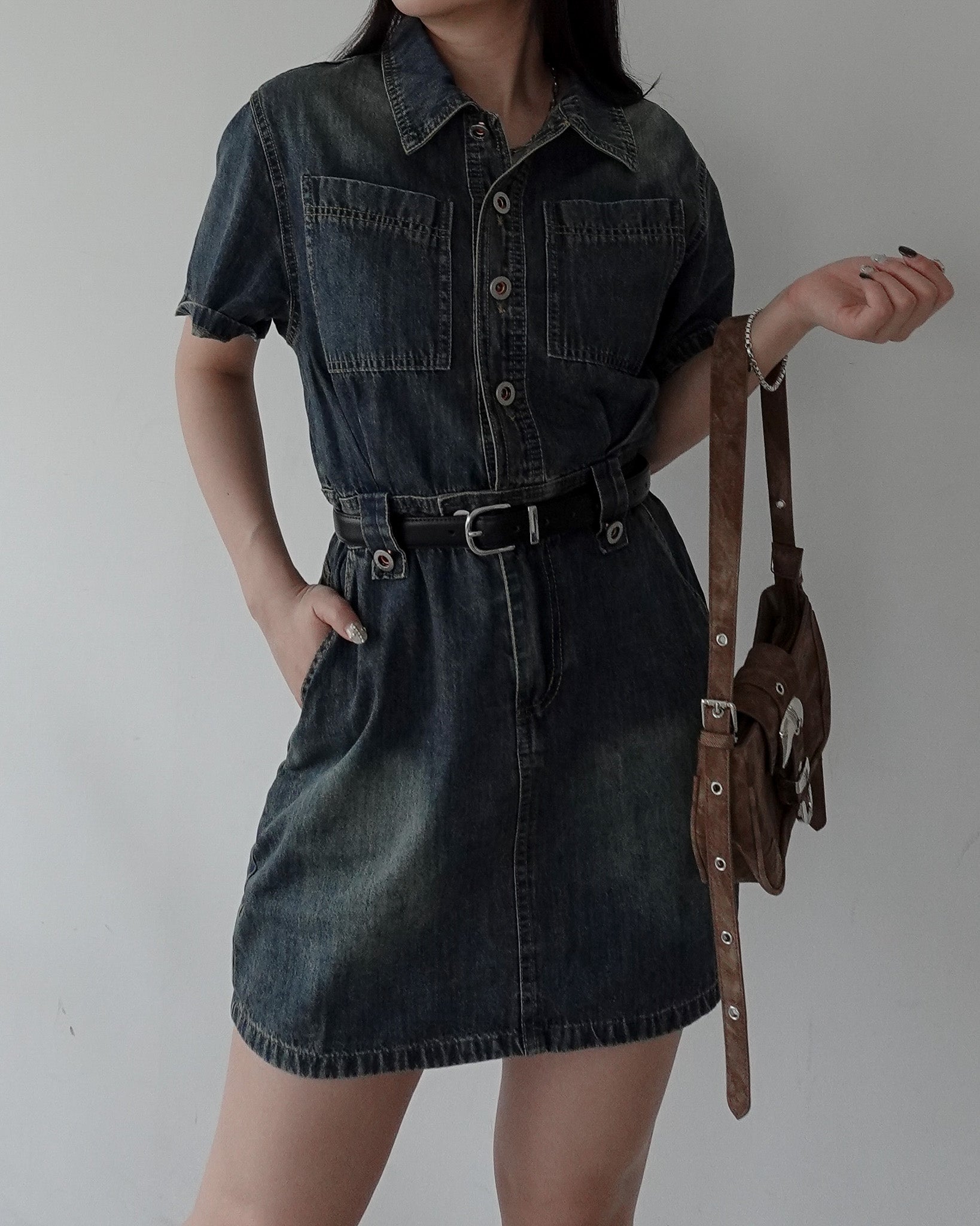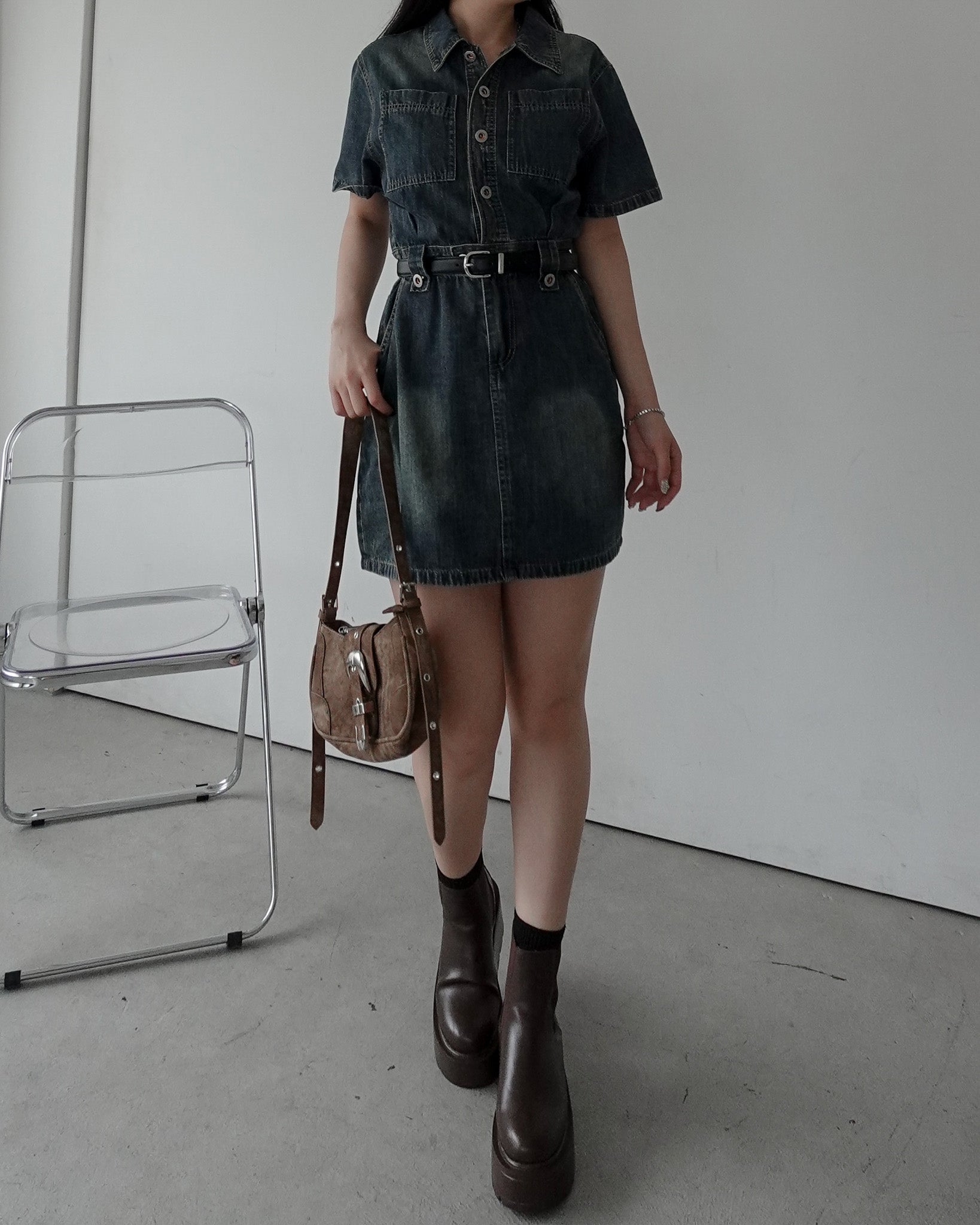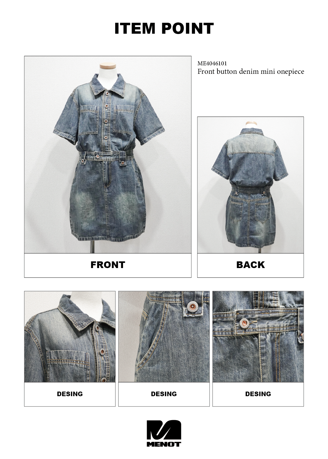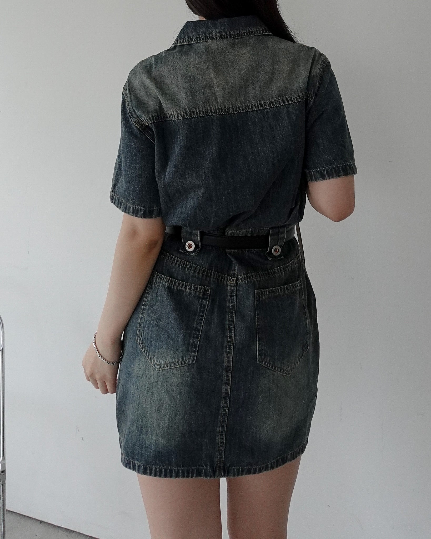 フロントボタンデニムミニワンピース