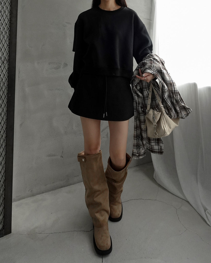 【プラス2,000円でトップスGET!】リボンレイヤードトップス×プリーツデザインショートパンツセット