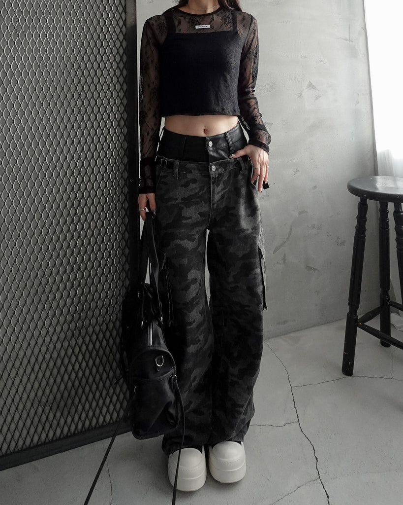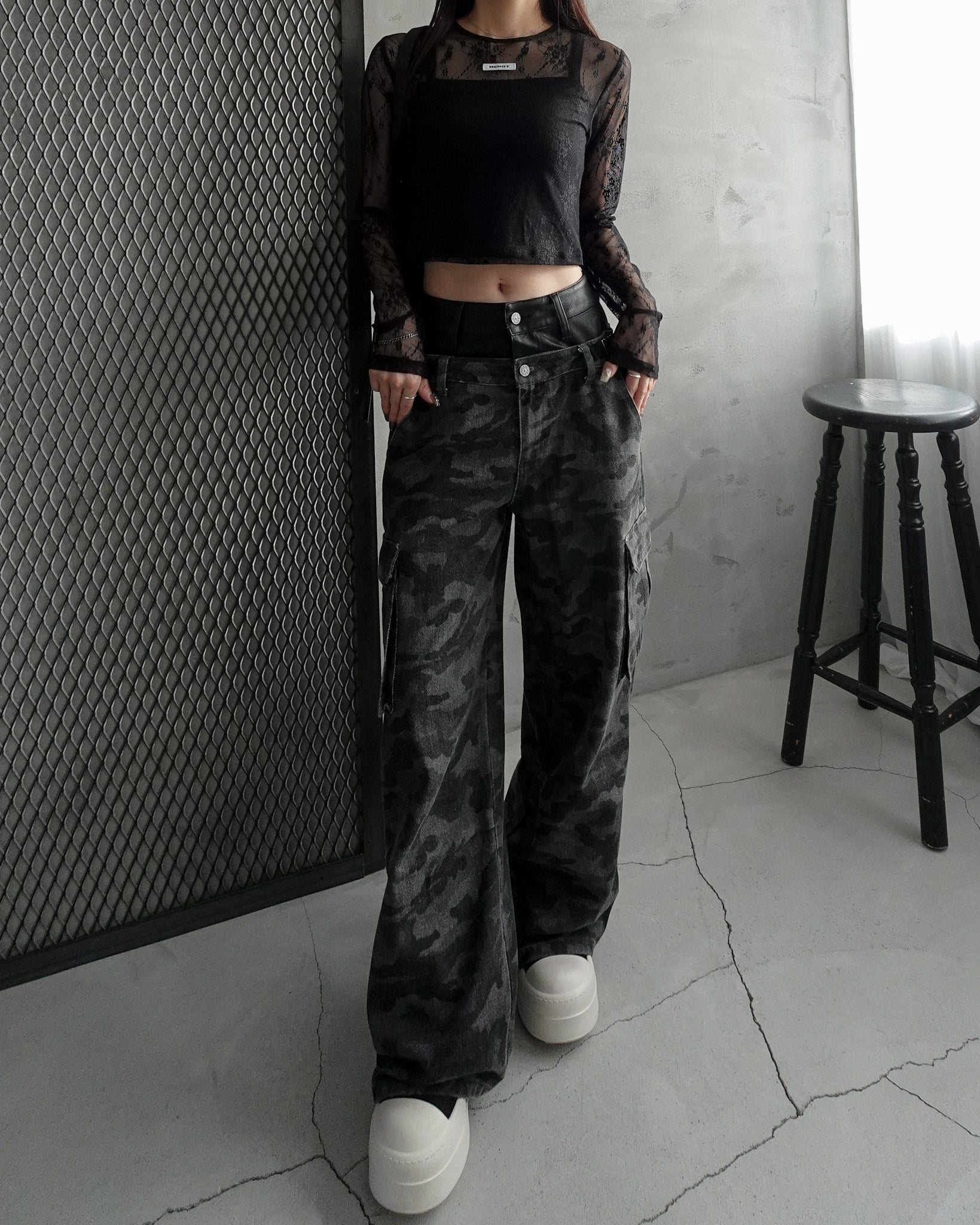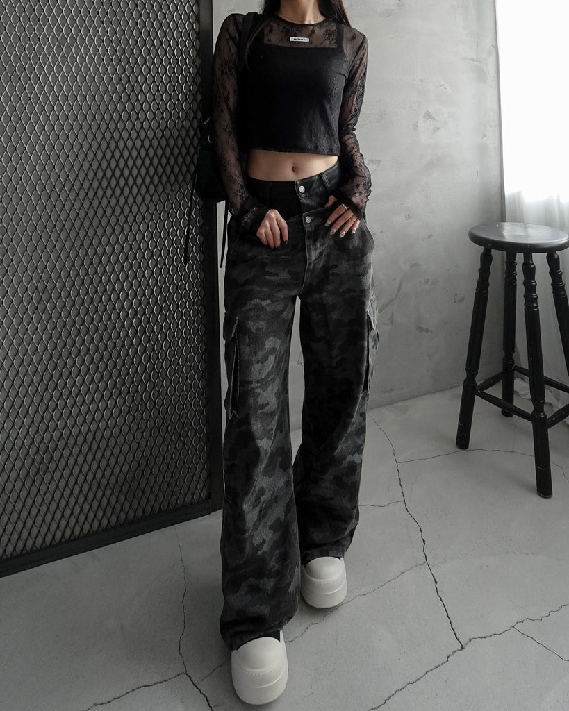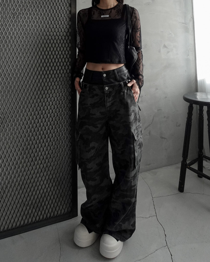 迷彩柄は明暗を抑えた生地で大人っぽく高見え出来るデザインがポイント。