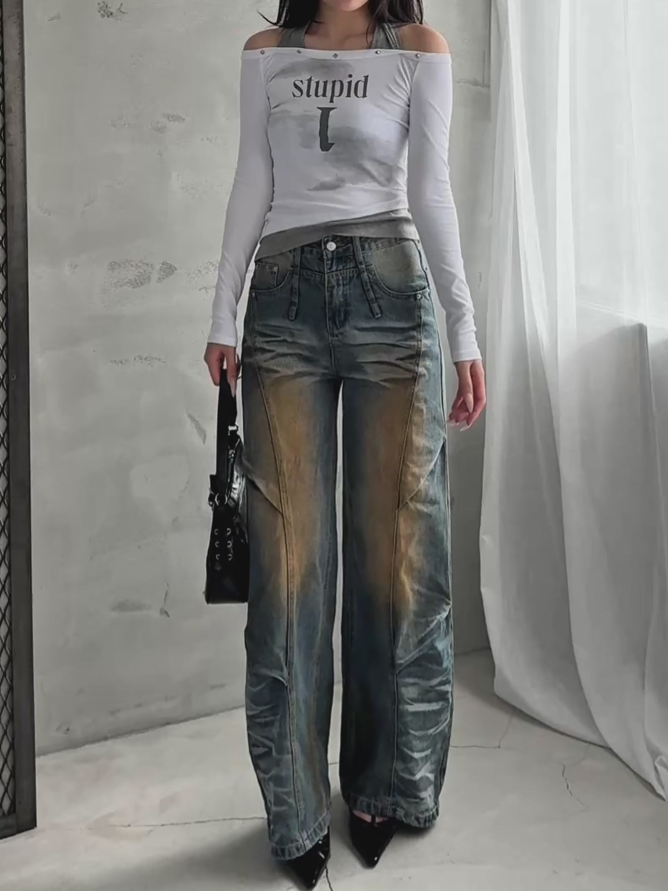 リアルなシワ加工が、デニム全体に奥行きと立体感を与え、