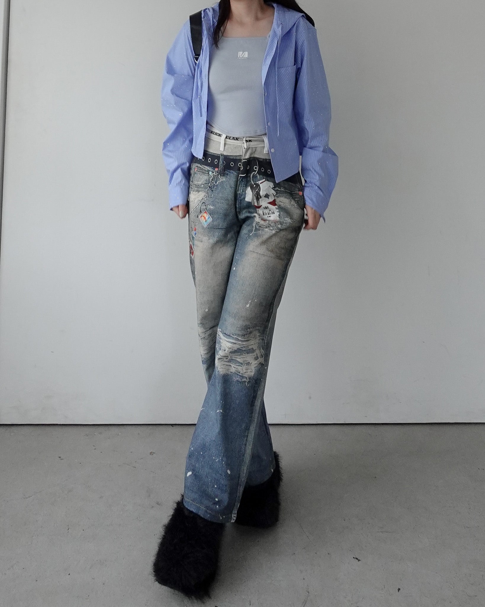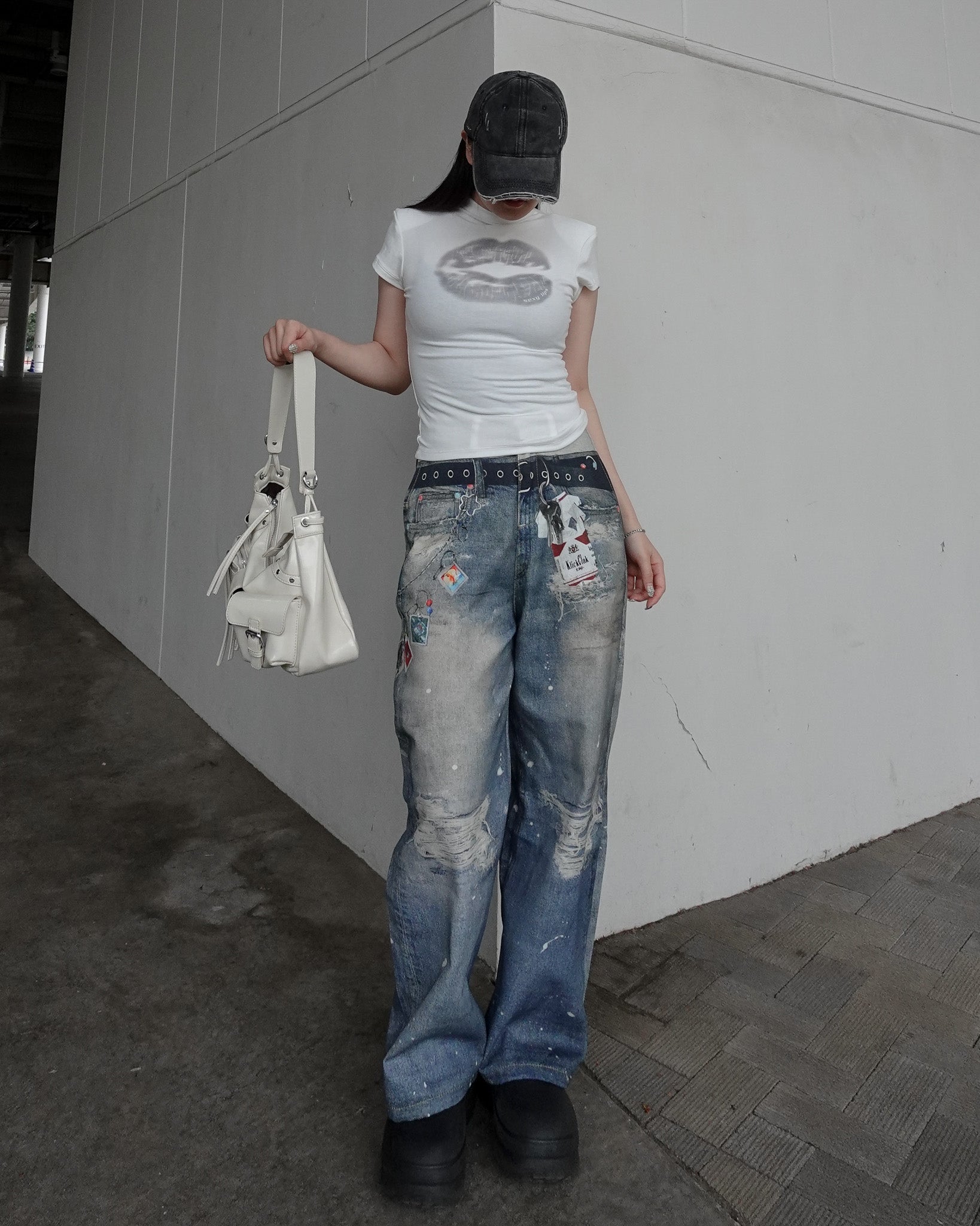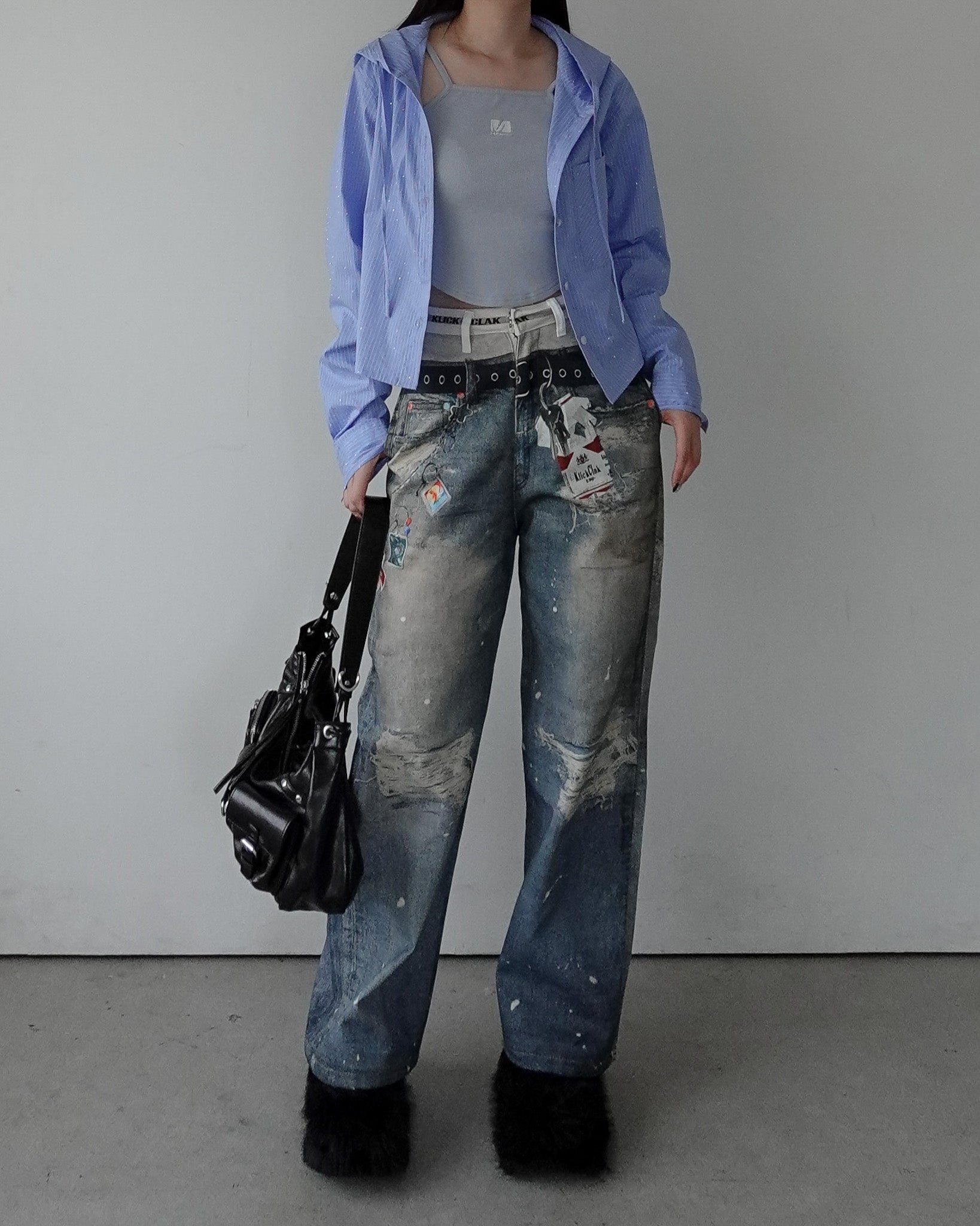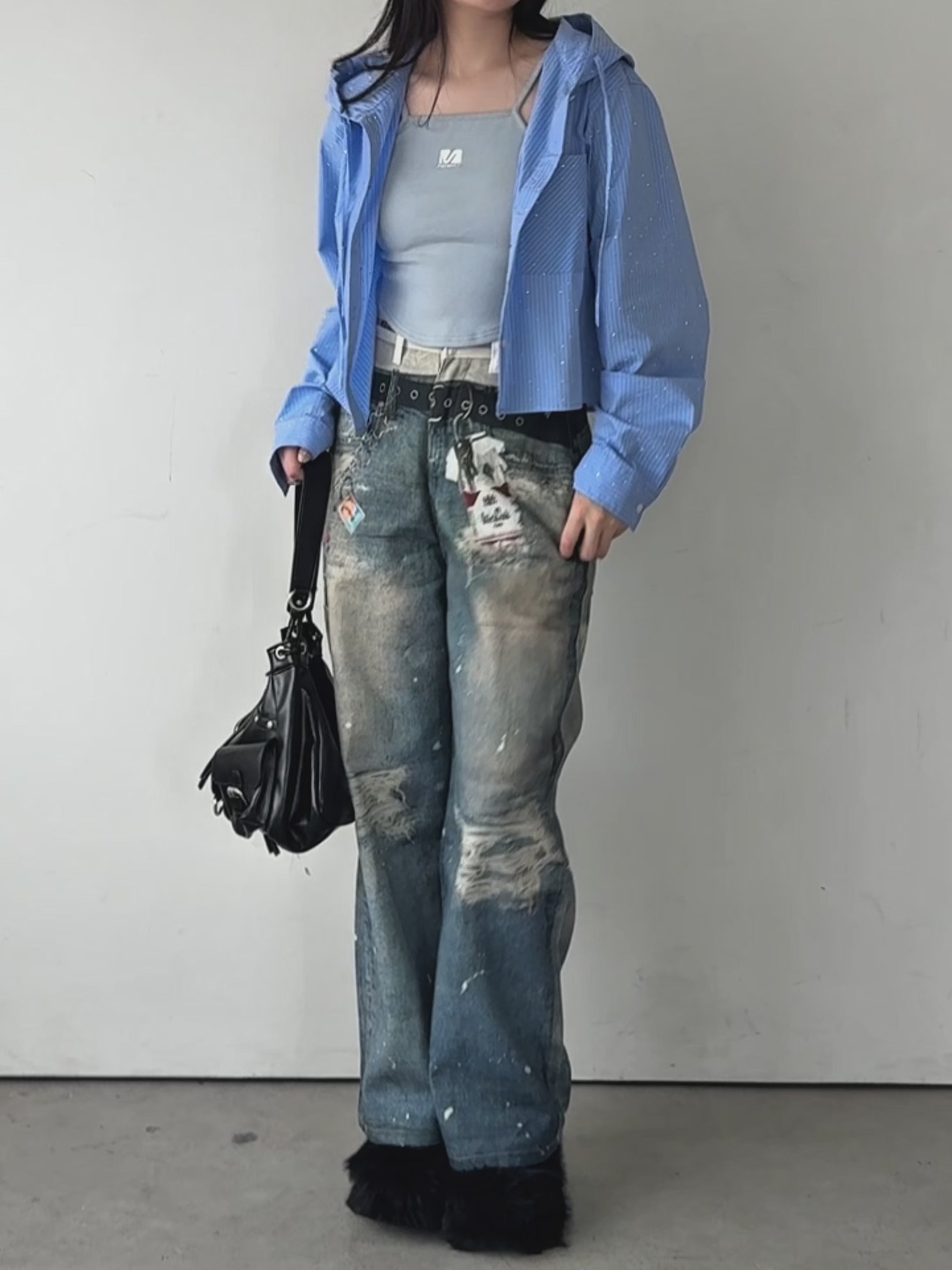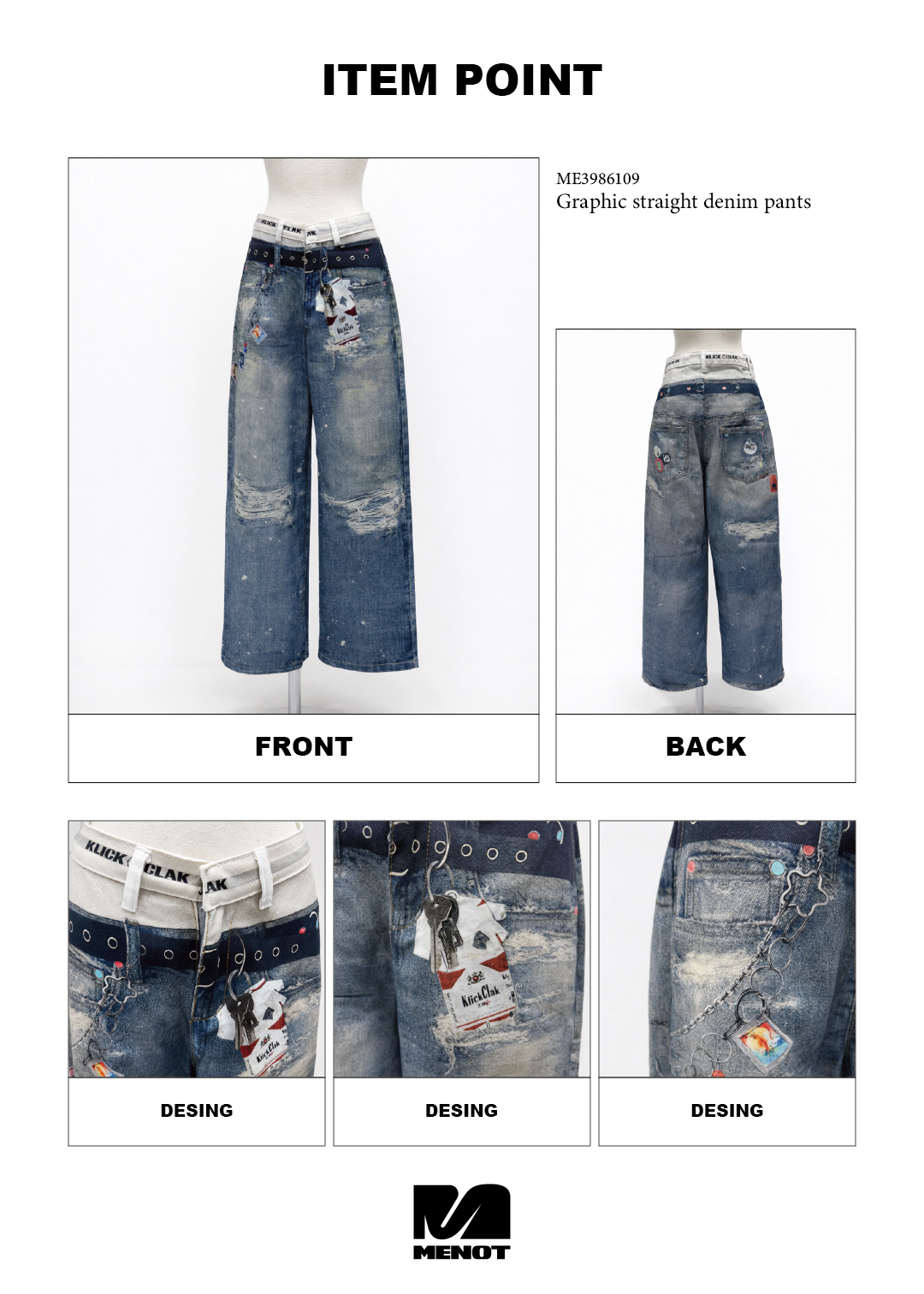 グラフィックストレートデニムパンツ
