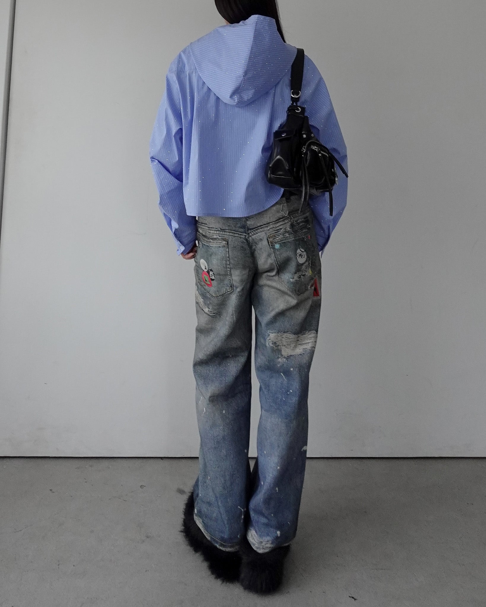 素材により、摩擦や汗、雨などで濡れた時に他の衣類や下着、バッグなどの小物類に色移りする場合がありますので十分ご注意ください。