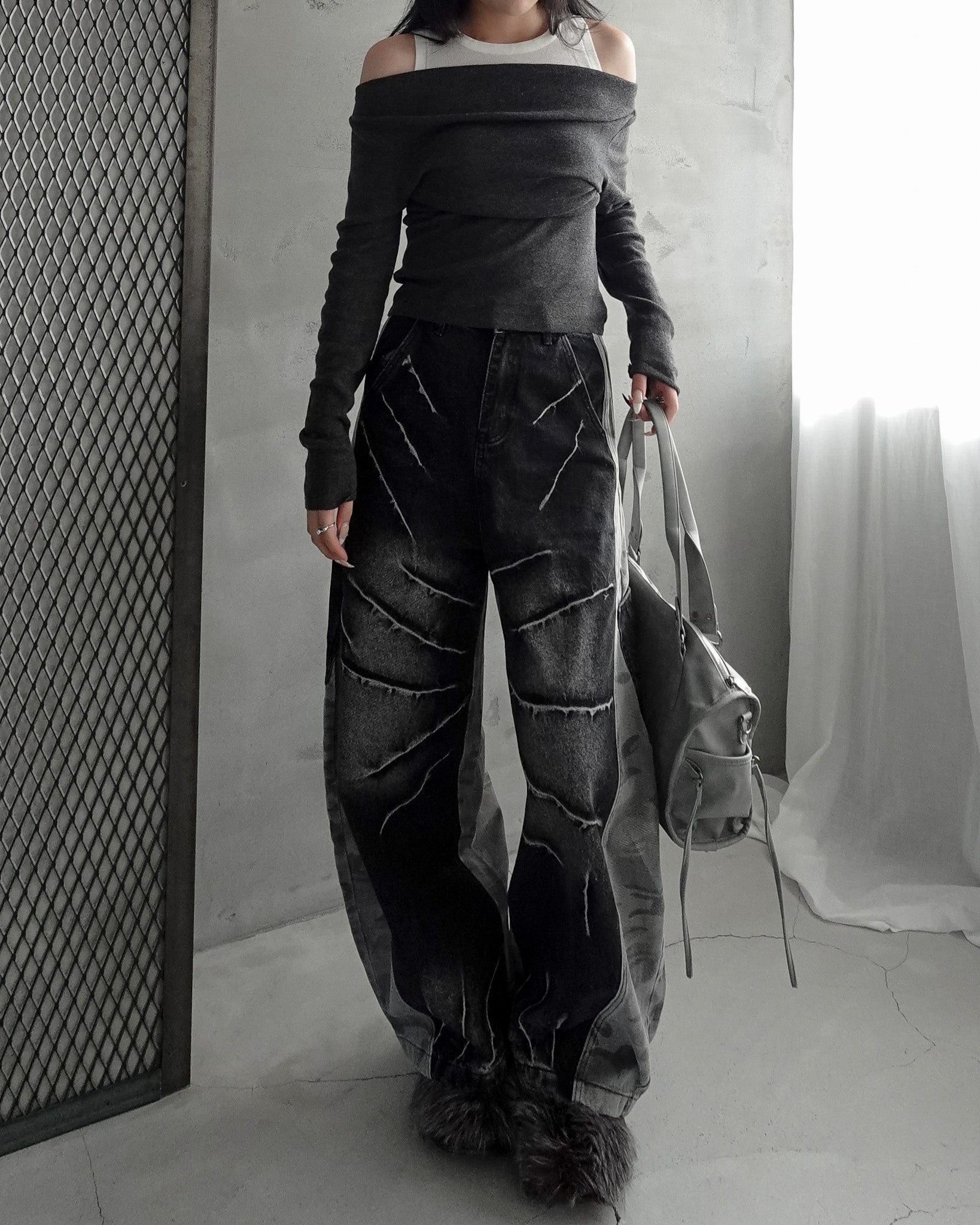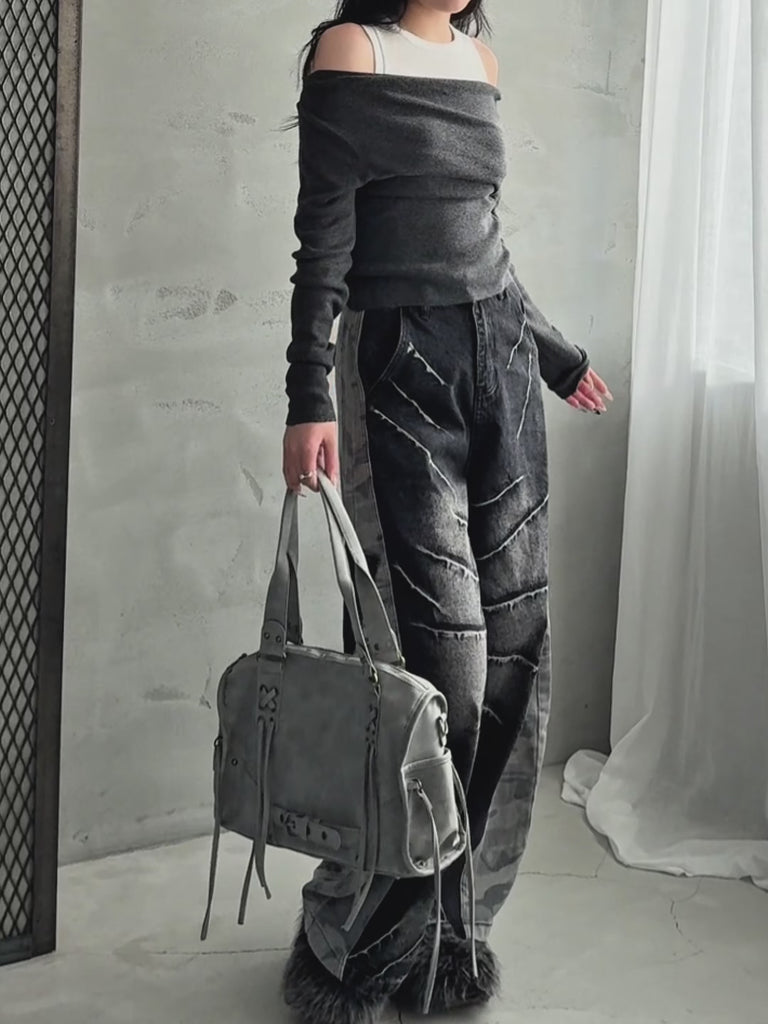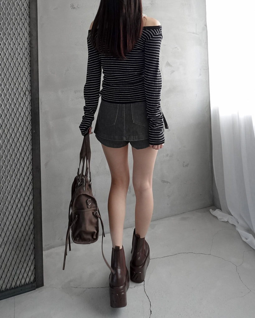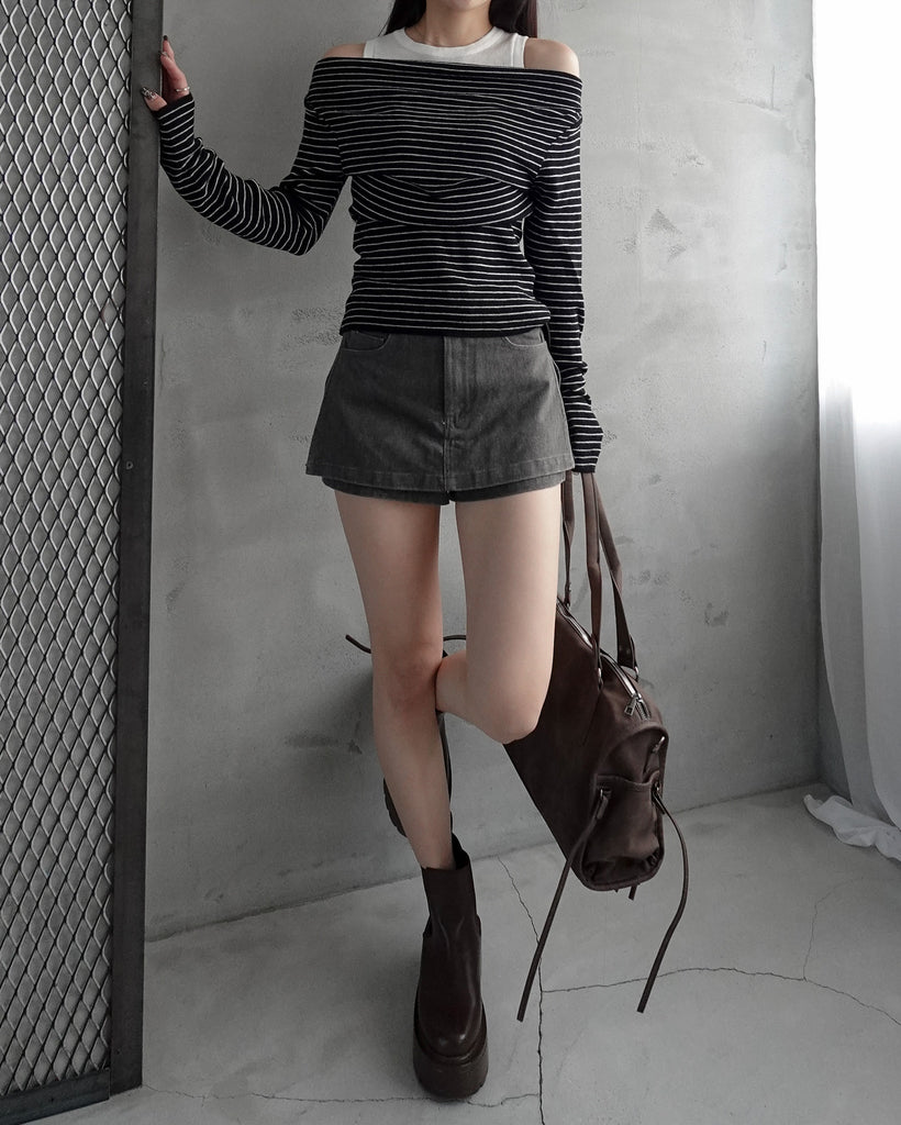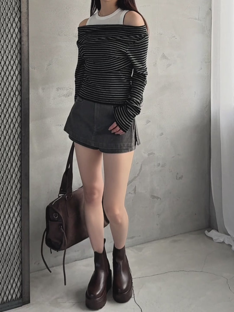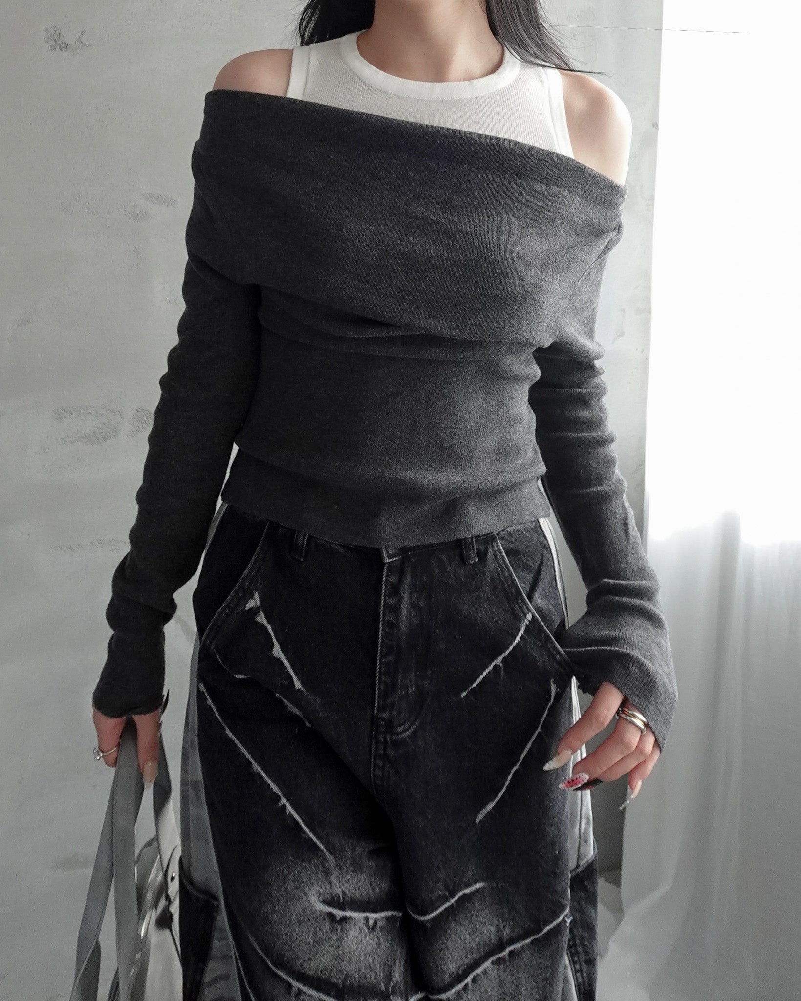 一枚でレイヤードがキマる、華奢見えオフショルトップス。