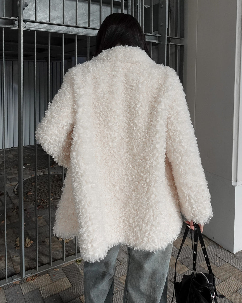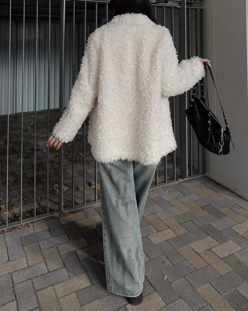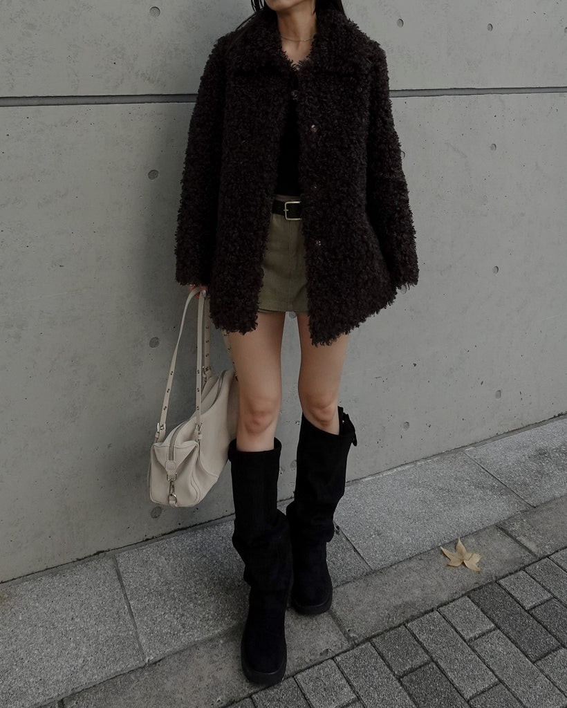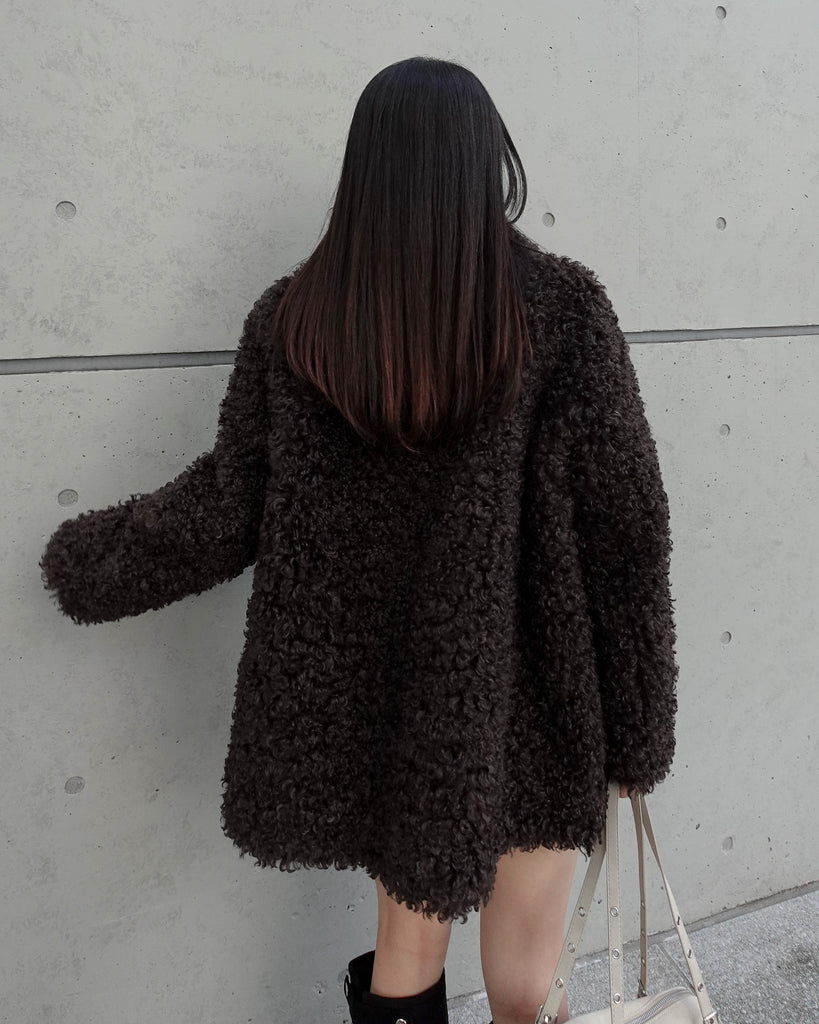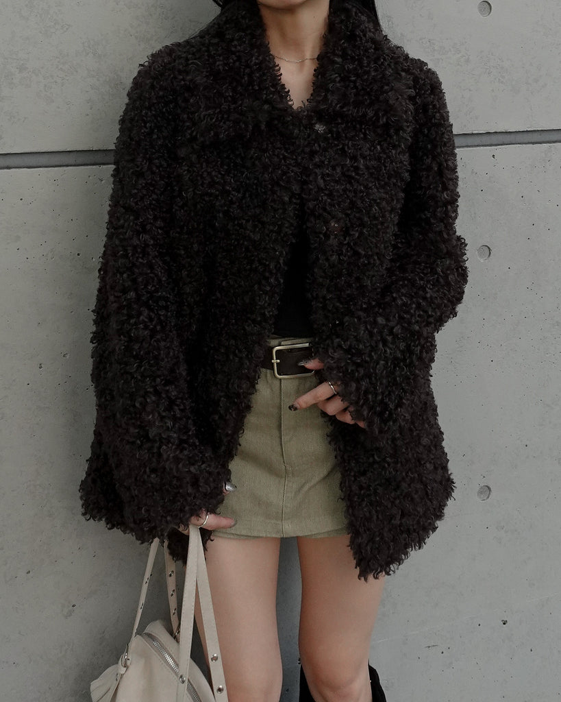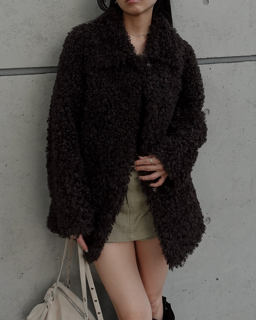 ボリュームたっぷりでもこもことしたプードルのような立体感が可愛いブルゾン。