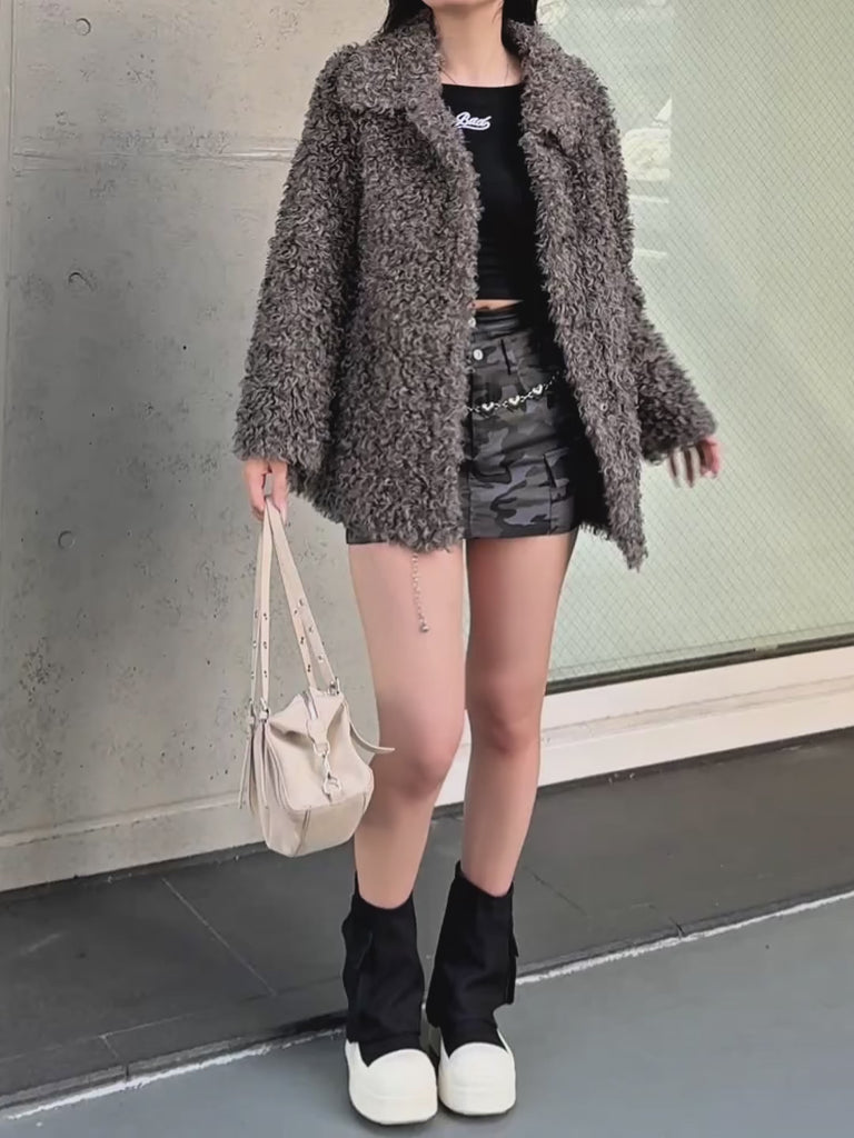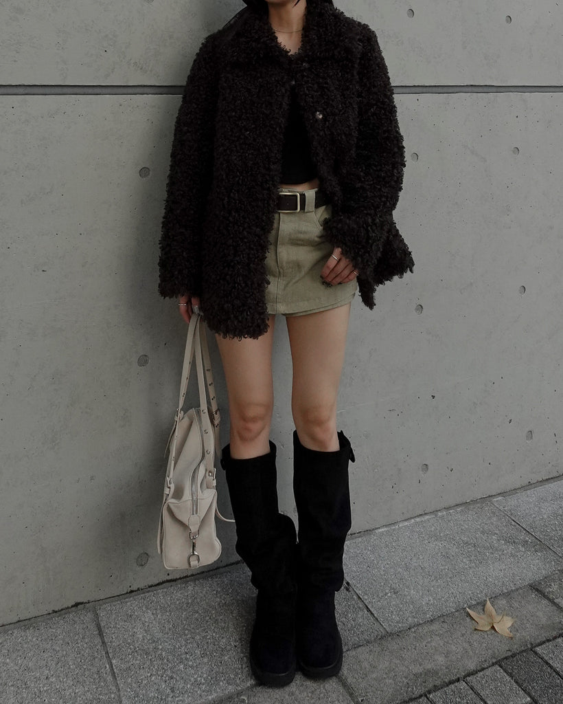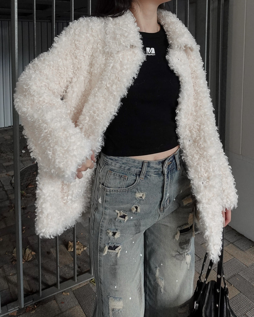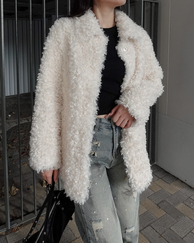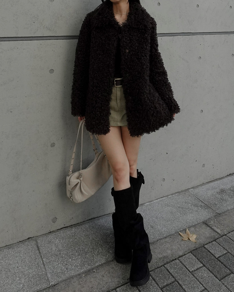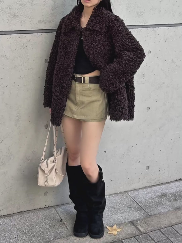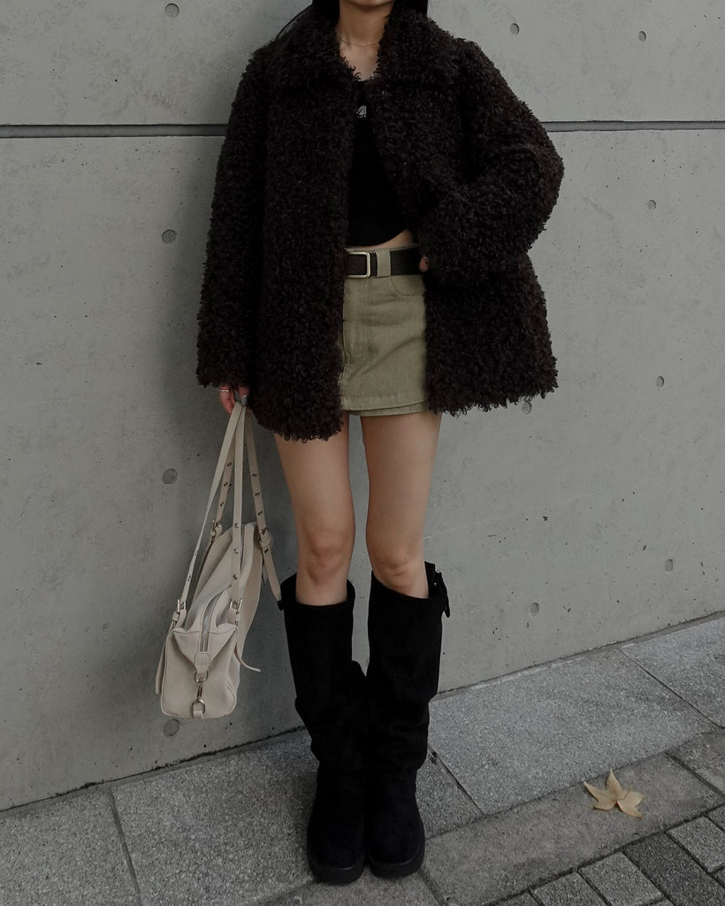 ボリュームたっぷりでもこもことしたプードルのような立体感が可愛いブルゾン。