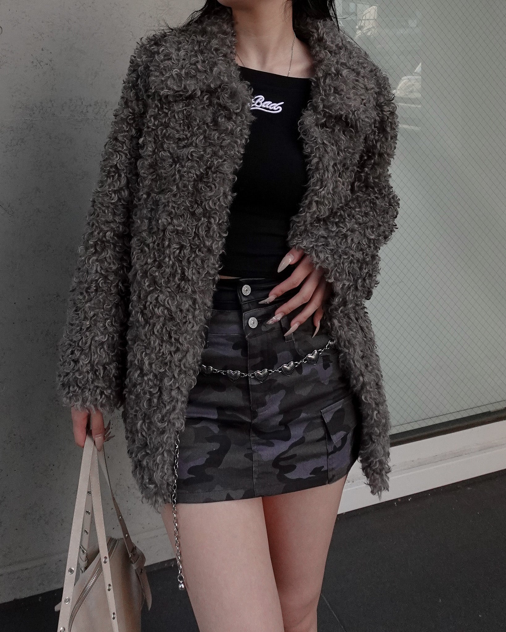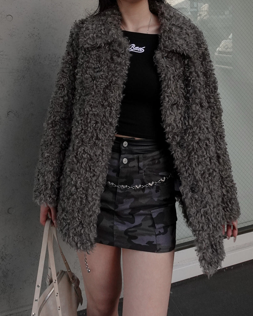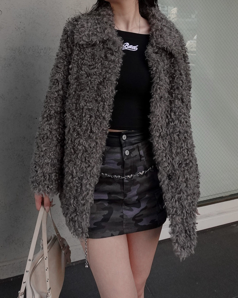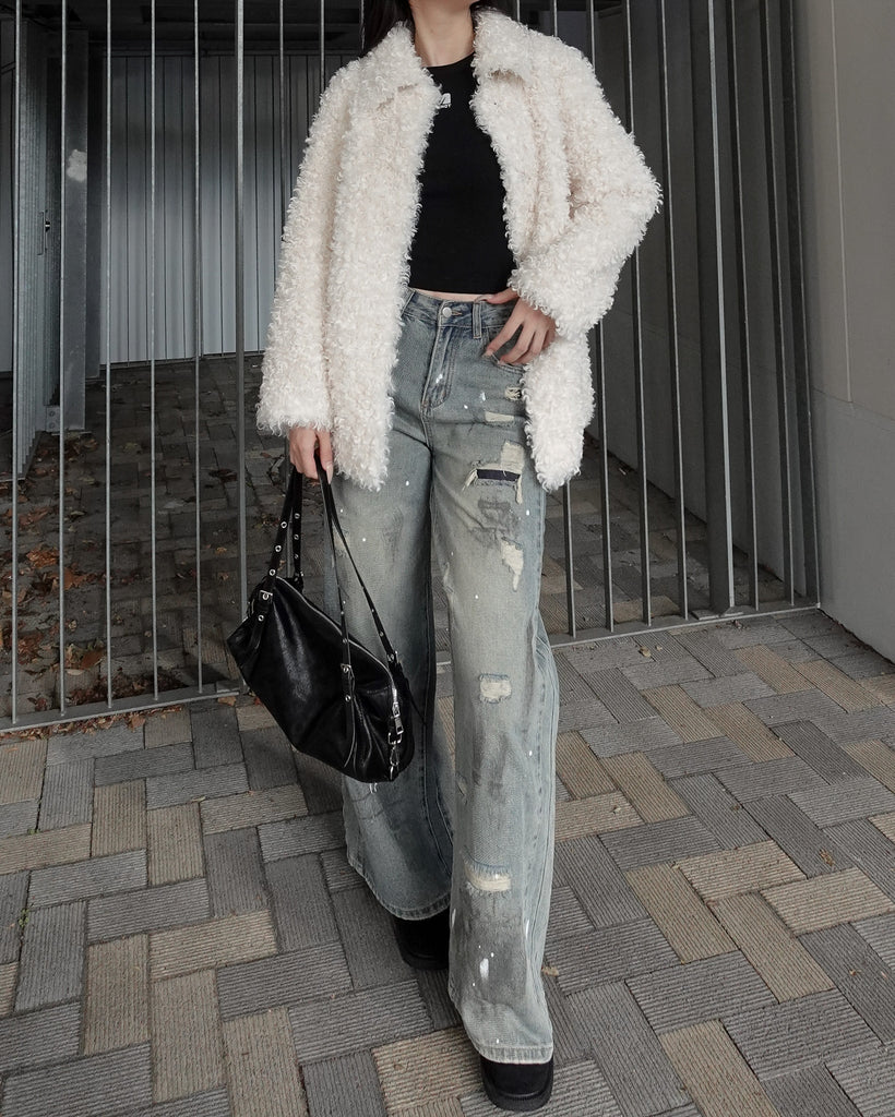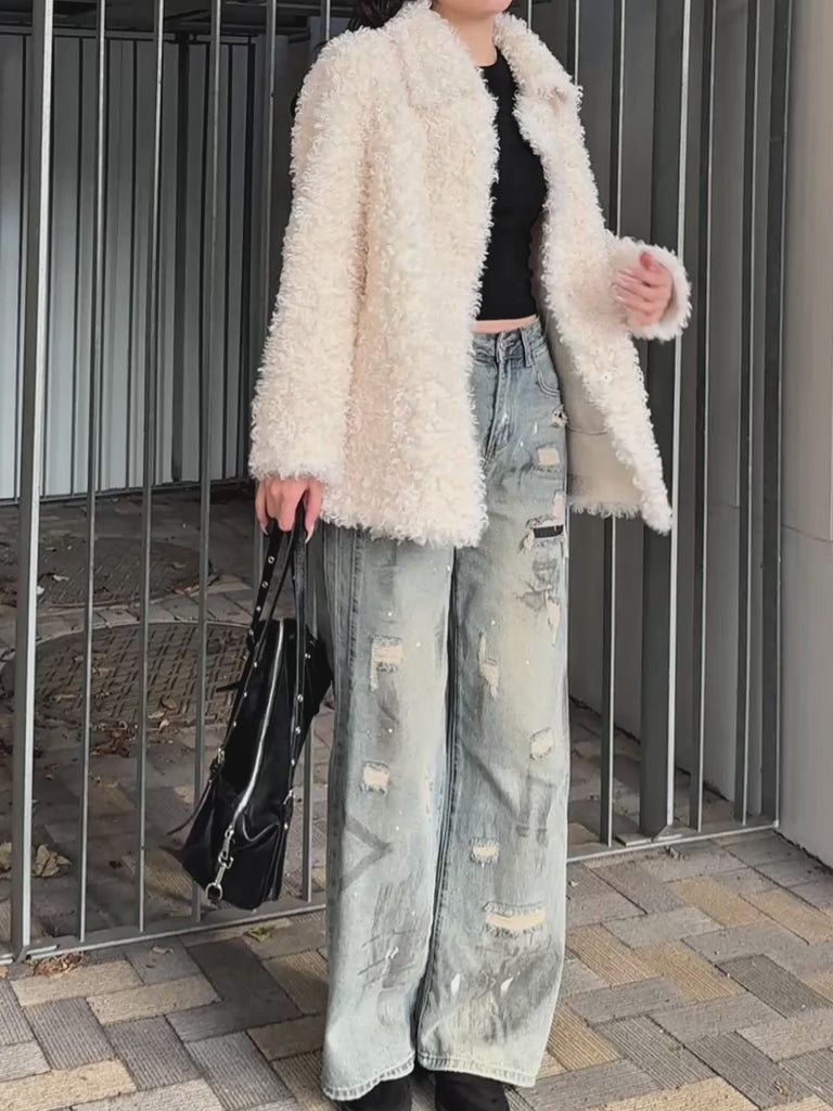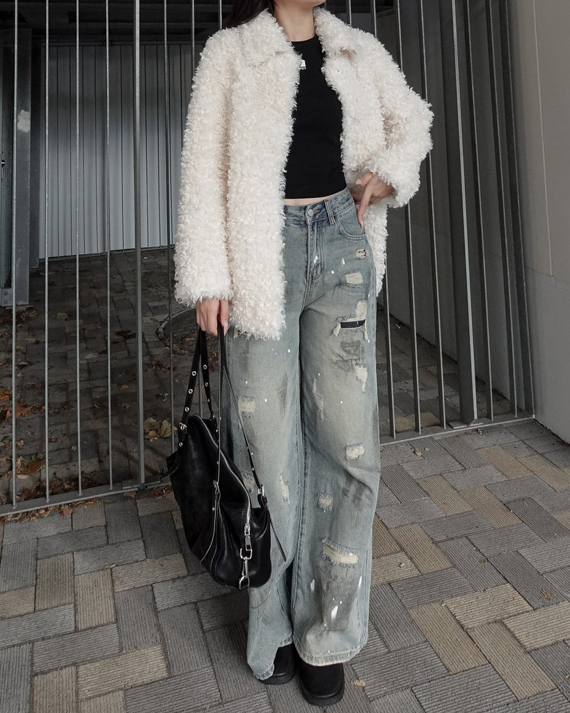 ボリュームたっぷりでもこもことしたプードルのような立体感が可愛いブルゾン。
