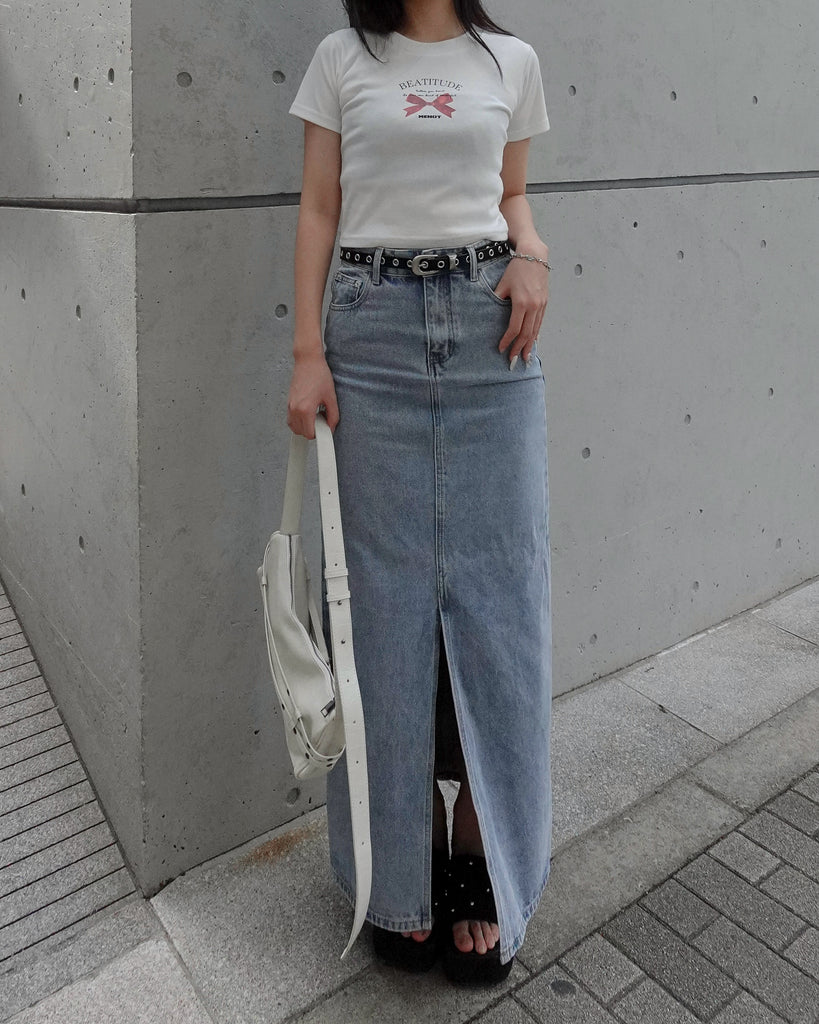 スリットロングデニムスカート
