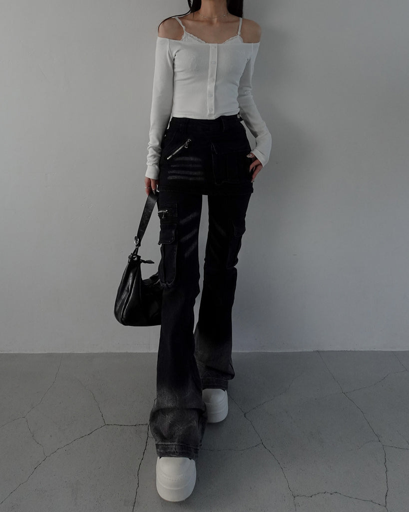 レイヤードフィットフレアデニムパンツ