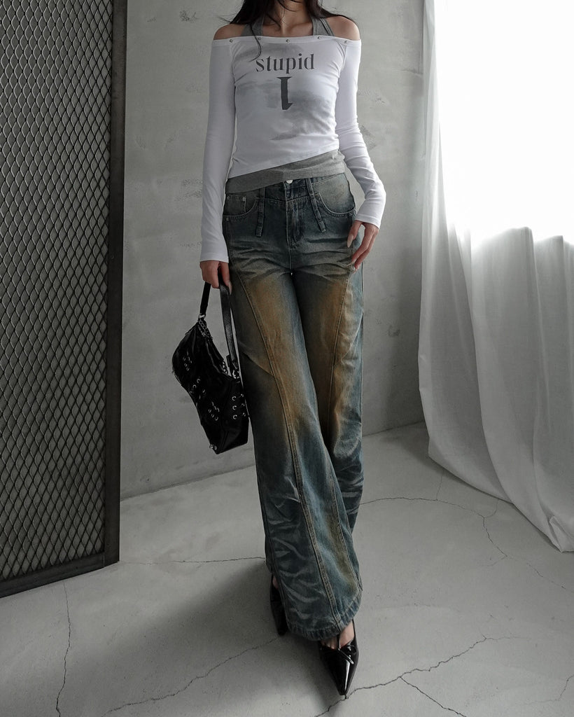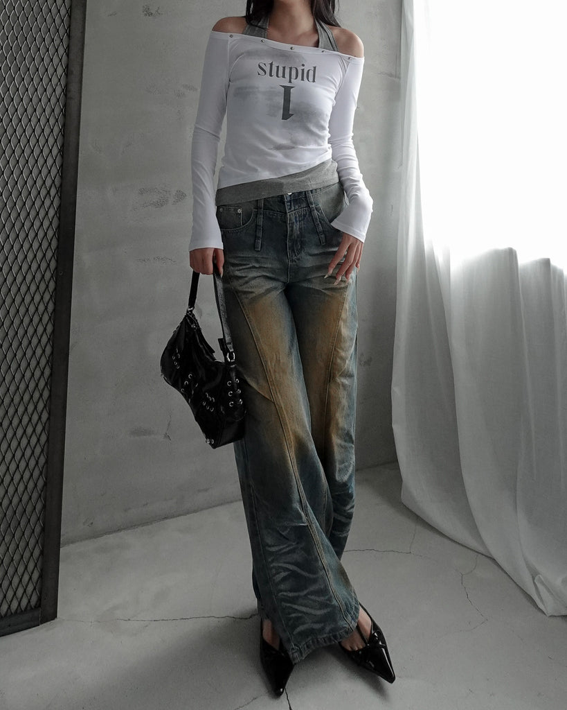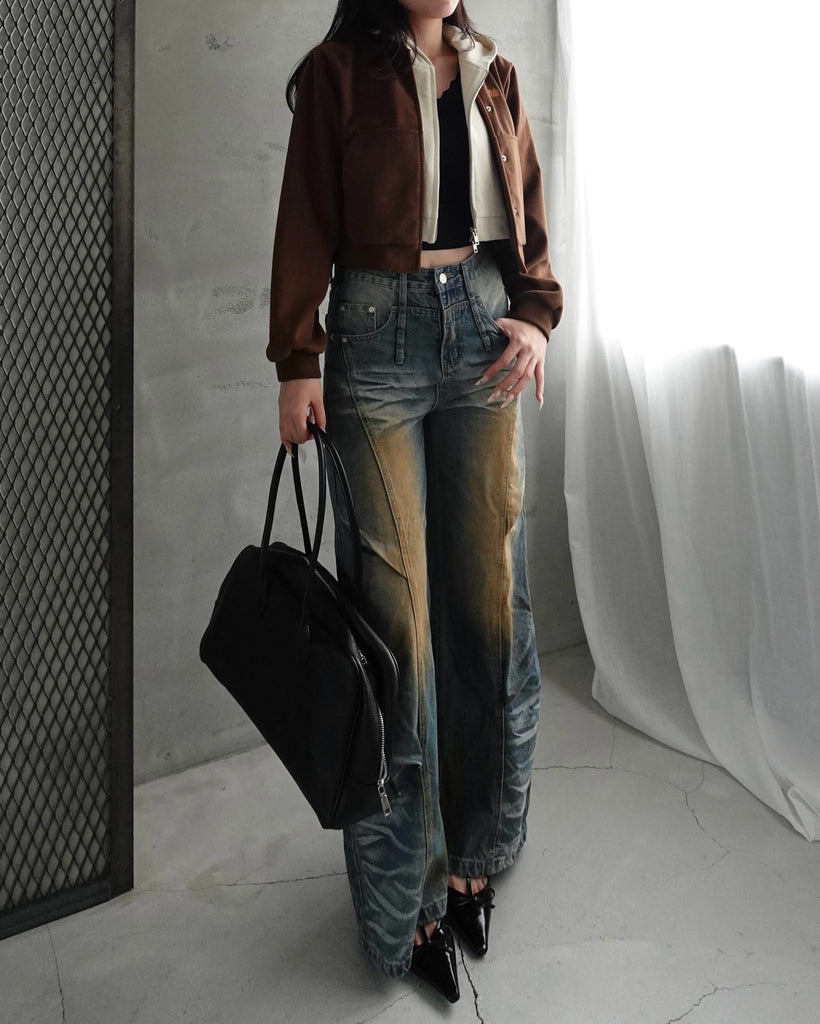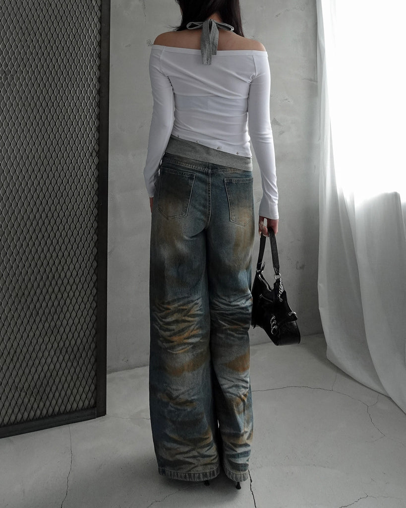リアルなシワ加工が、デニム全体に奥行きと立体感を与え、