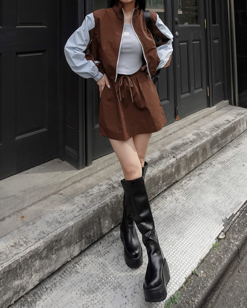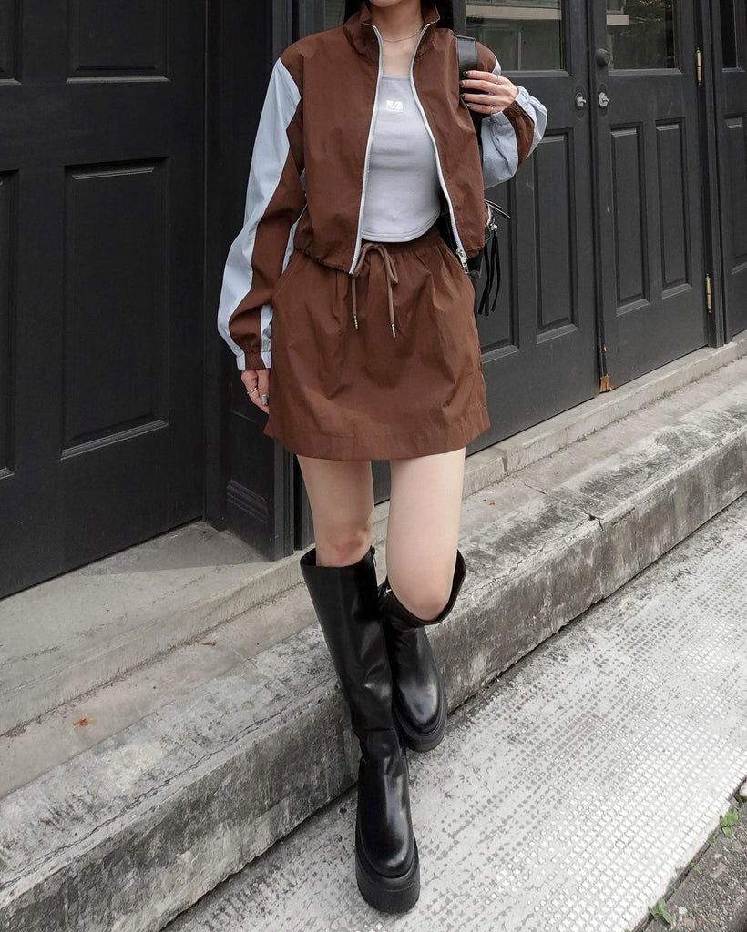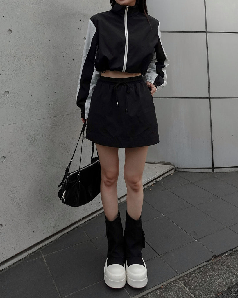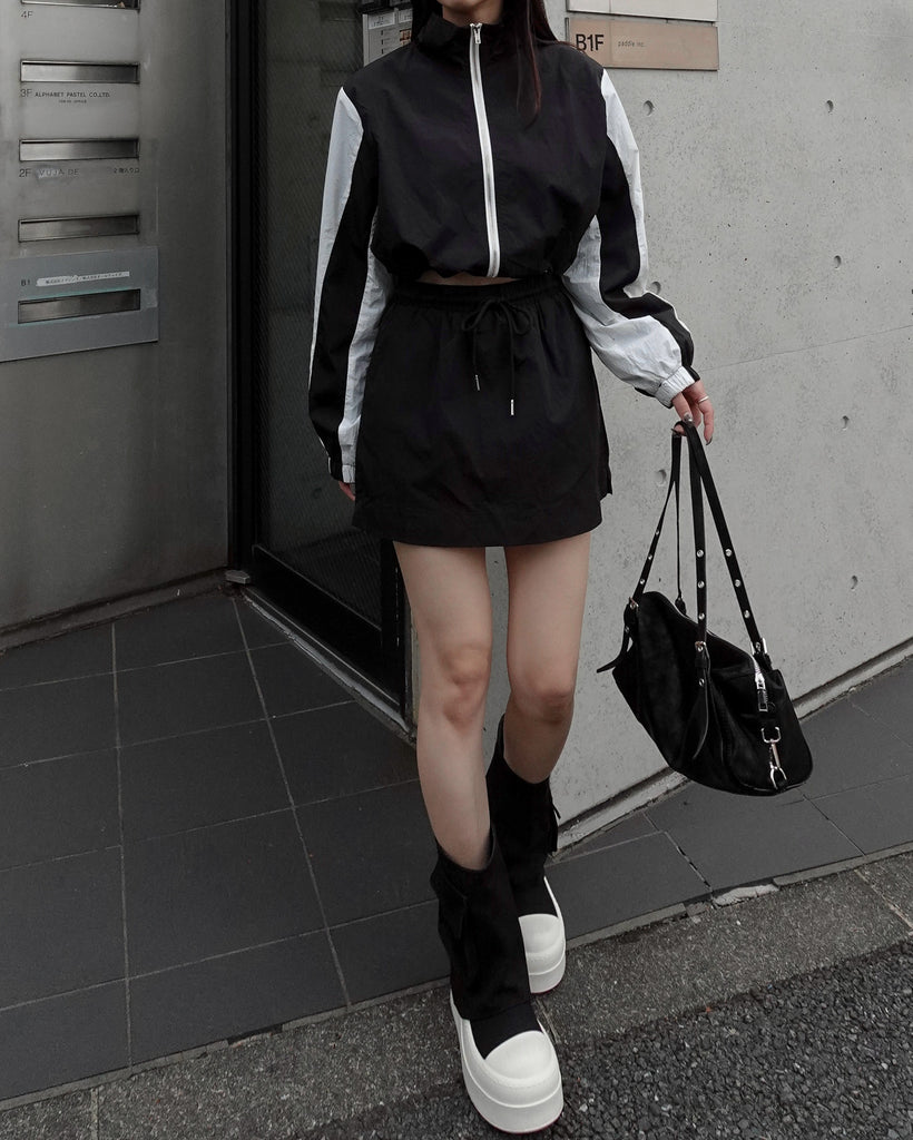 ・ブルゾンはダブルジップと絞れるウエストデザインでで着回し自在