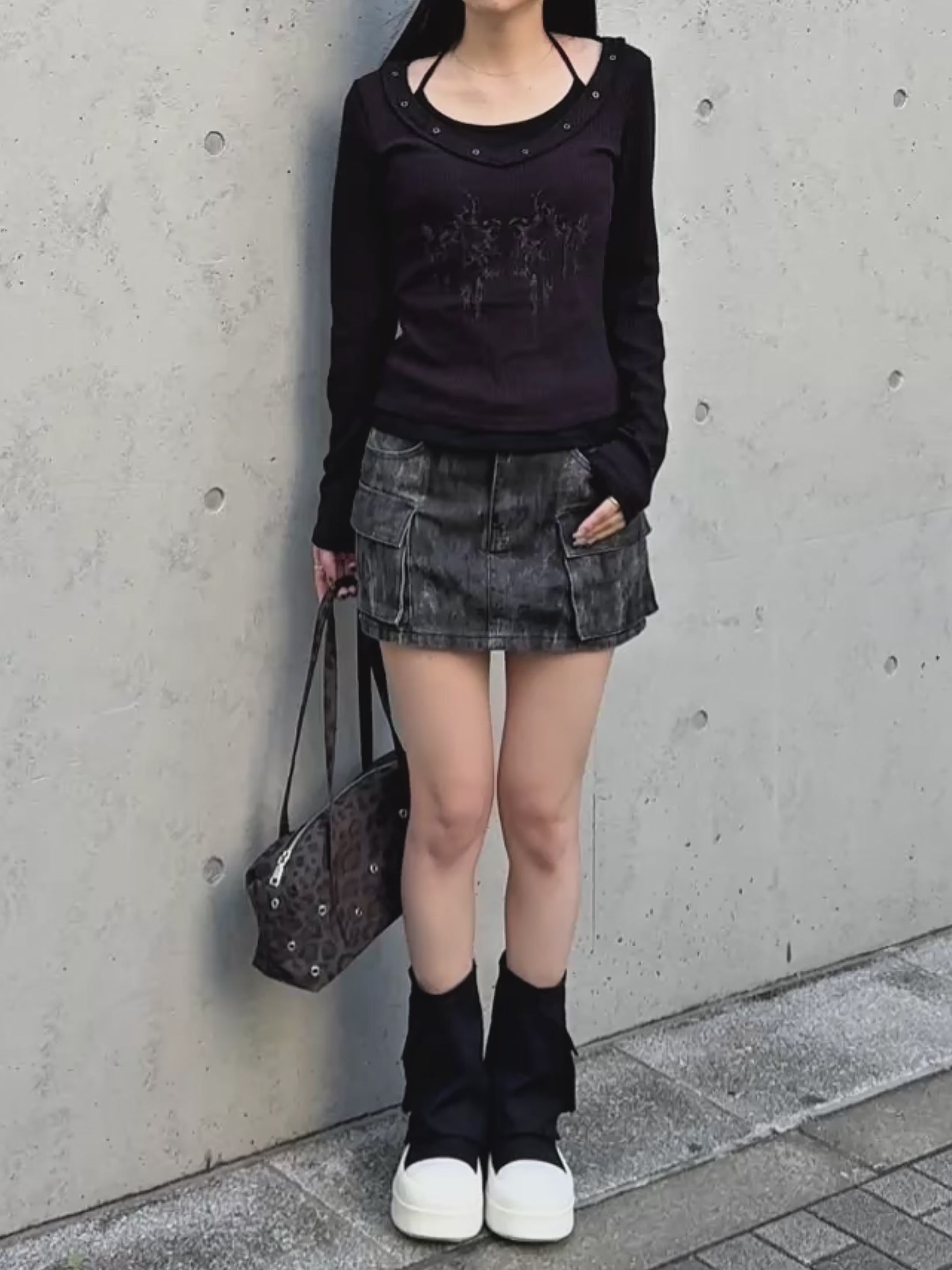 スカートはミニ丈ですがインナーパンツ付きで安心してご着用いただけます。