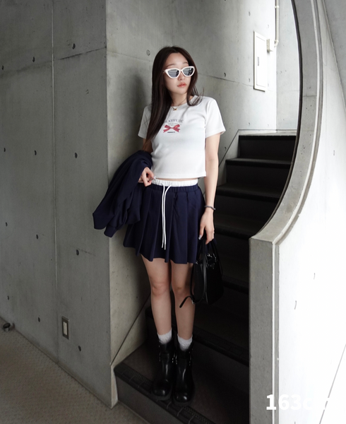 カジュアルプリーツミニスカート。